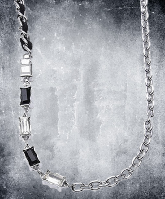 square black & clear stone necklace EN2739