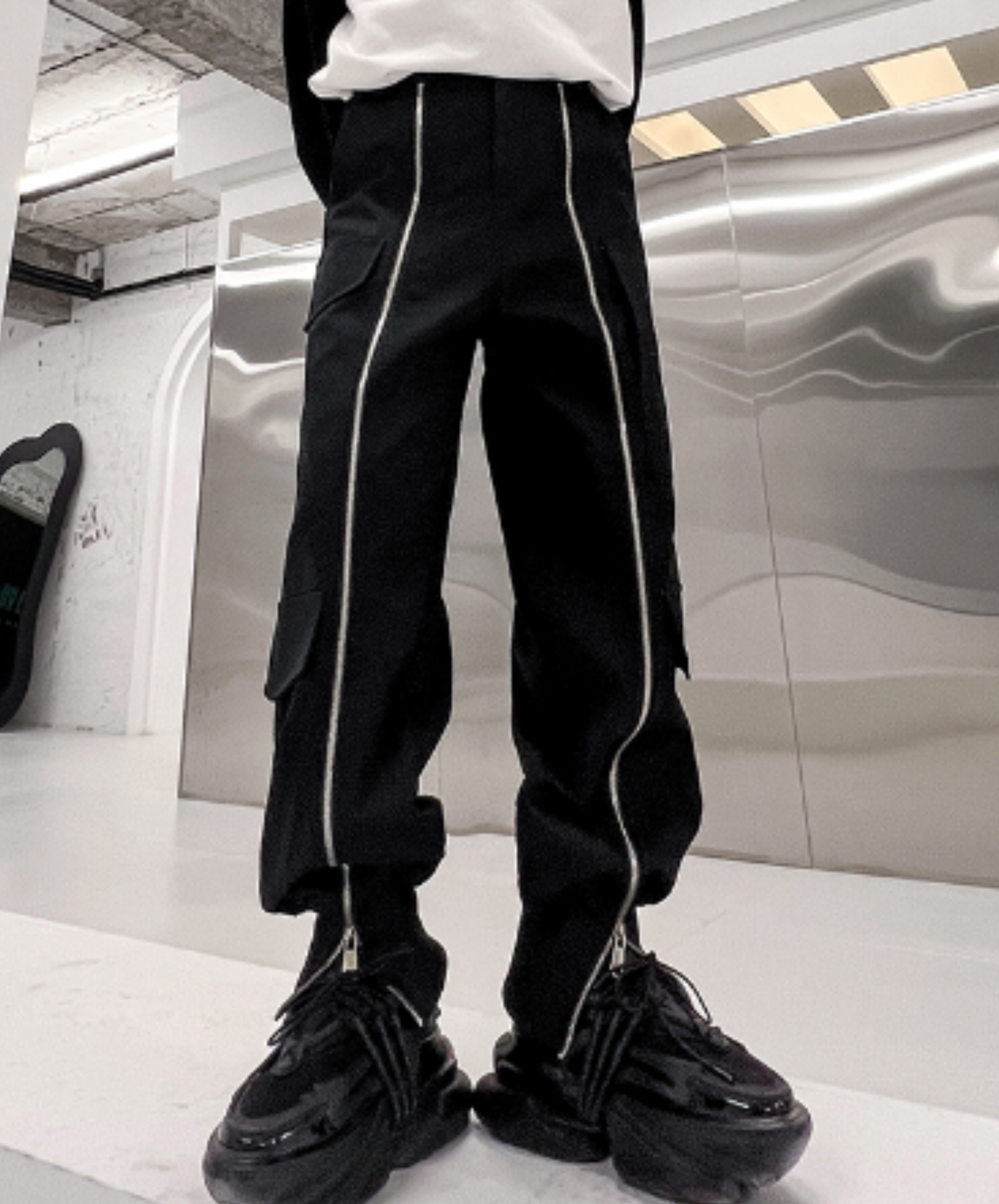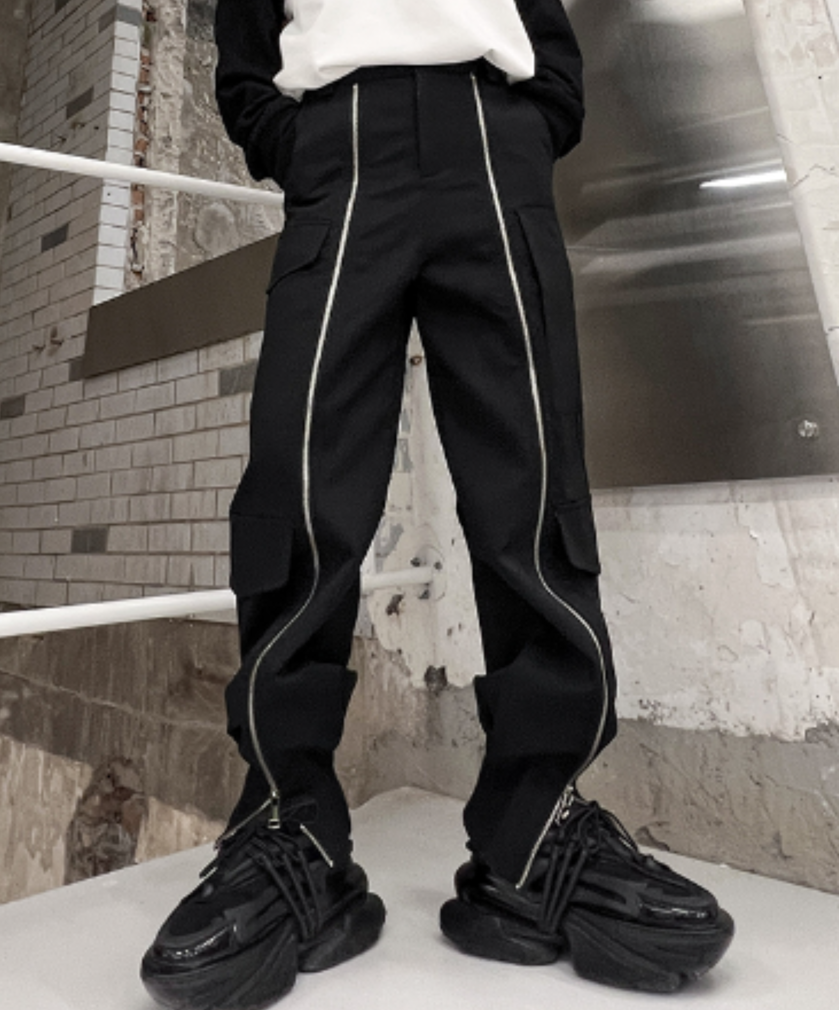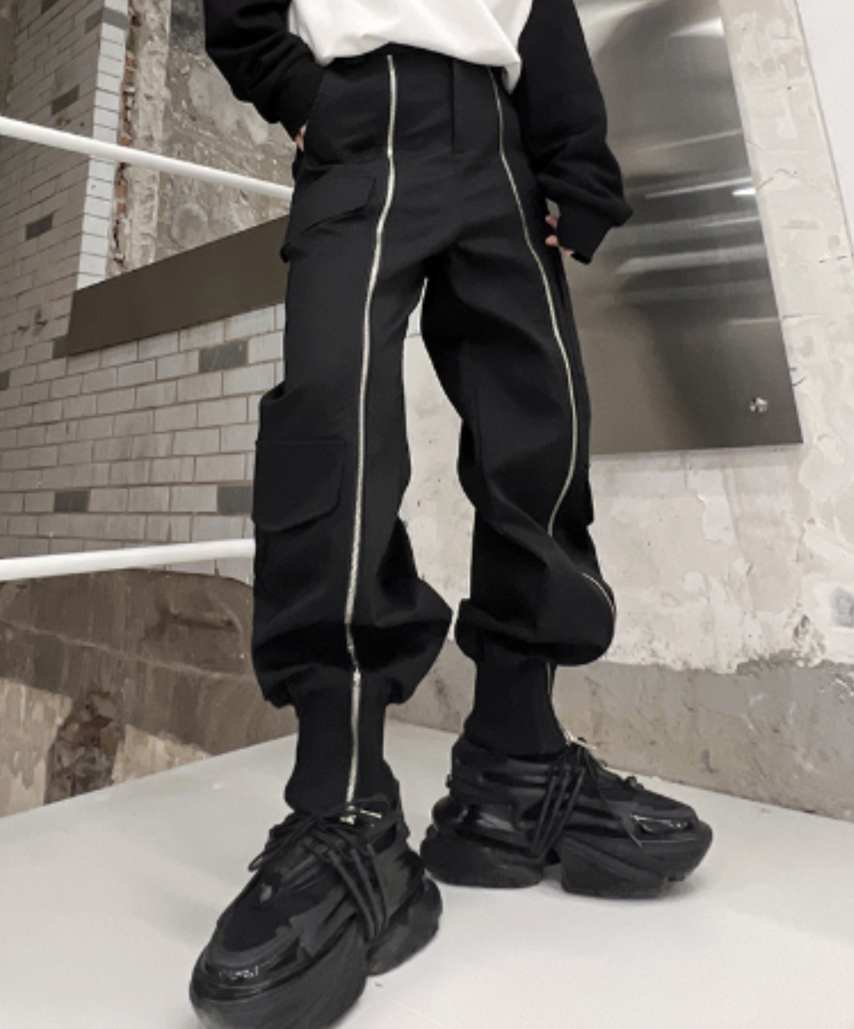 ・センターのジップアップ装飾が引き締まった印象のパンツ。