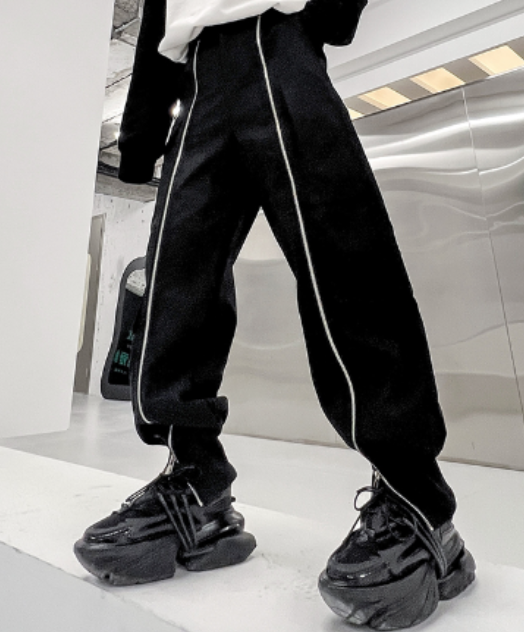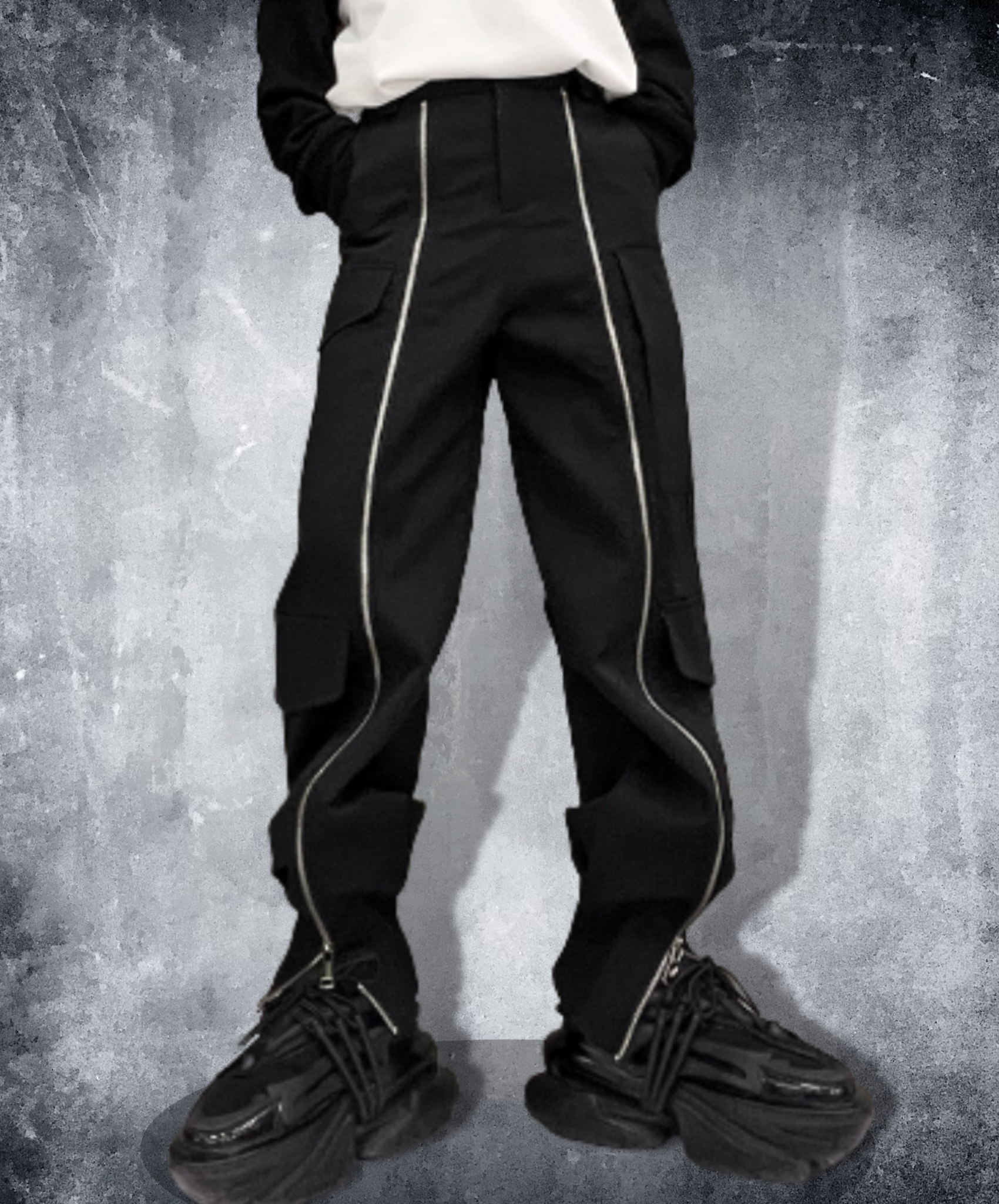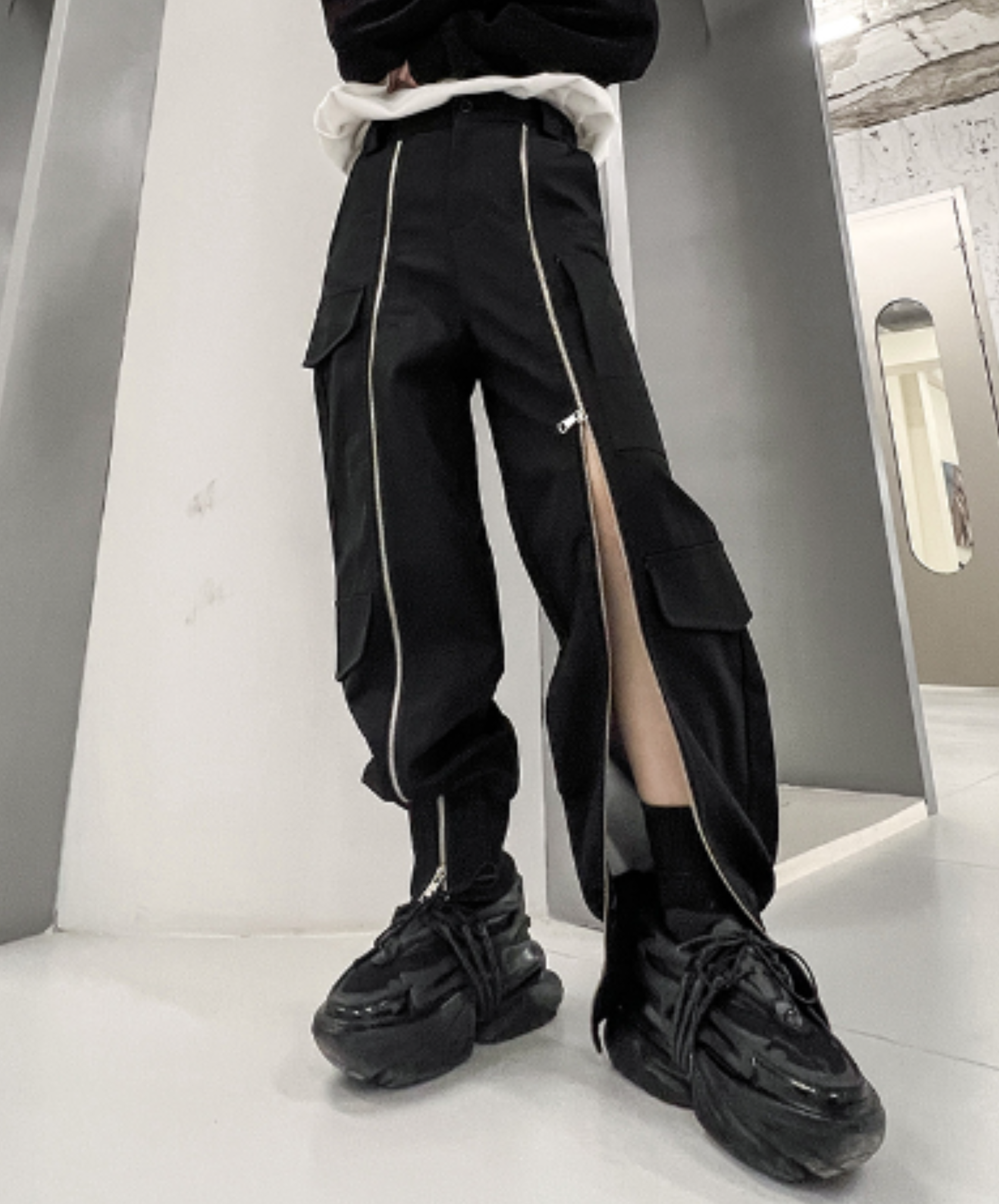 ・センターのジップアップ装飾が引き締まった印象のパンツ。