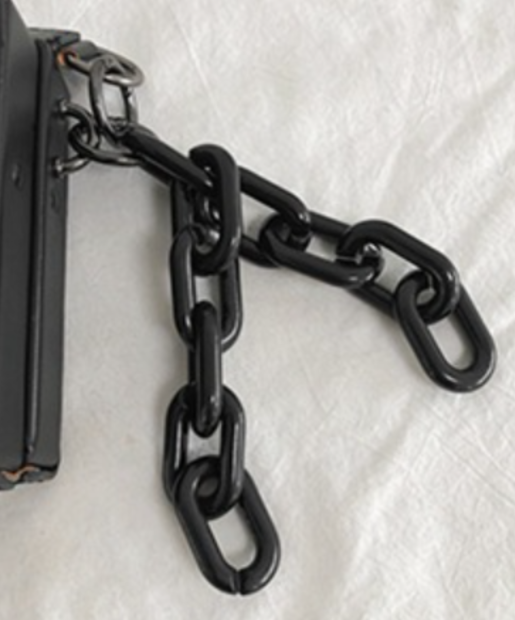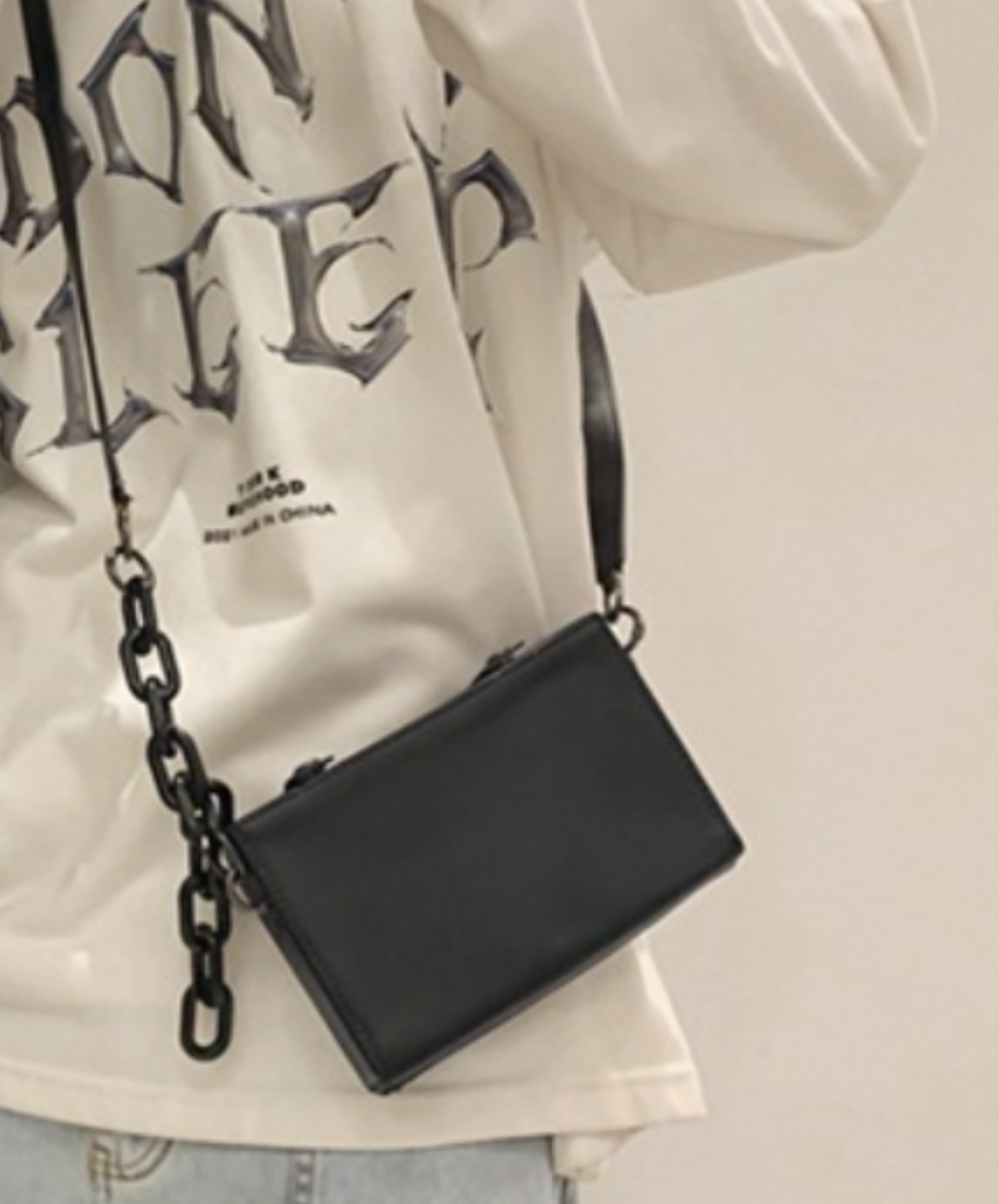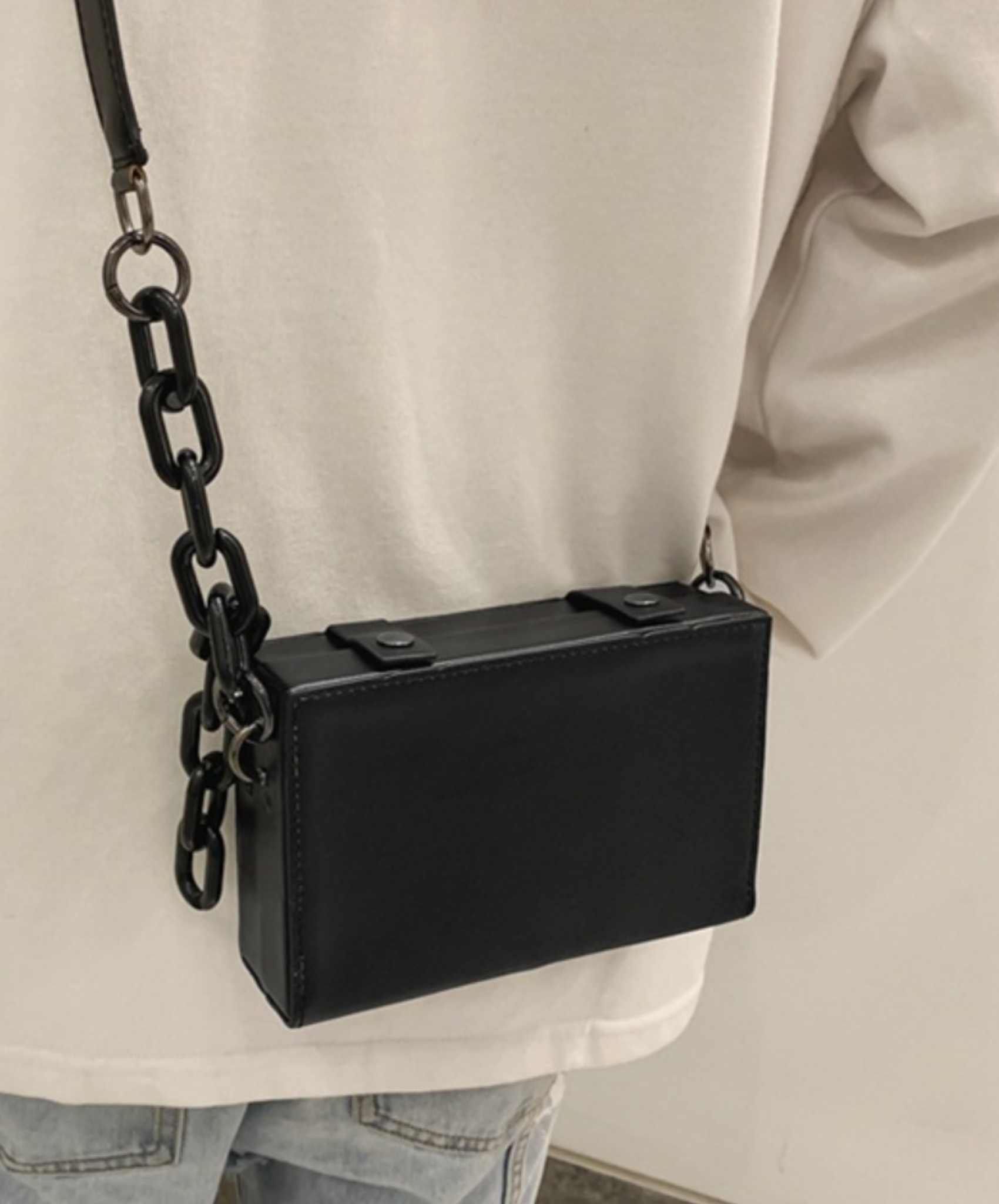 ・ゴツめチェーンが特徴的なスクエアバッグ。