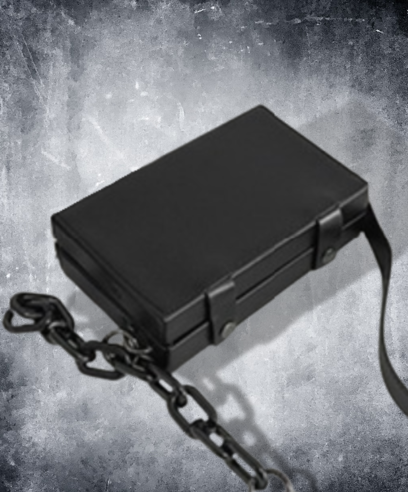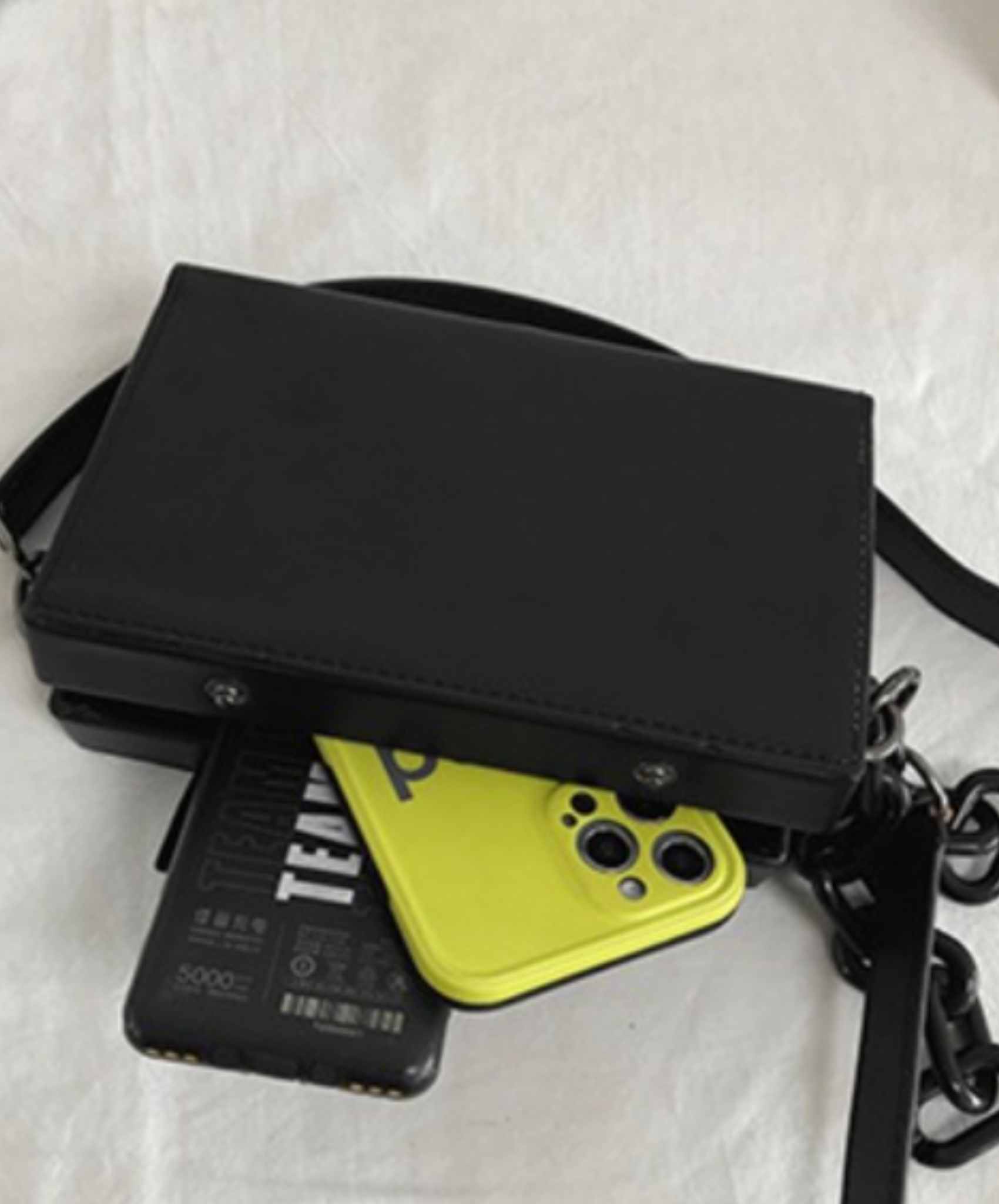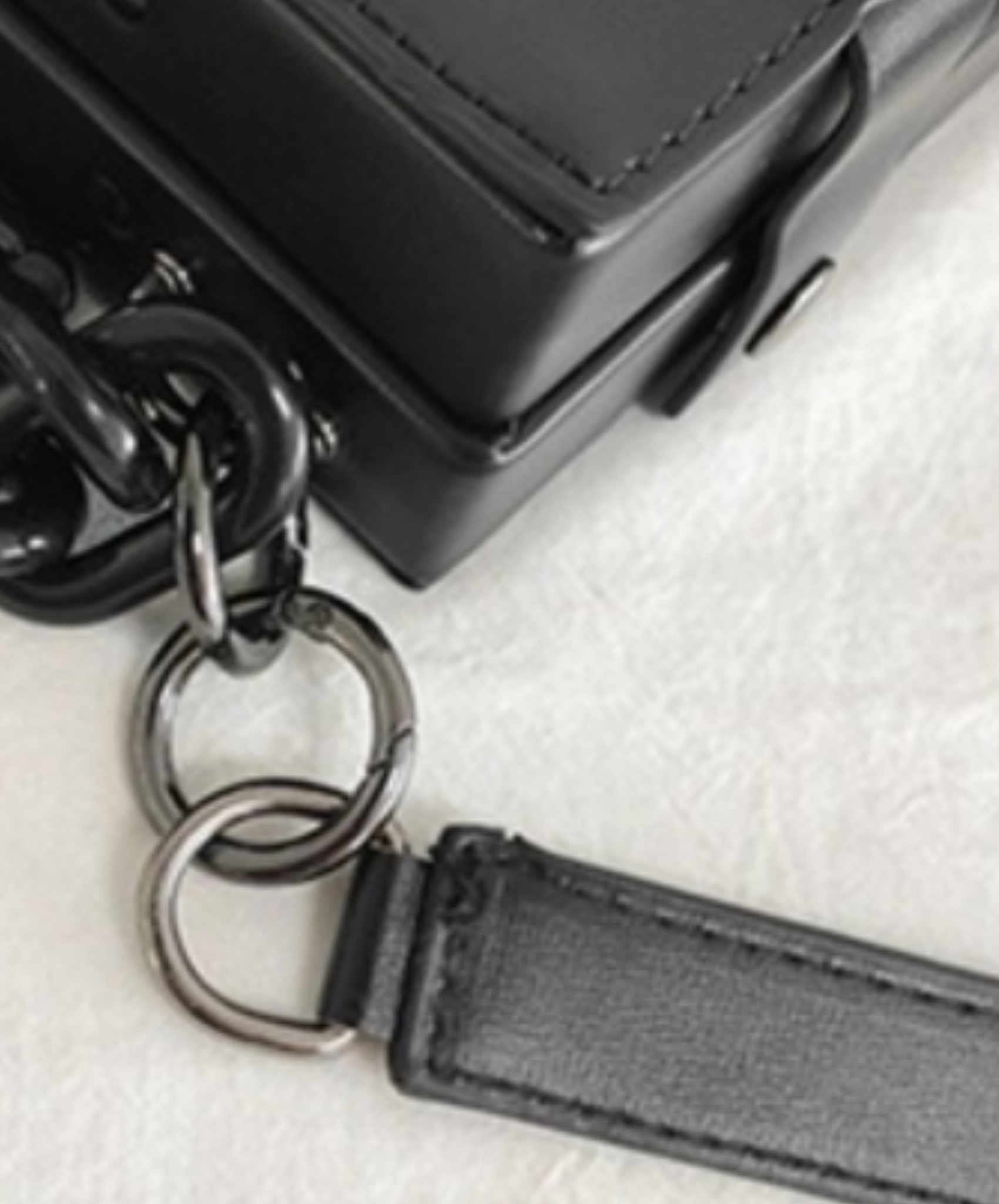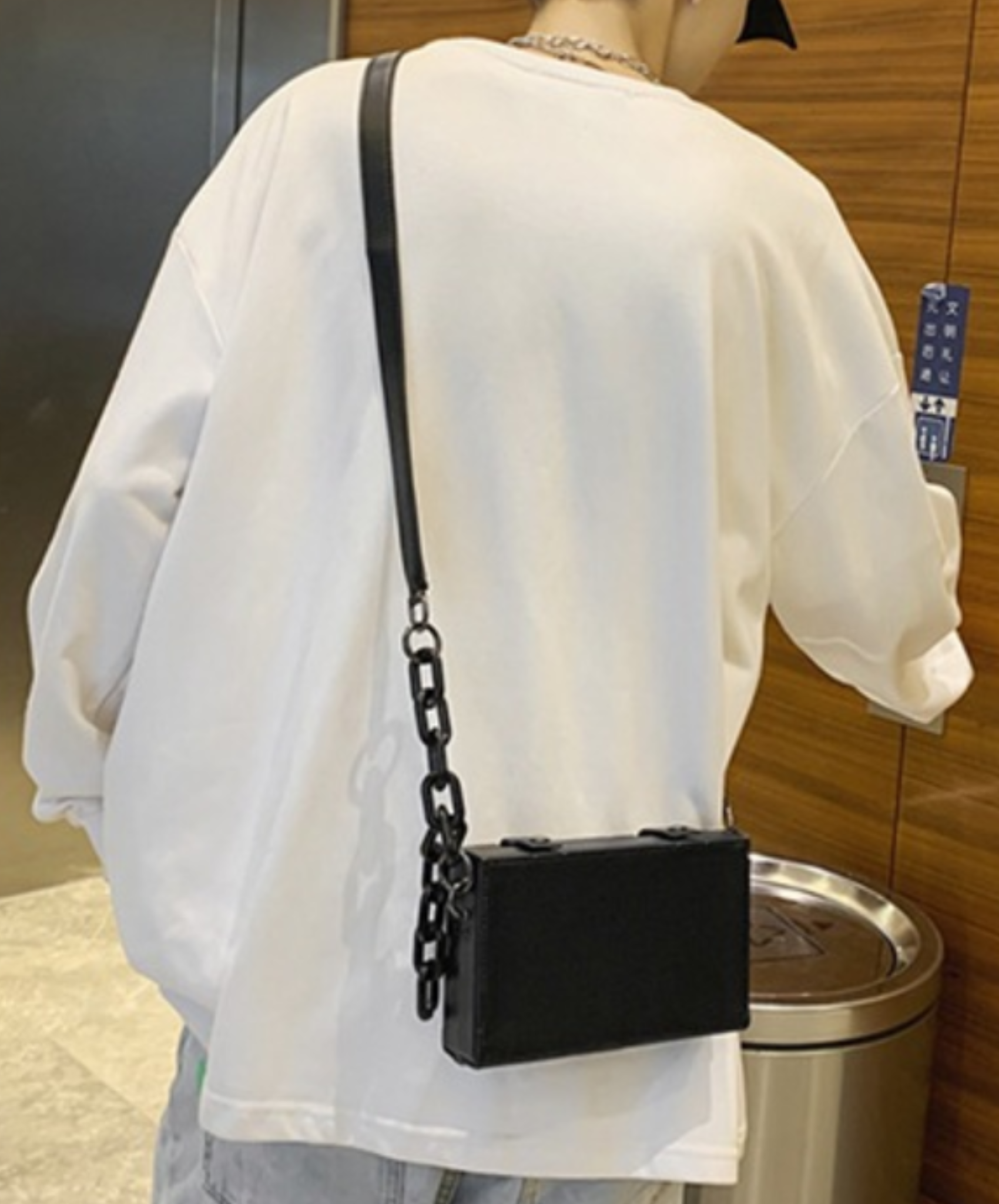 ・ゴツめチェーンが特徴的なスクエアバッグ。