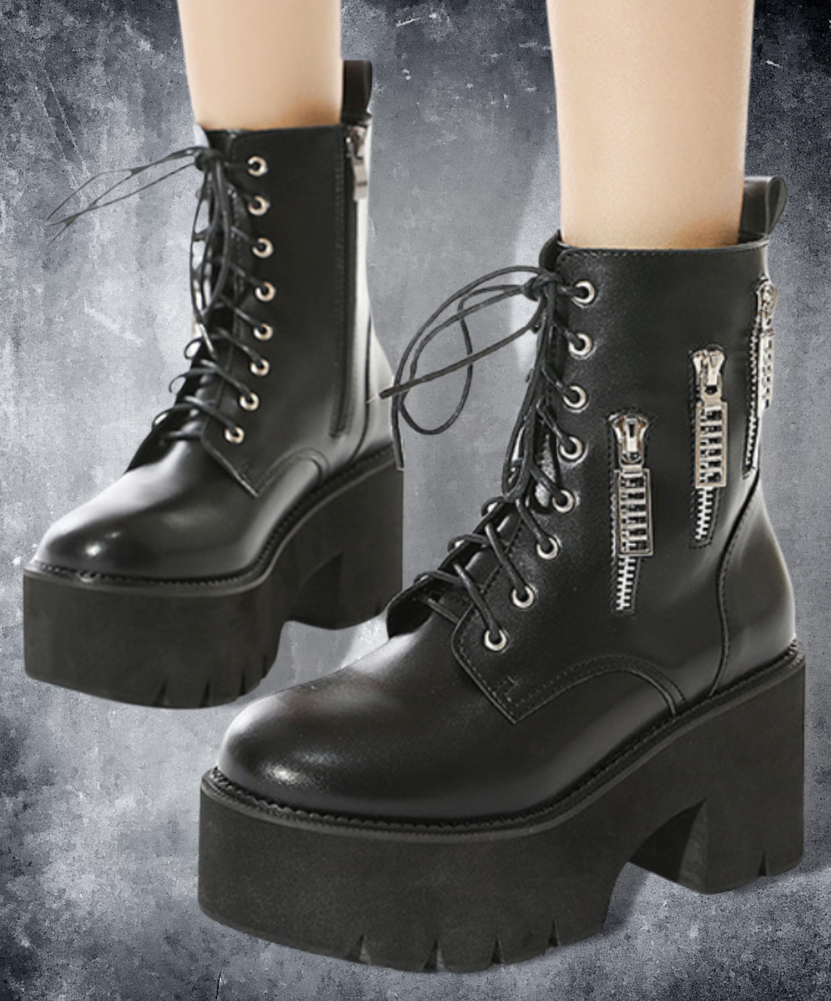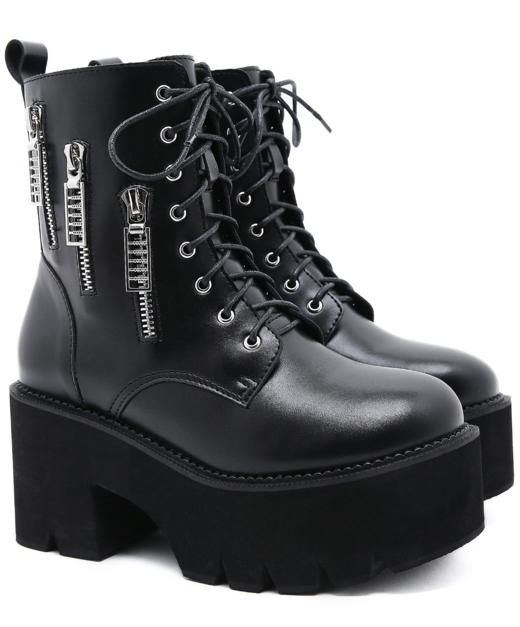 ・サイドに施された小さな三連ジッパーが可愛いジップアップブーツ。