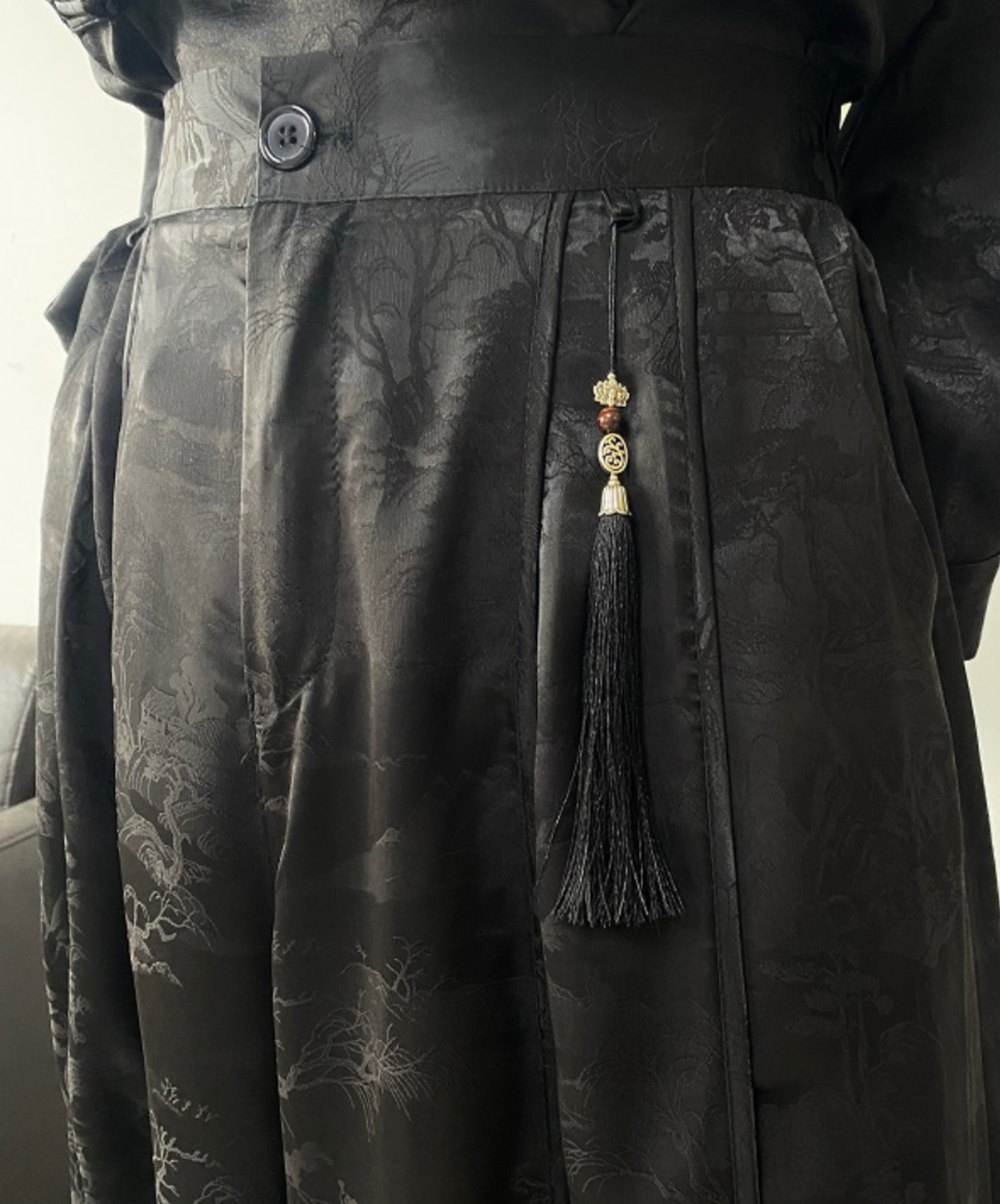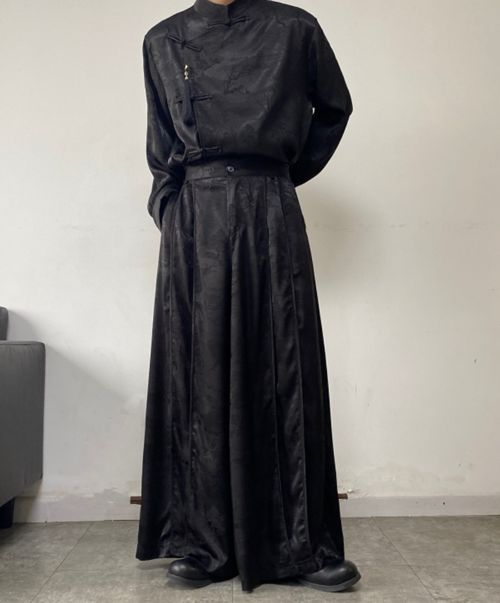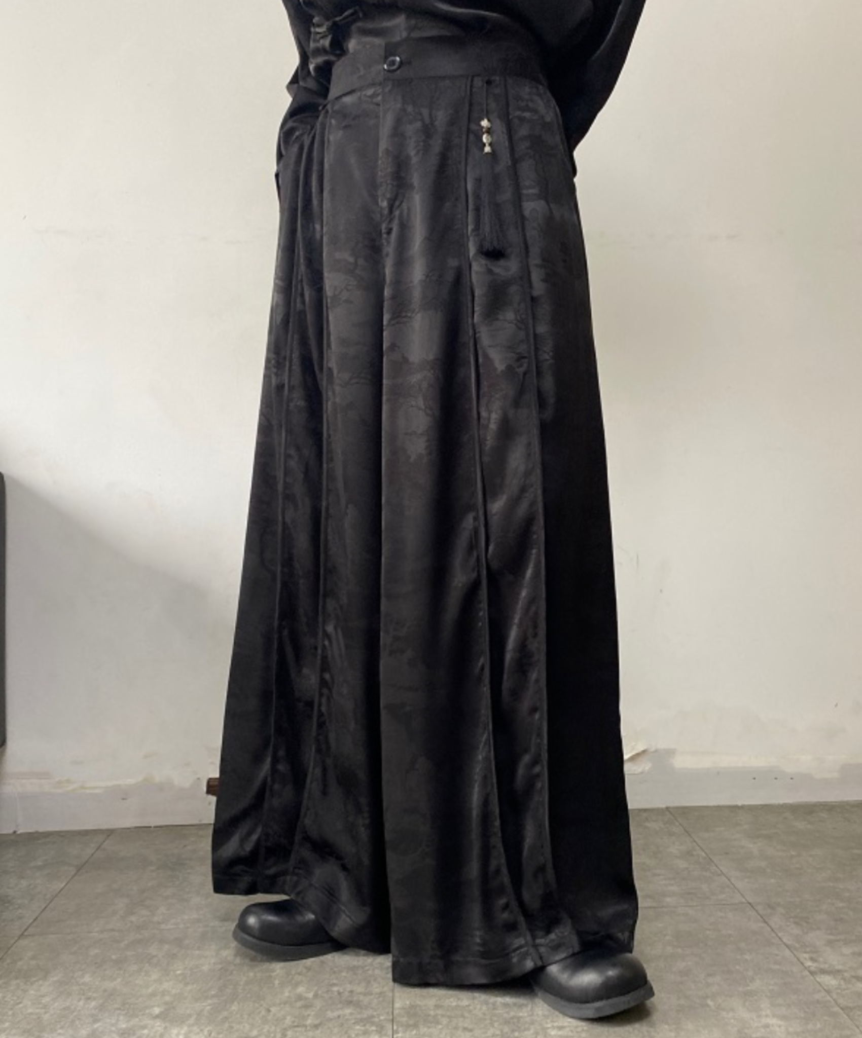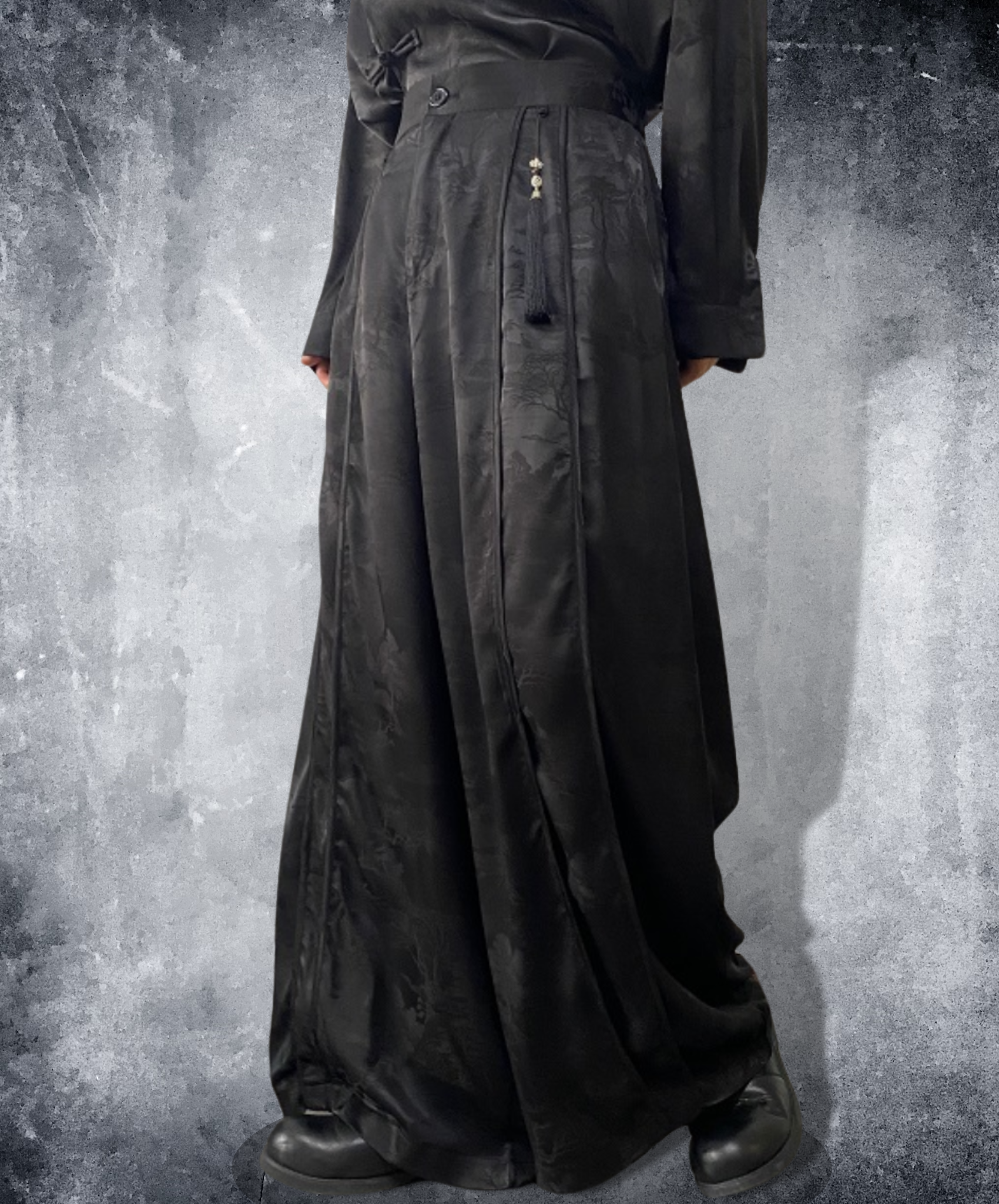 ・艶感のある生地に中華風プリントの施された上品なロングパンツ。