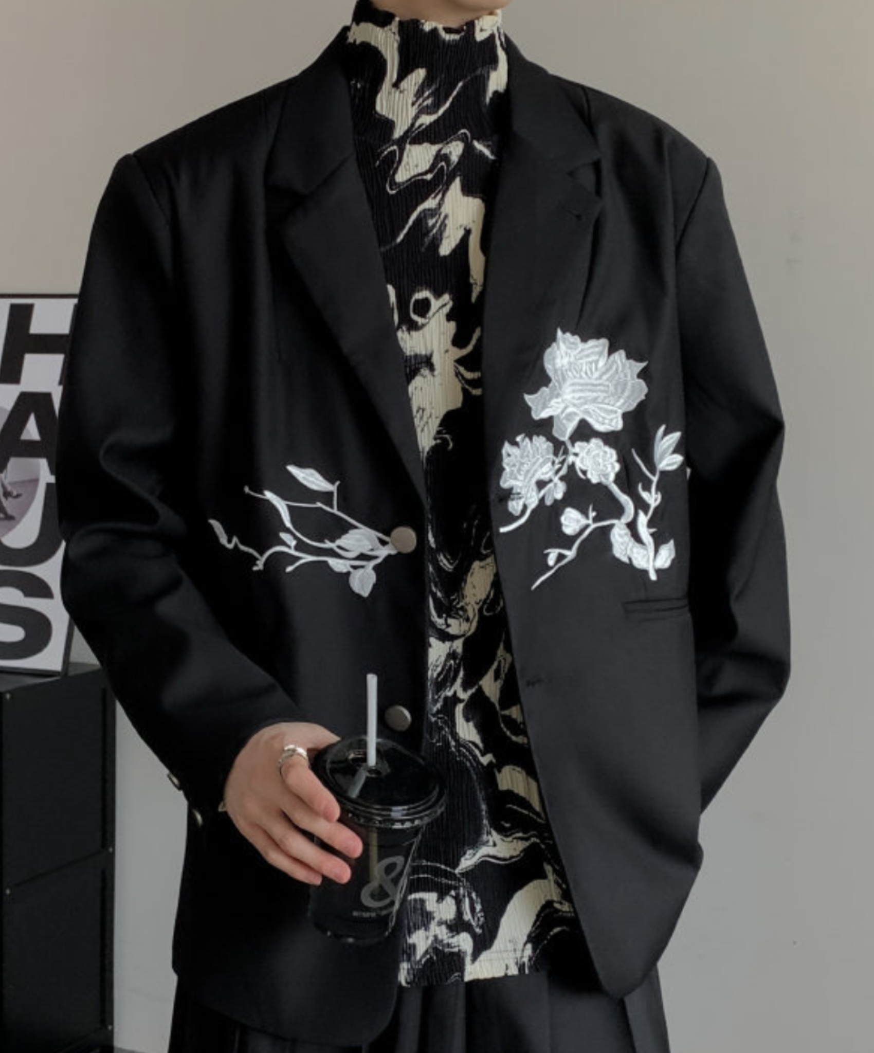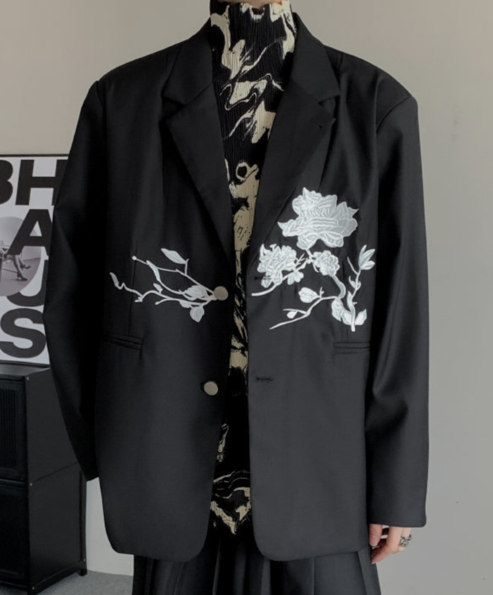 dark chinese style rose embroidery tailored jacket EN1535