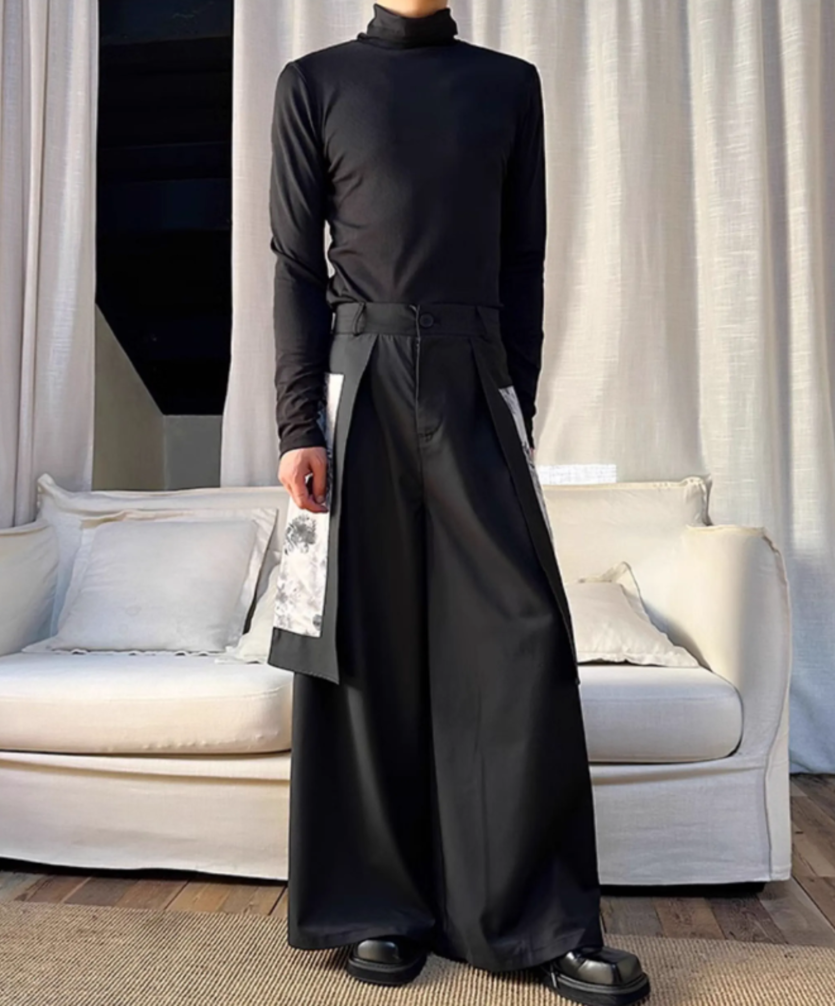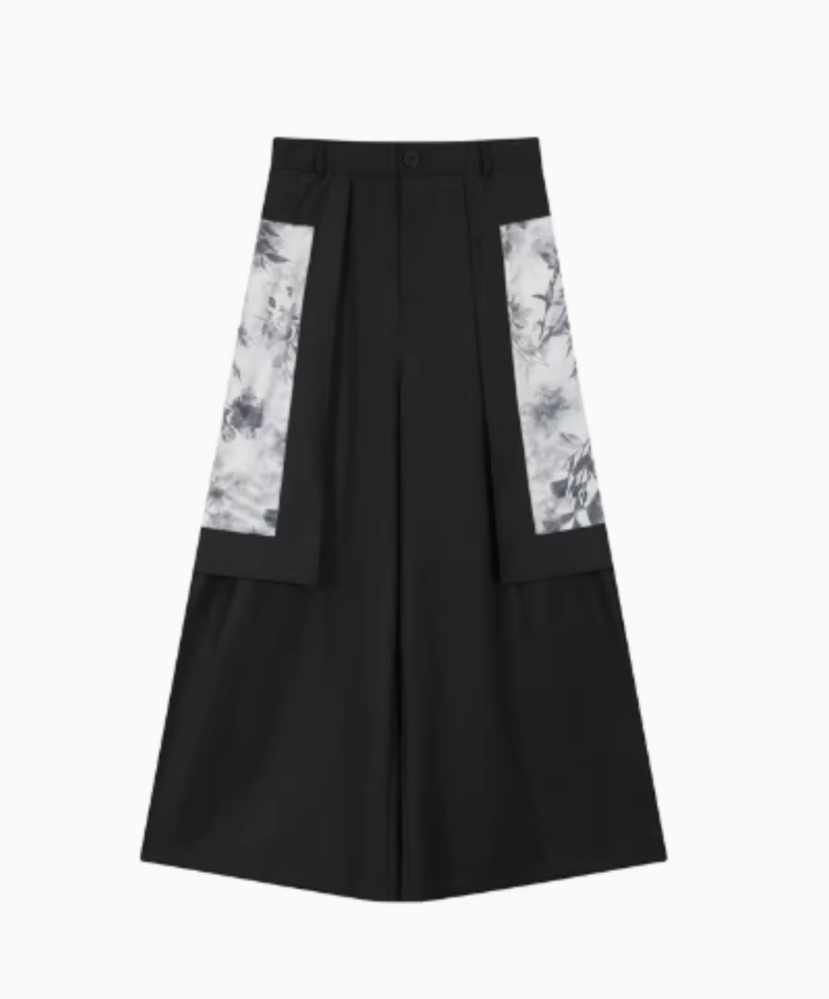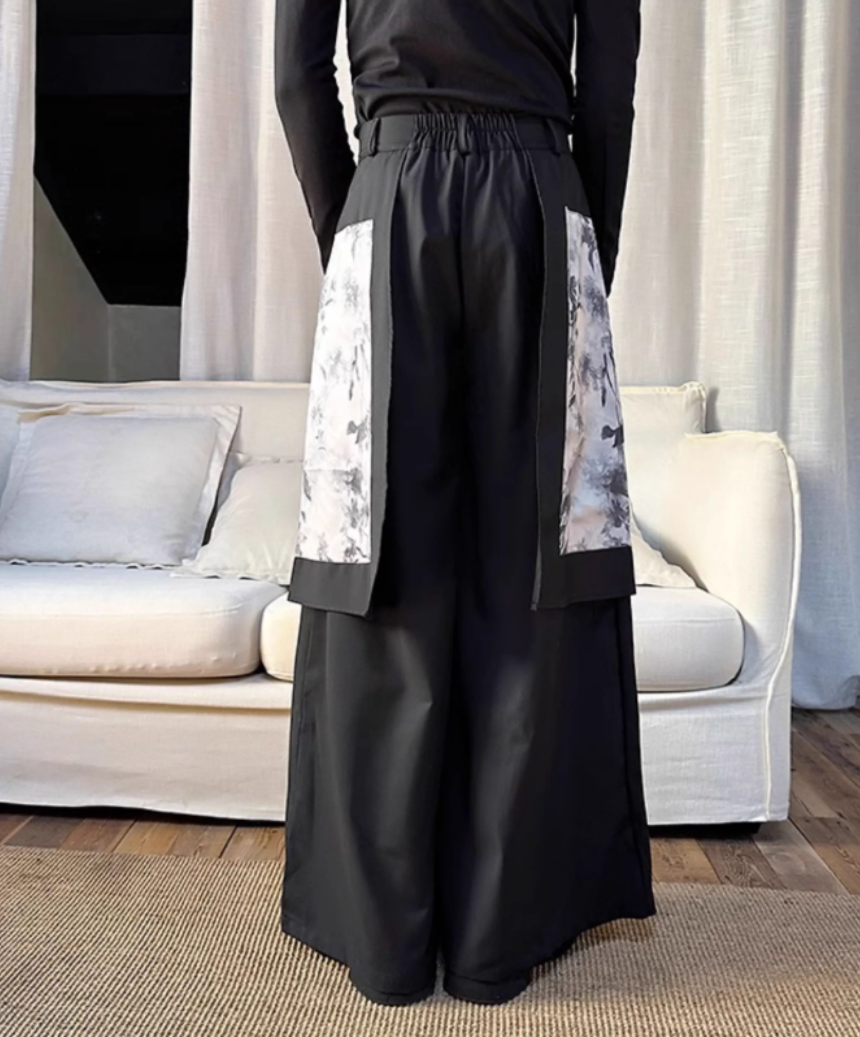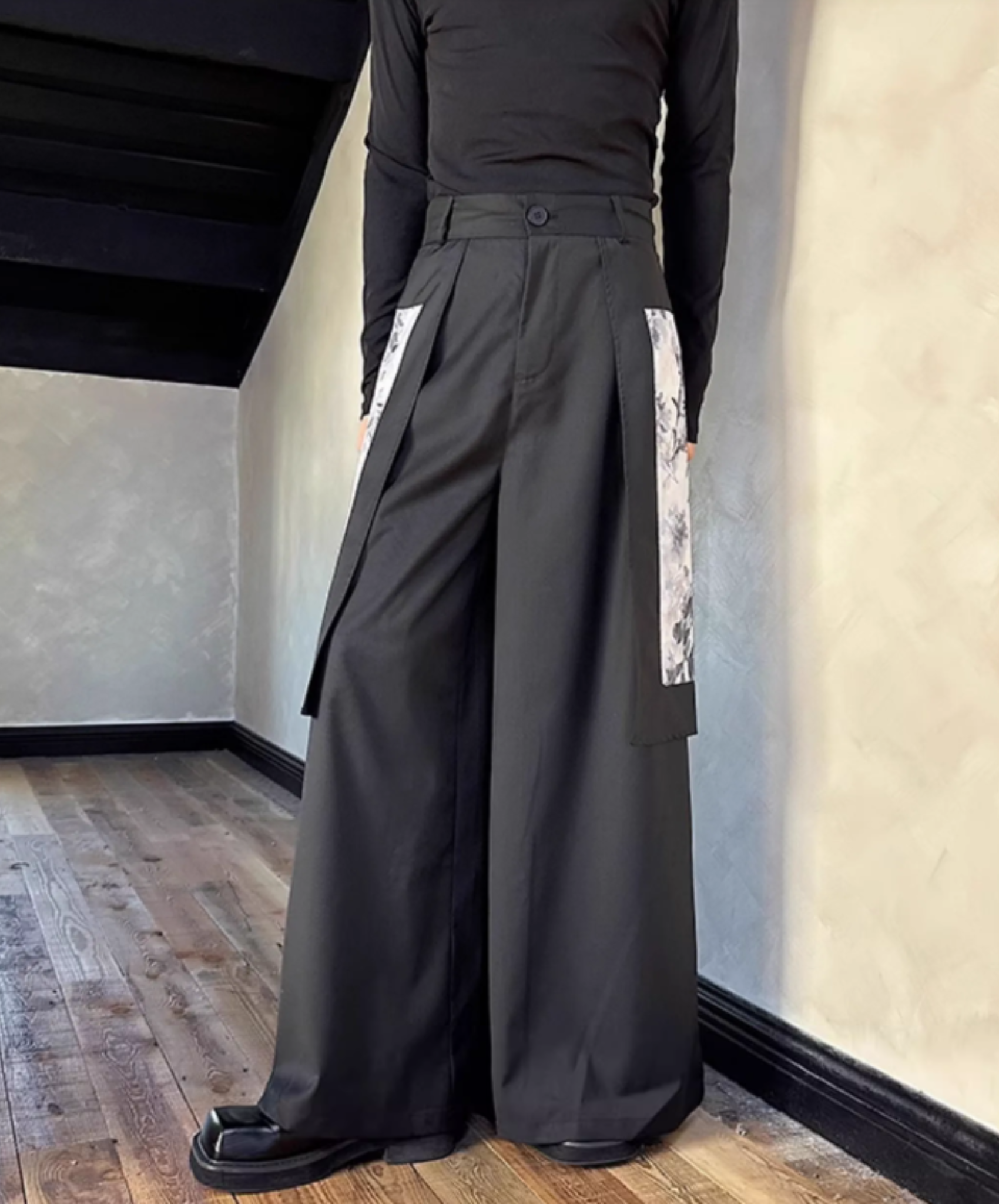 ・サイドに中華テイストのプリントが施され、独創的な印象を生み出すワイドパンツ。