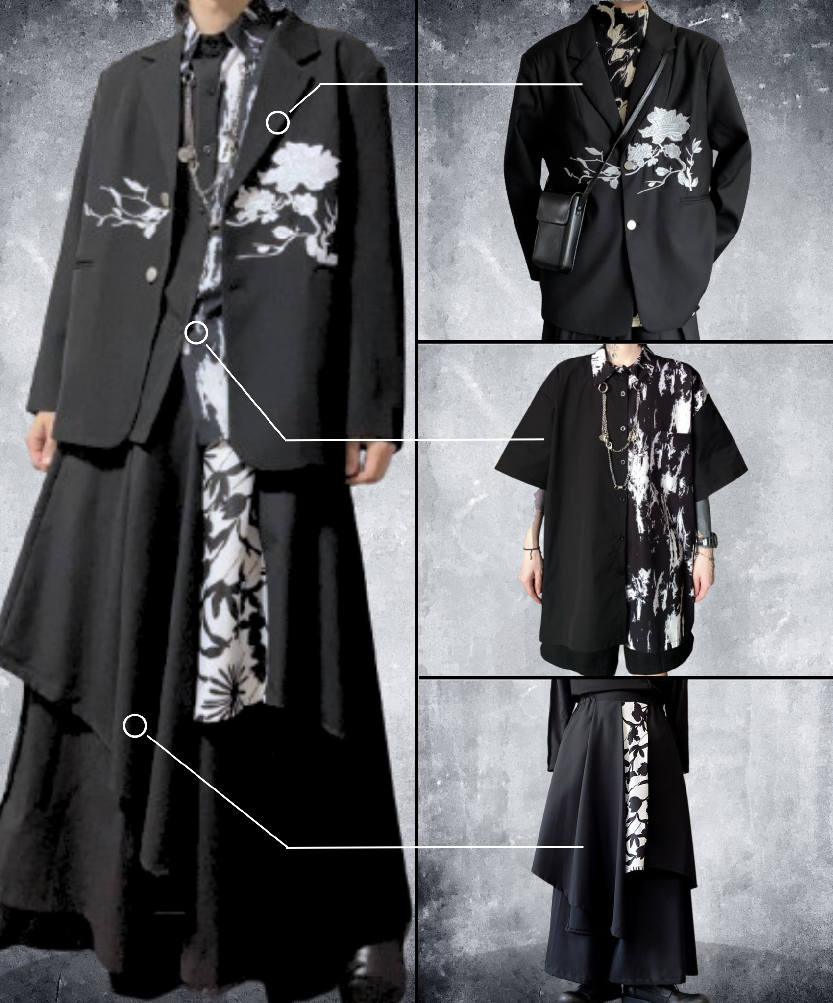 ↓ジャケット単品はこちら【dark chinese style rose embroidery tailored jacket EN1535】