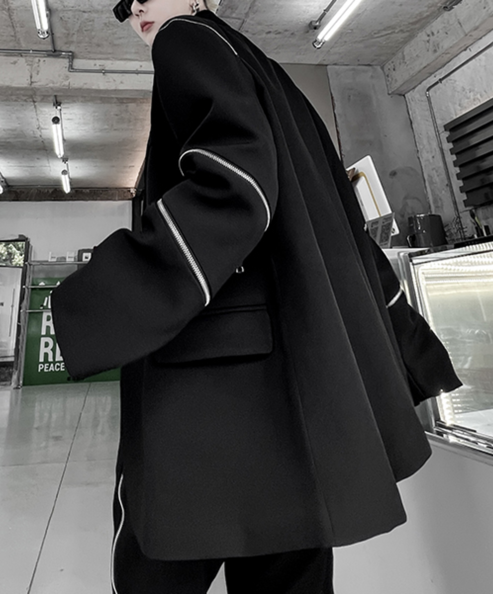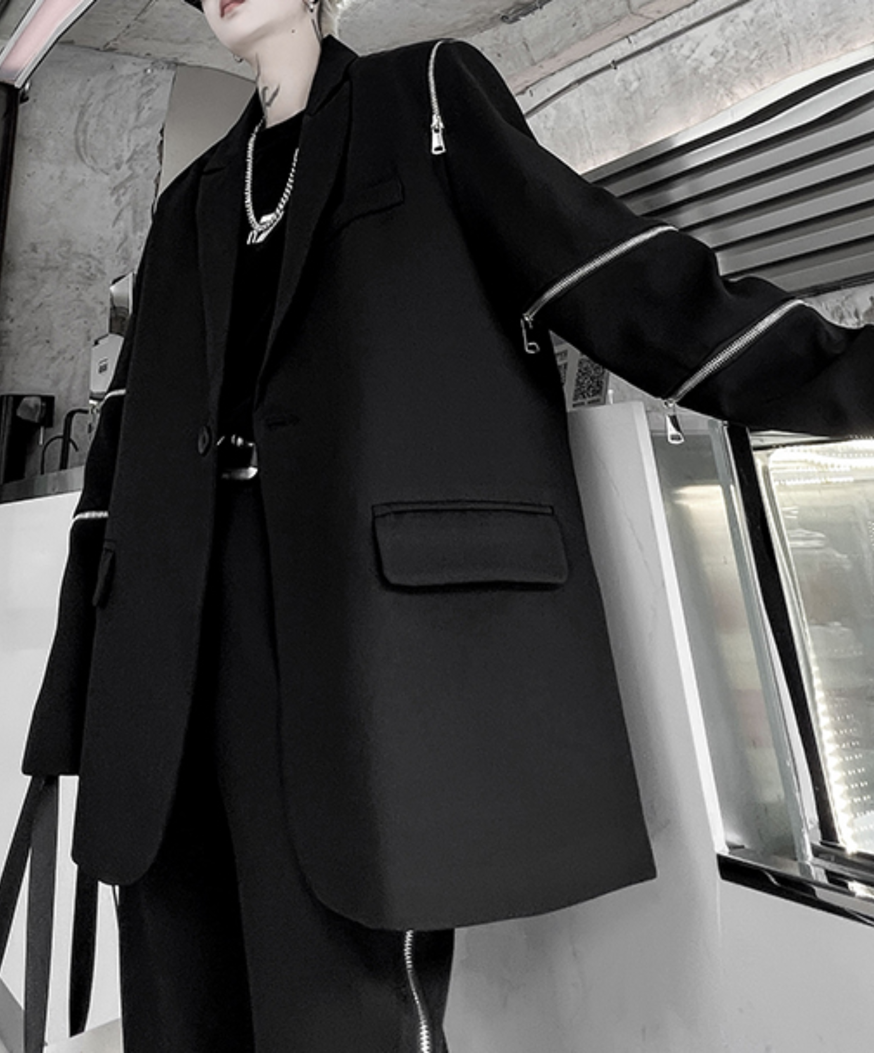 ・アームに施されたマルチジップが視線を集めるジャケット