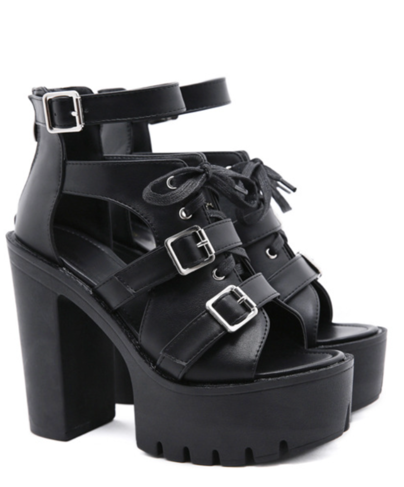 ・レースアップデザインを盛り込み、女性らしさも演出。