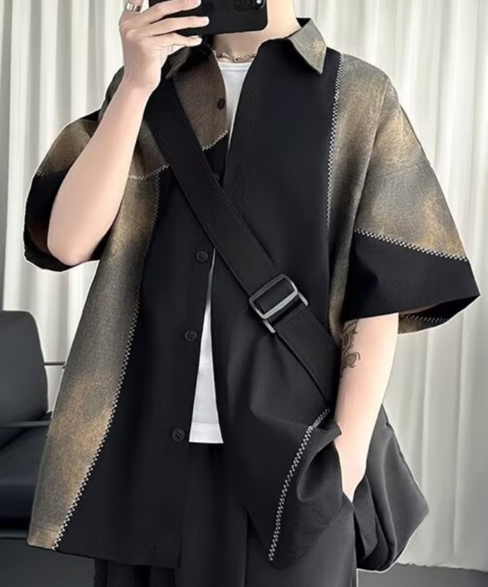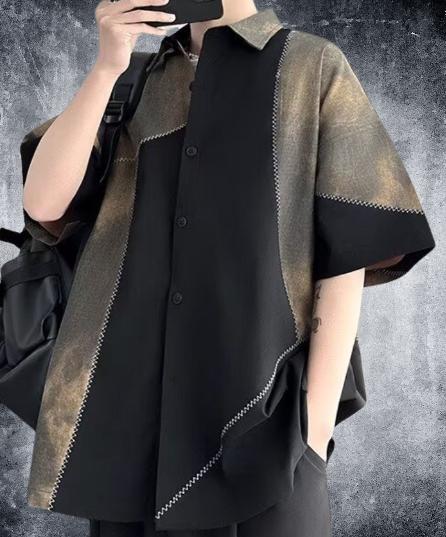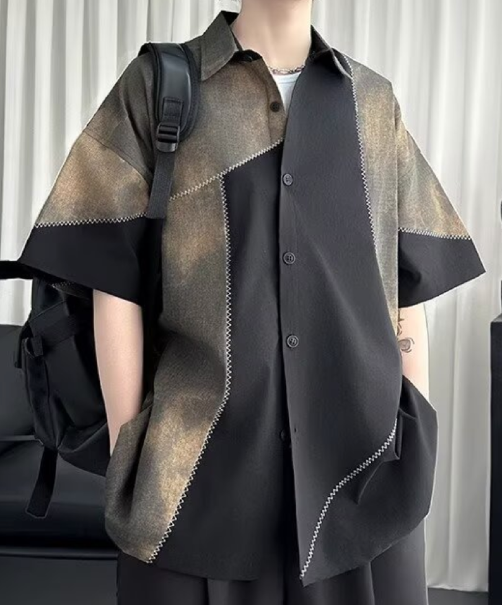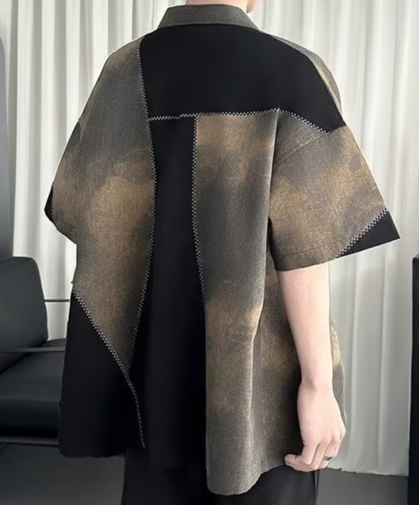 ・レトロ感のあるパッチワーク半袖シャツ。