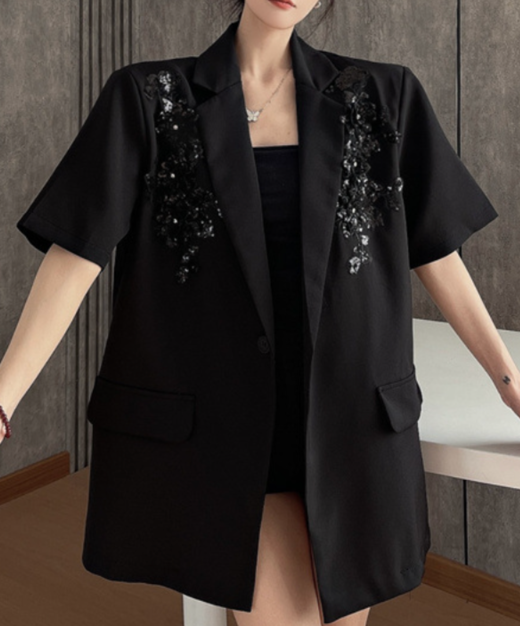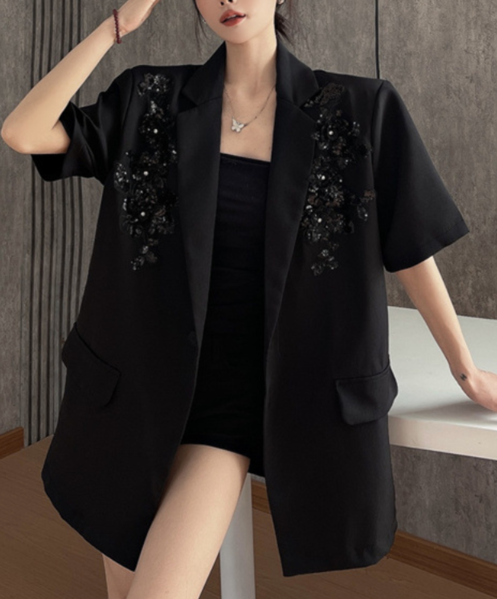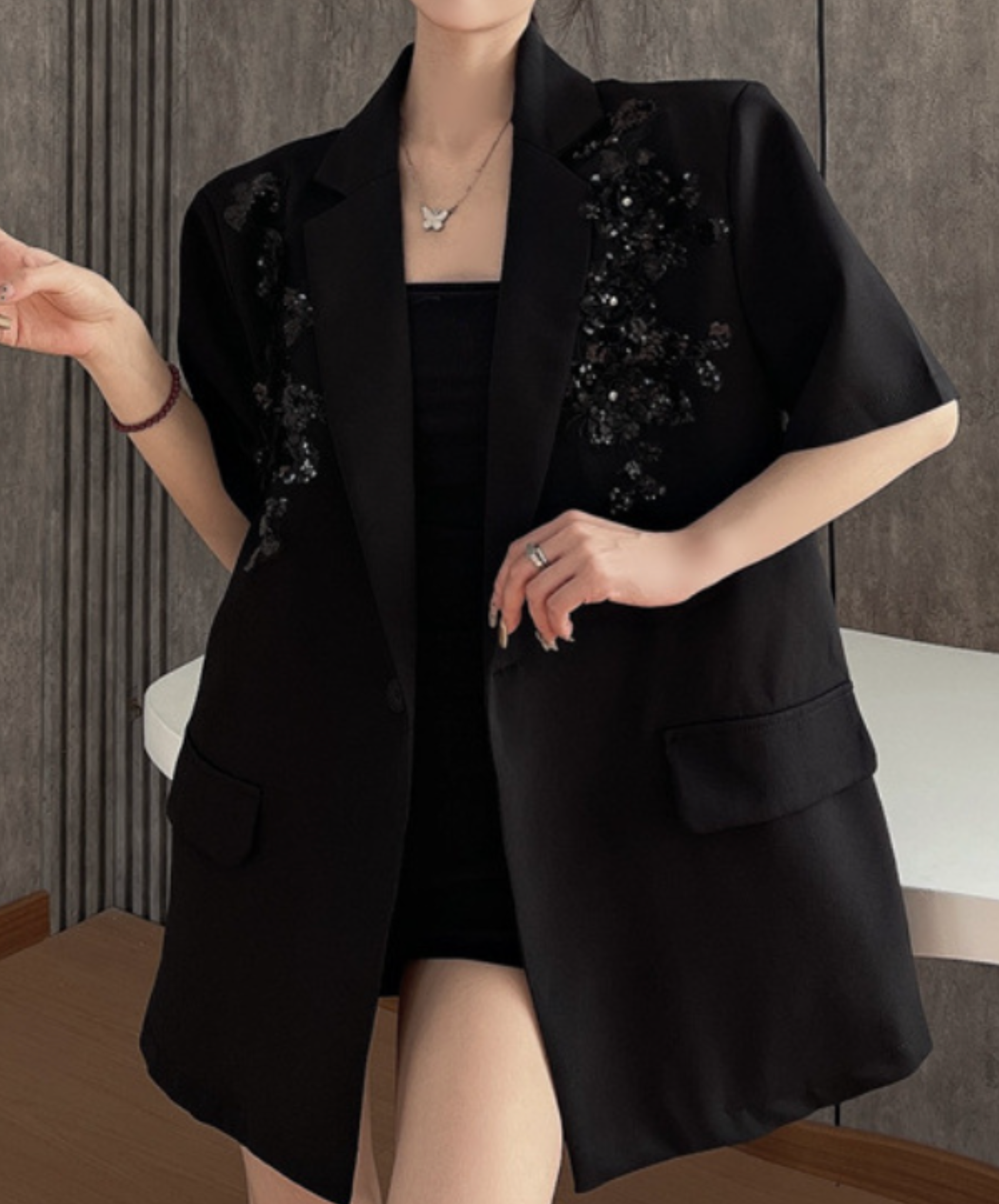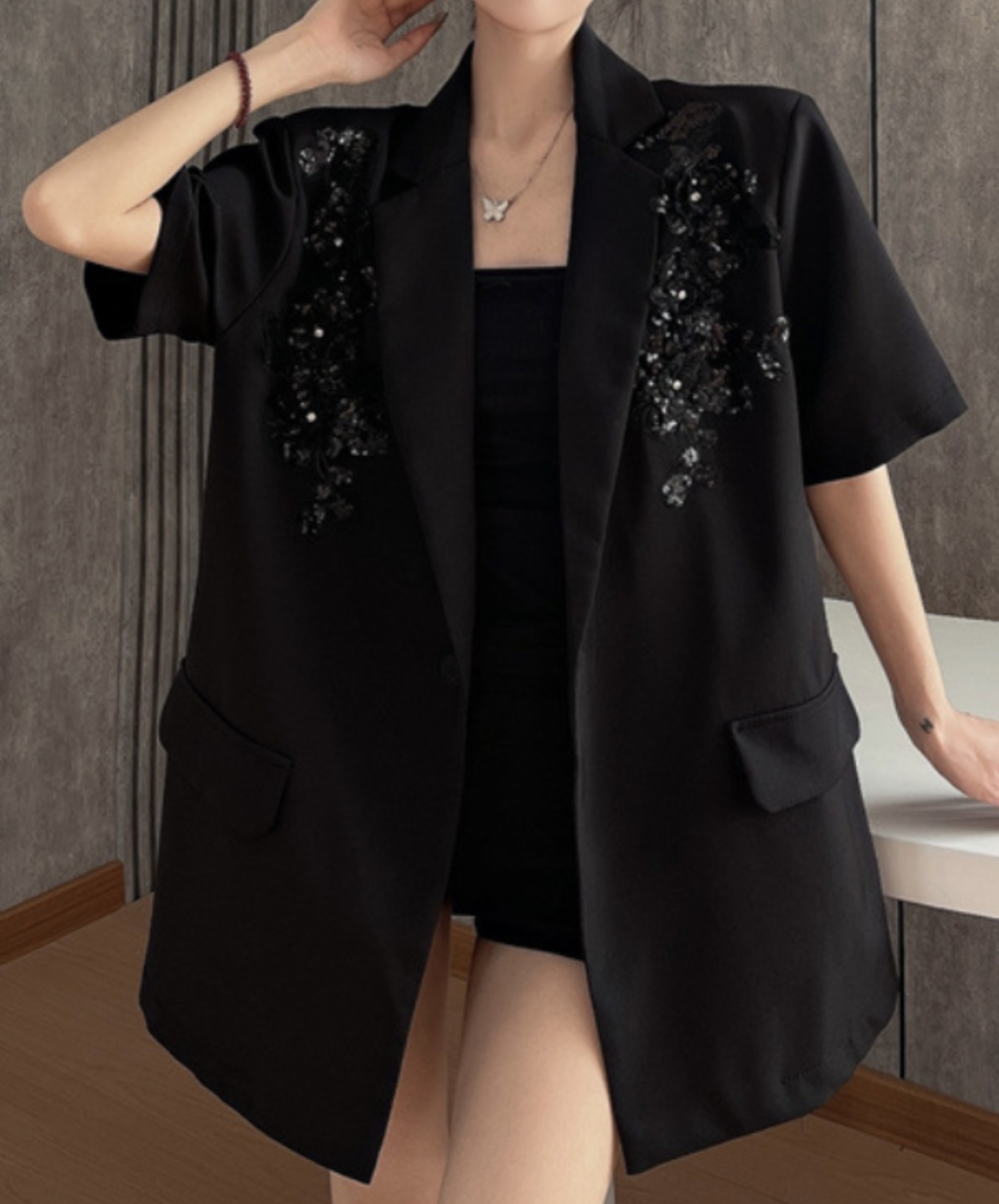 sequin embroidery short sleeve jacket EN2228