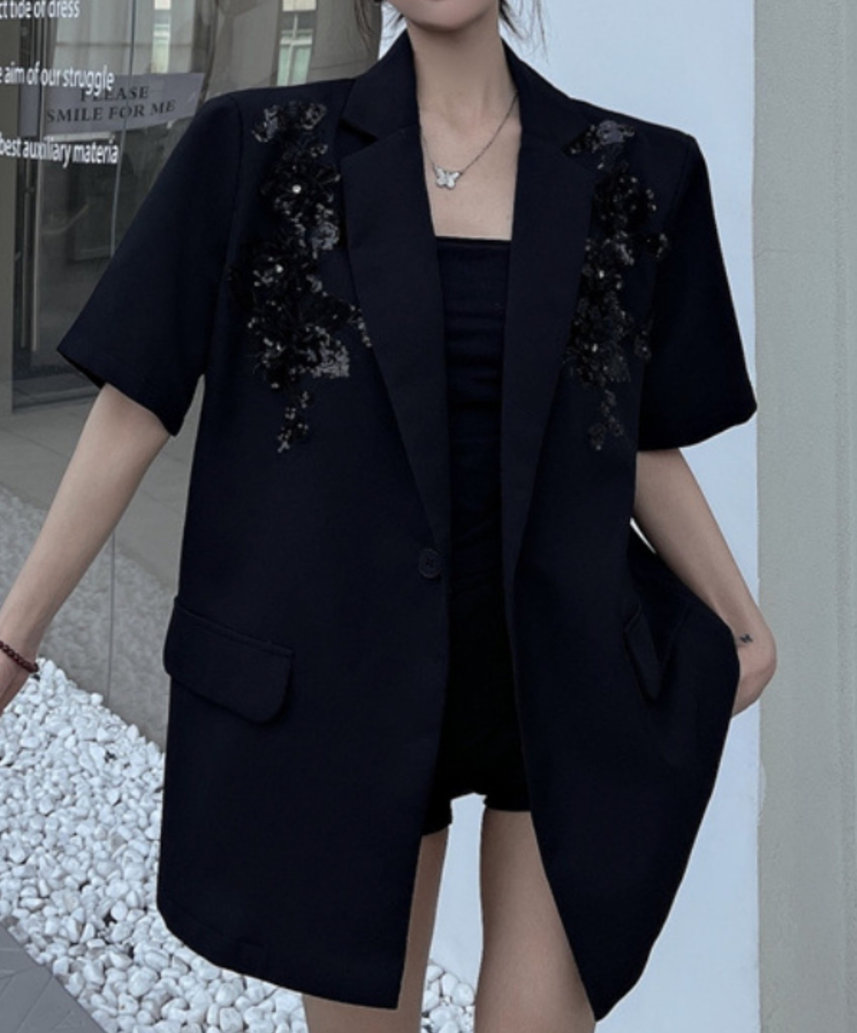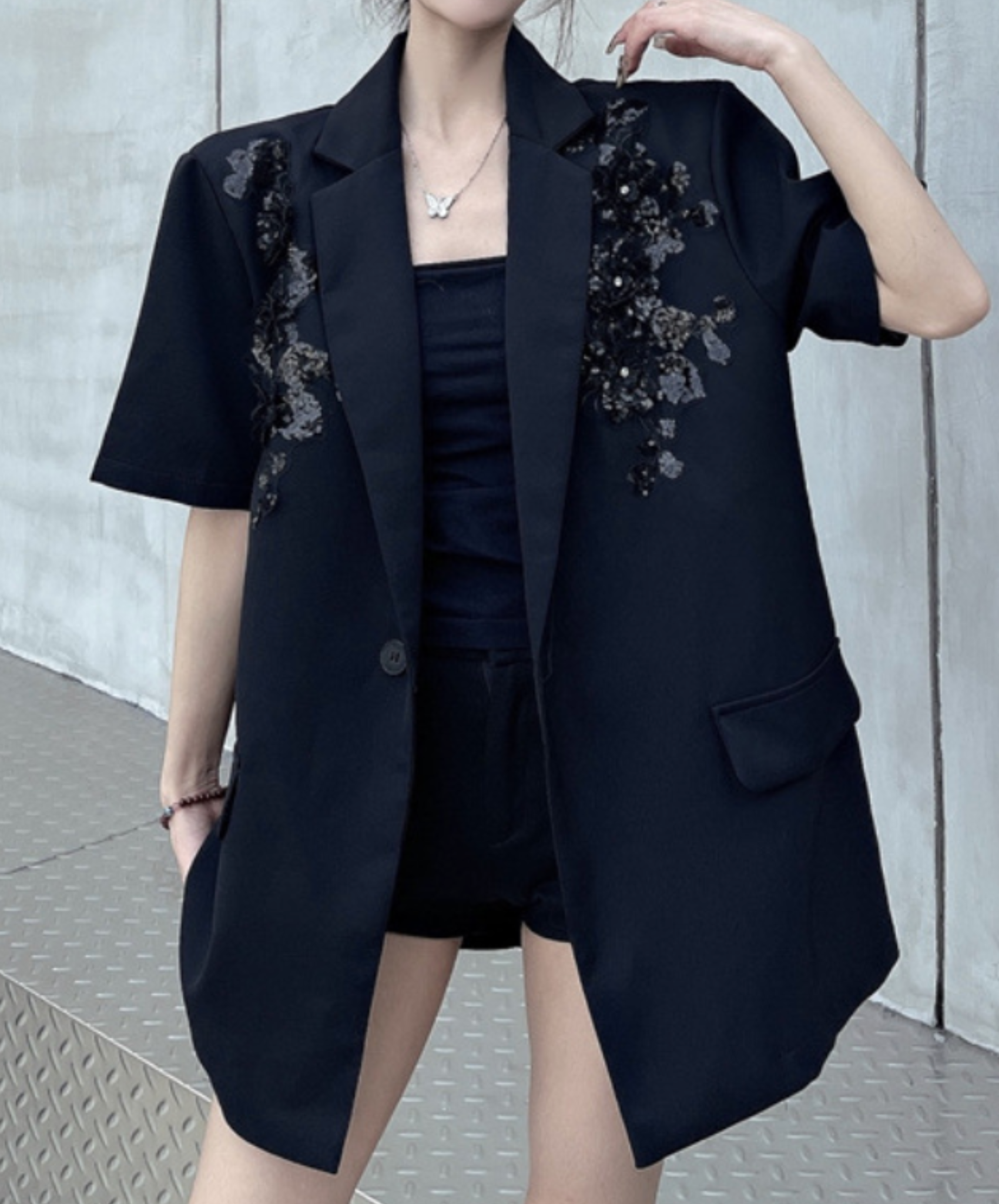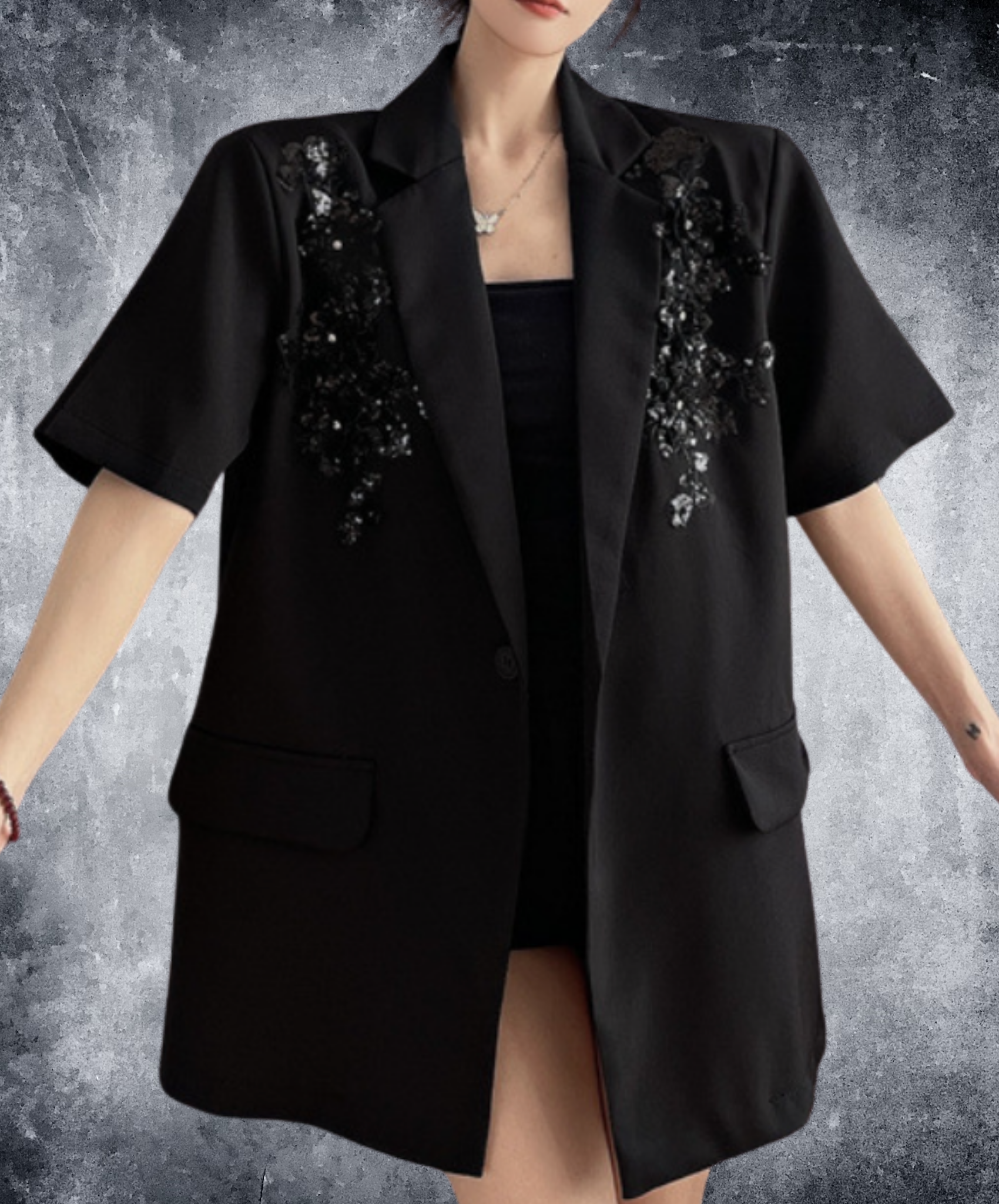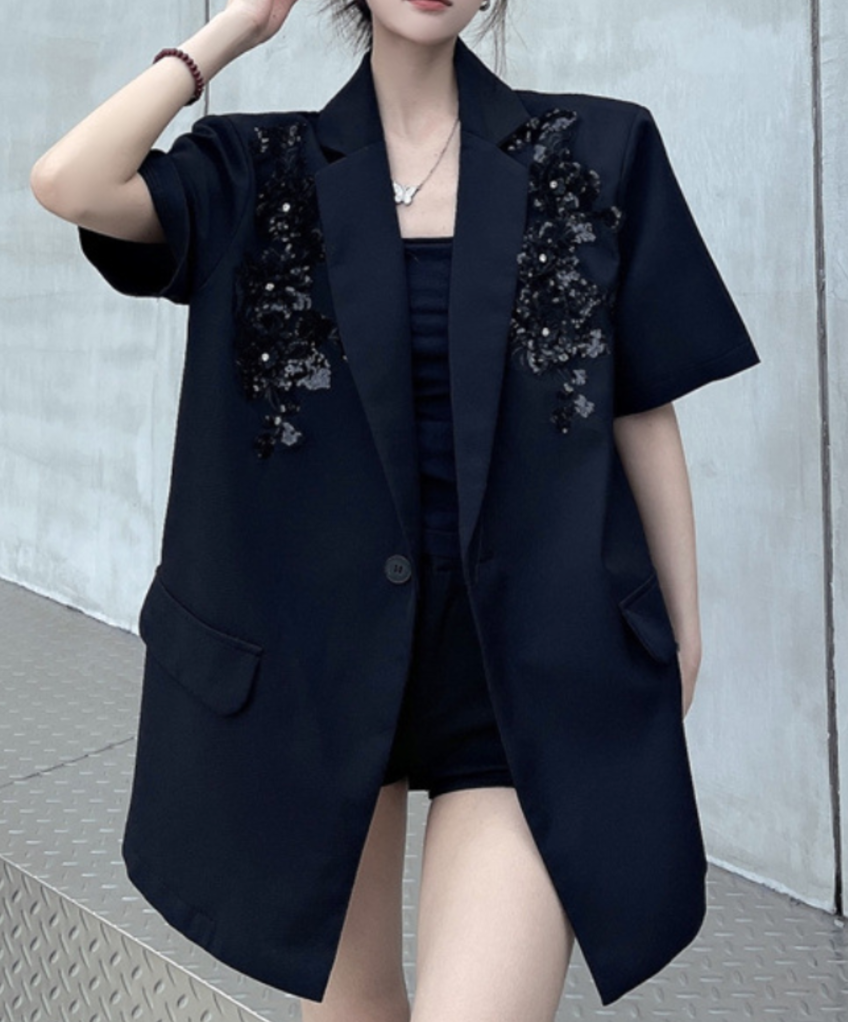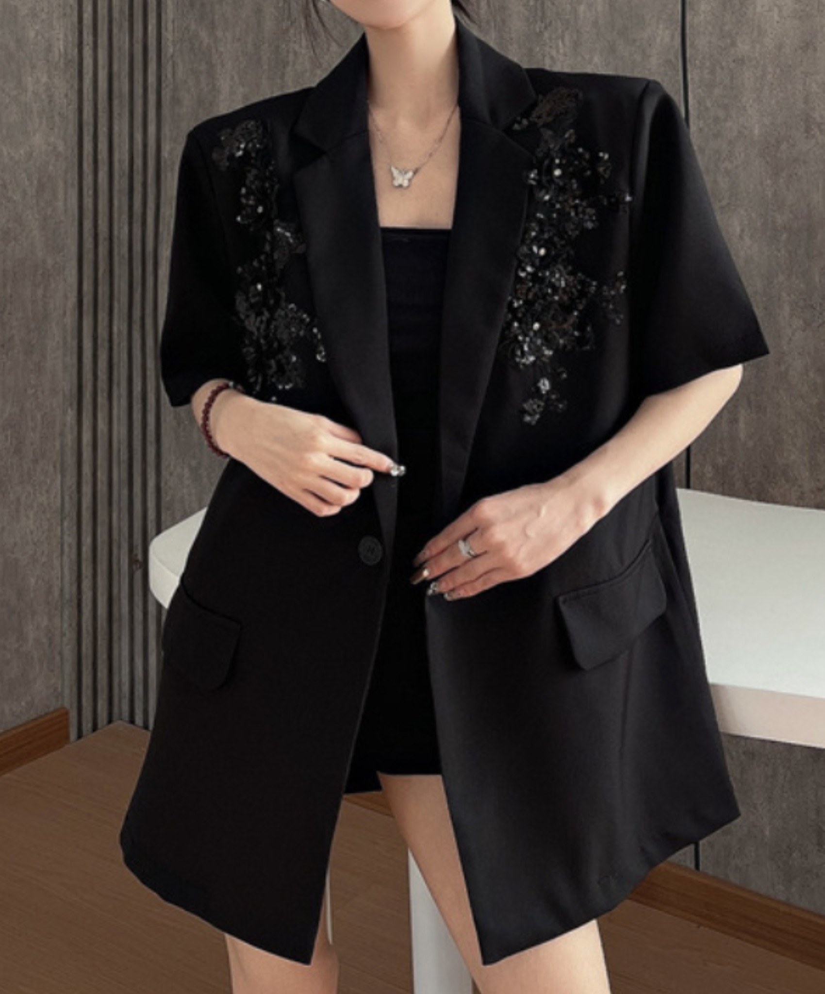 sequin embroidery short sleeve jacket EN2228