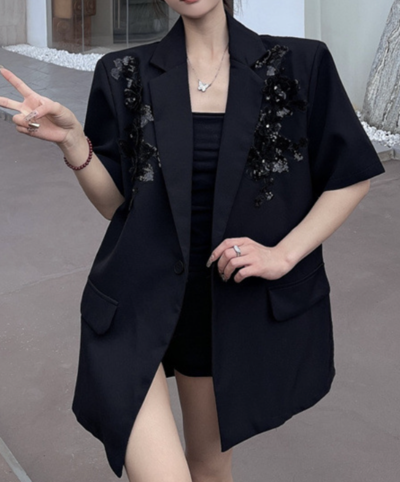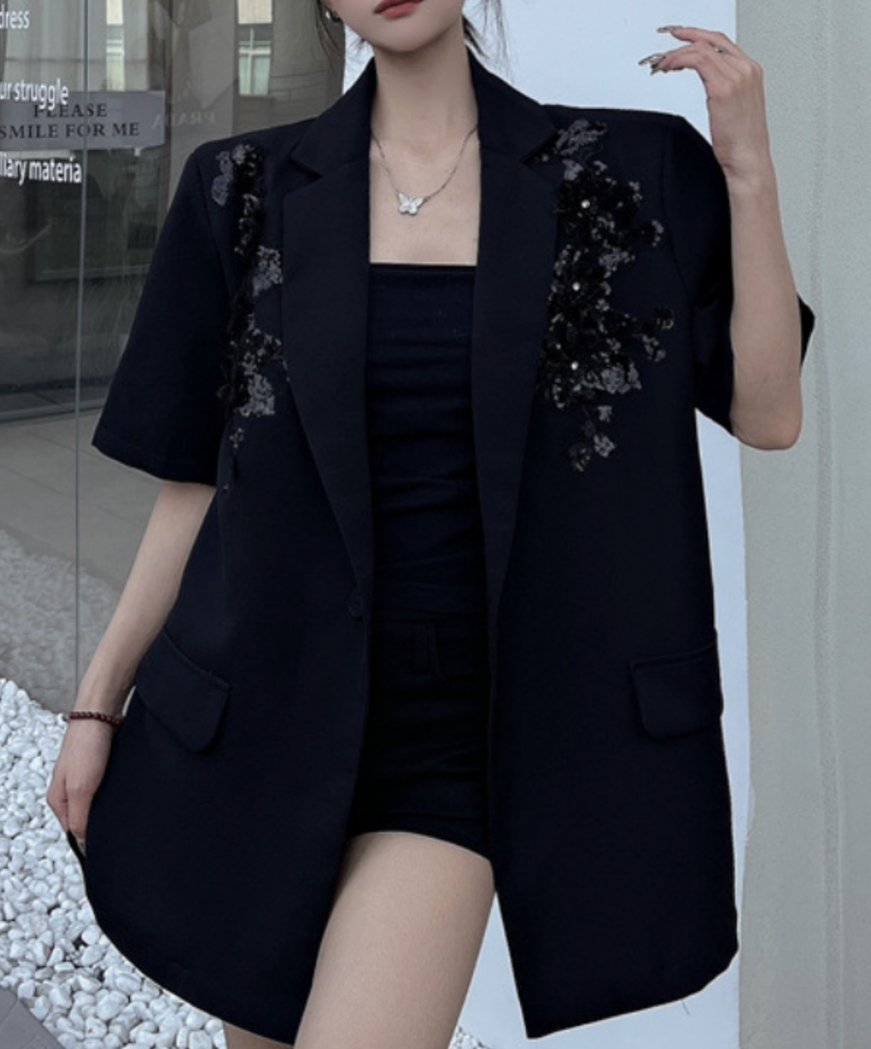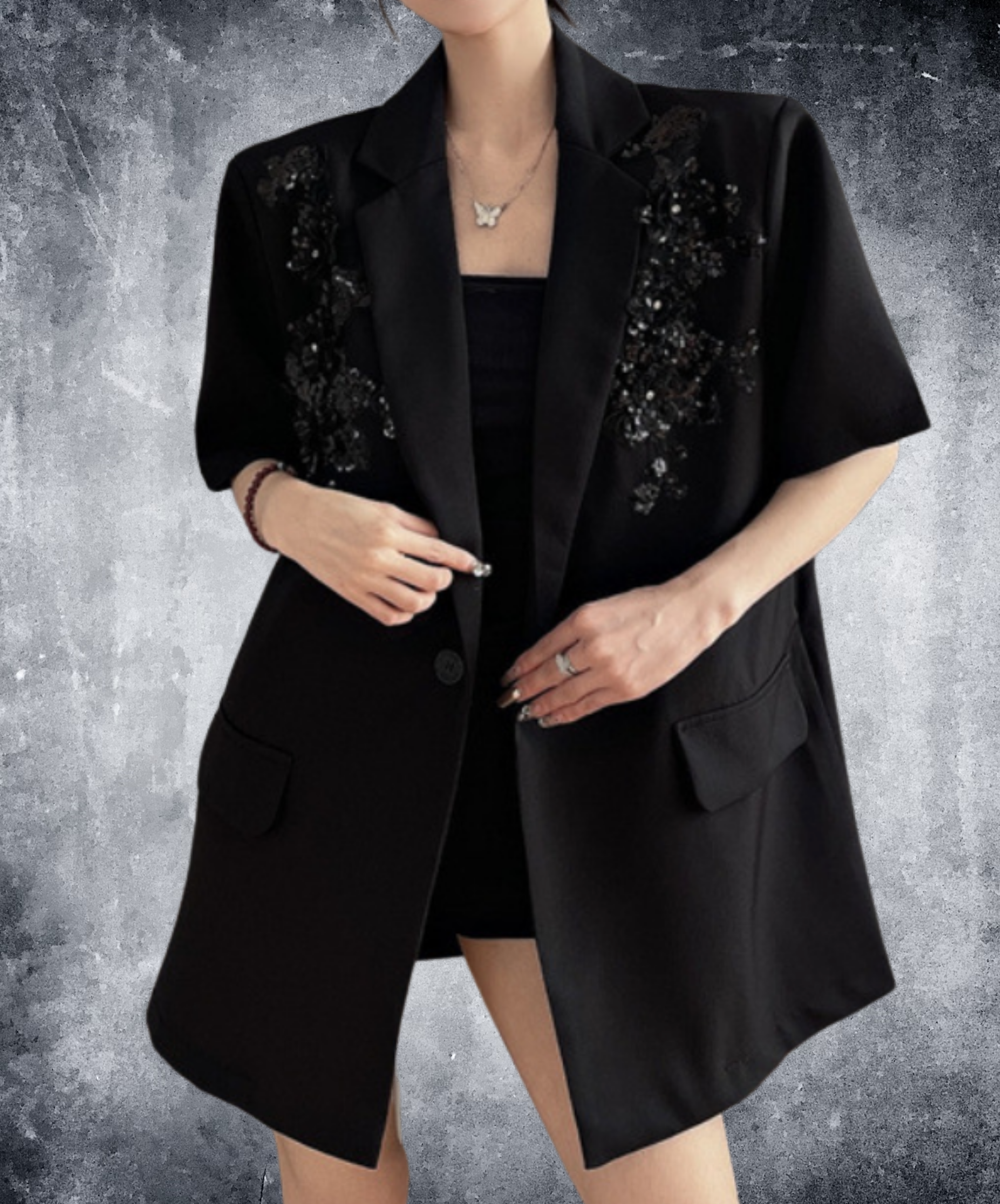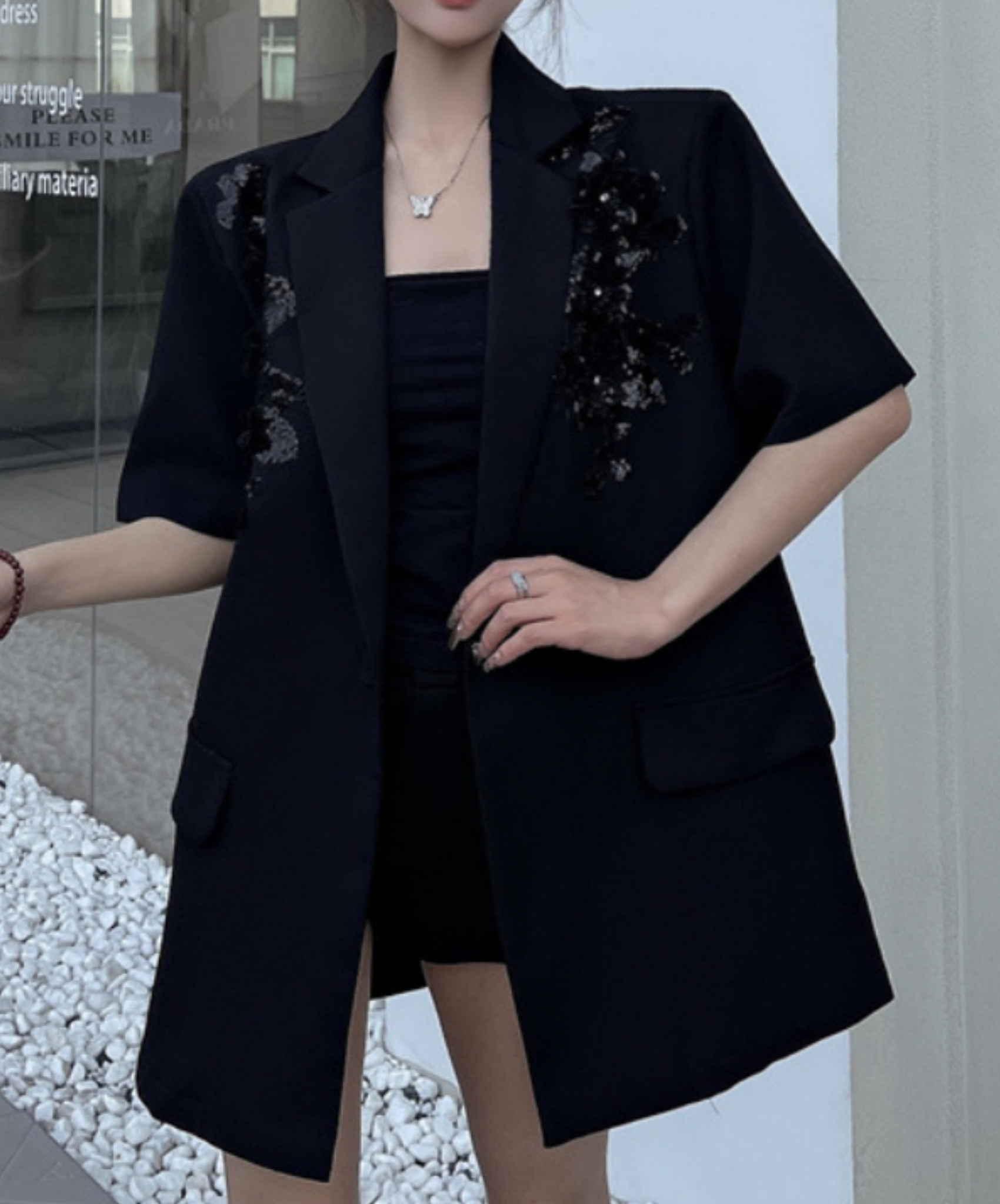 sequin embroidery short sleeve jacket EN2228
