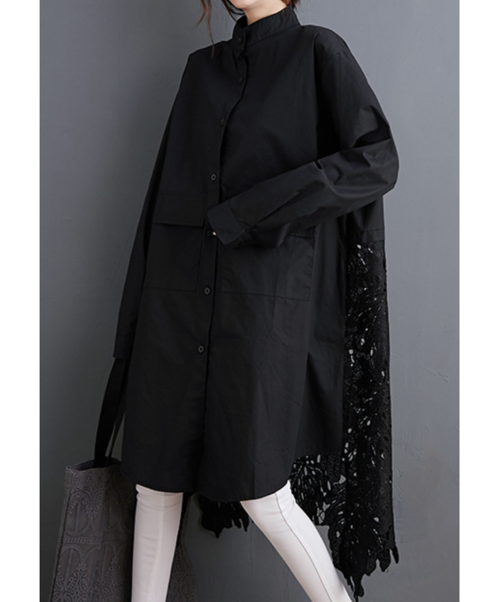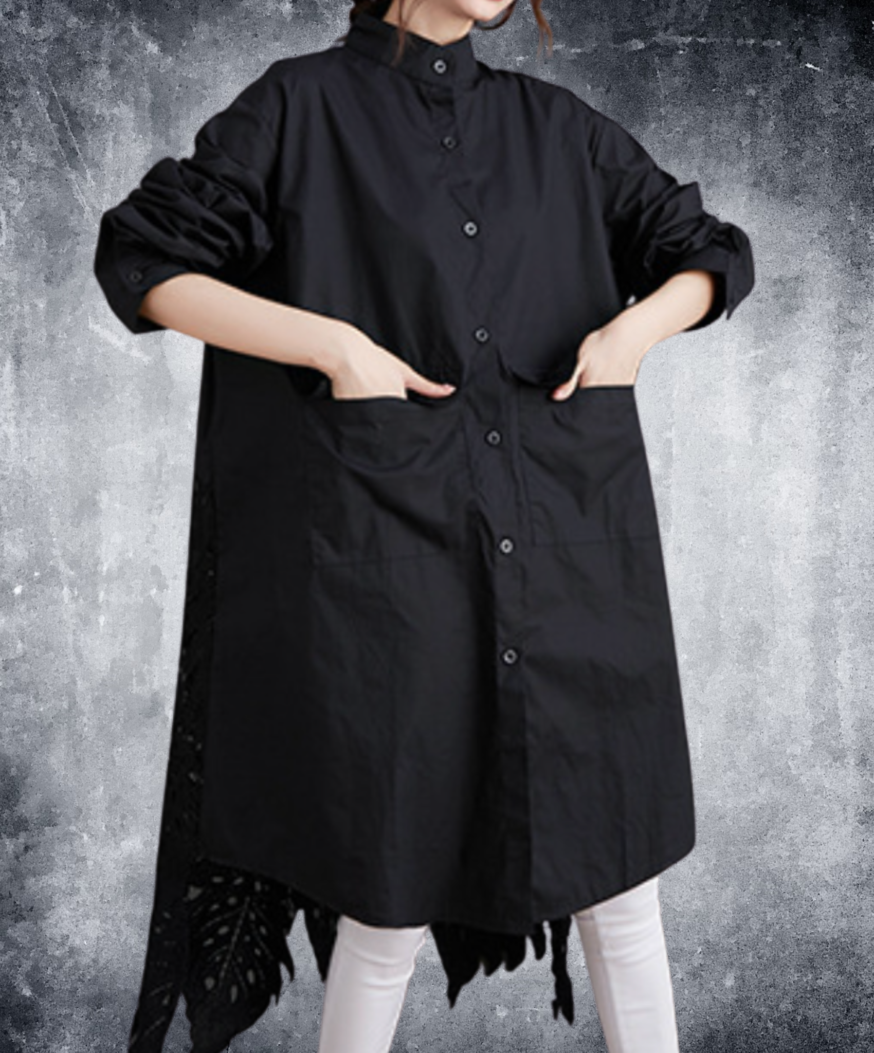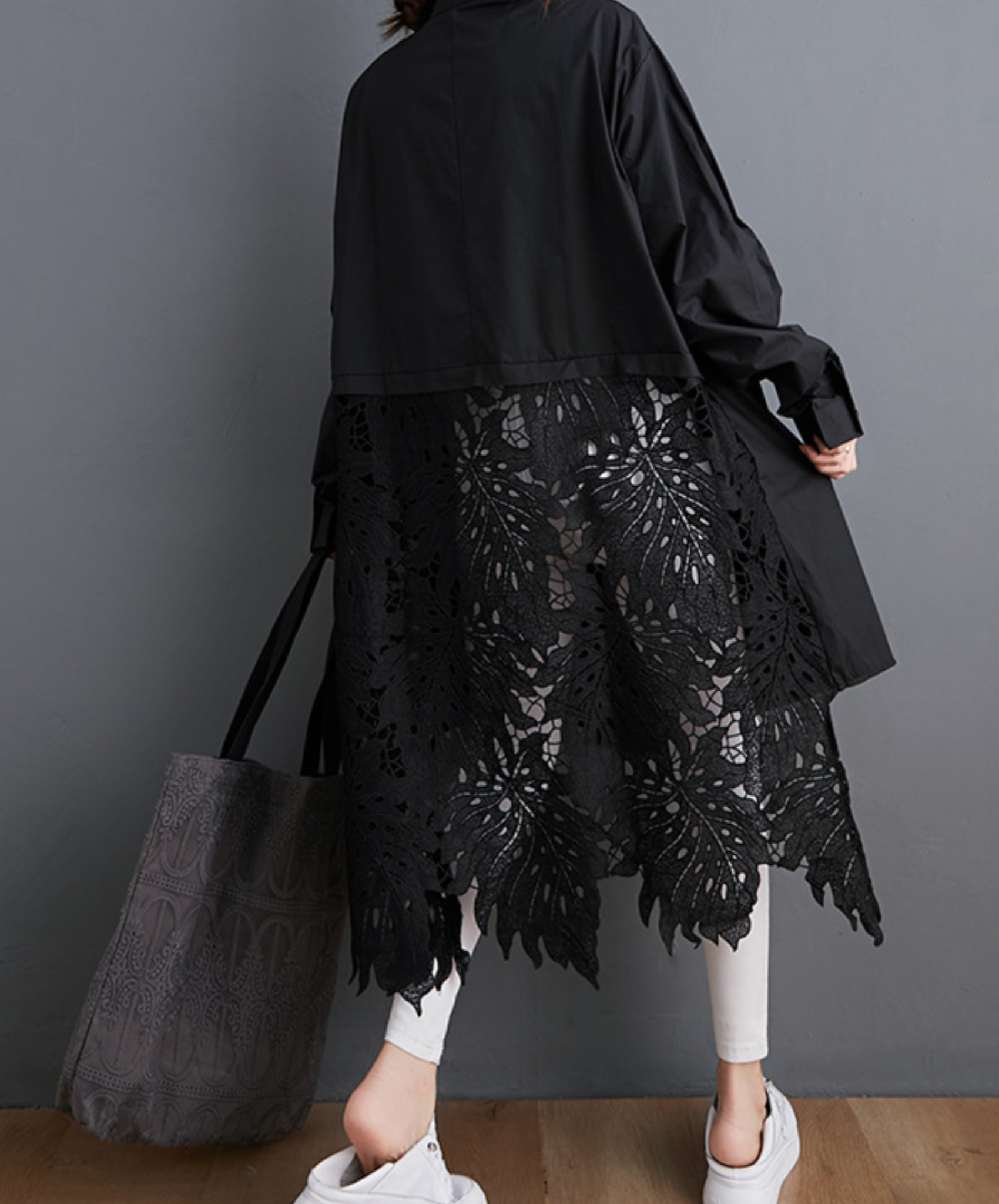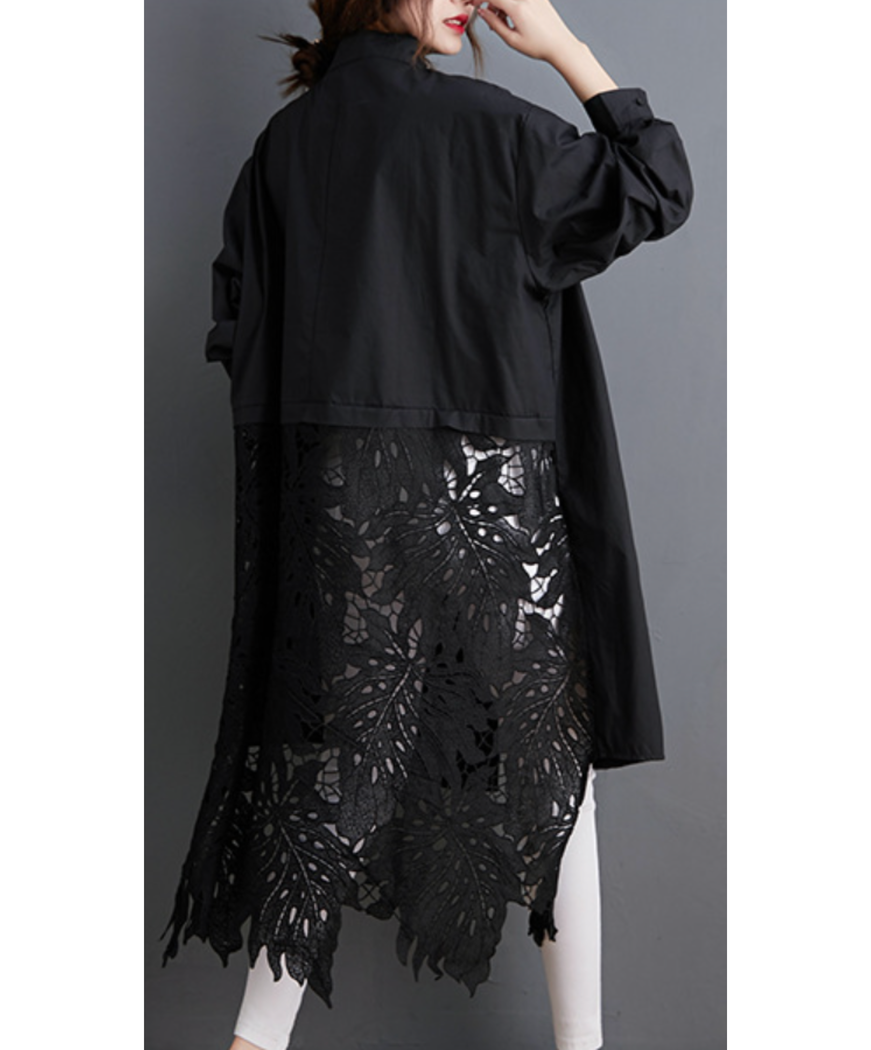 leaf motif lace fishtail long shirt EN2294