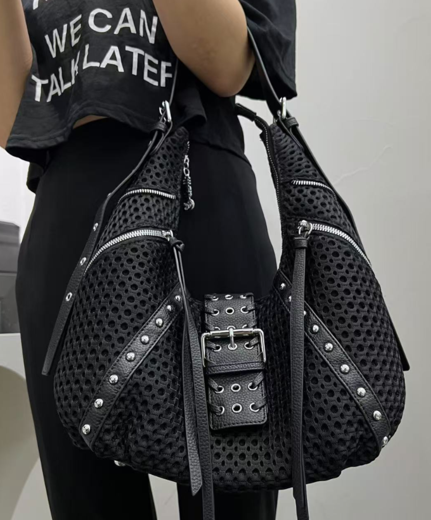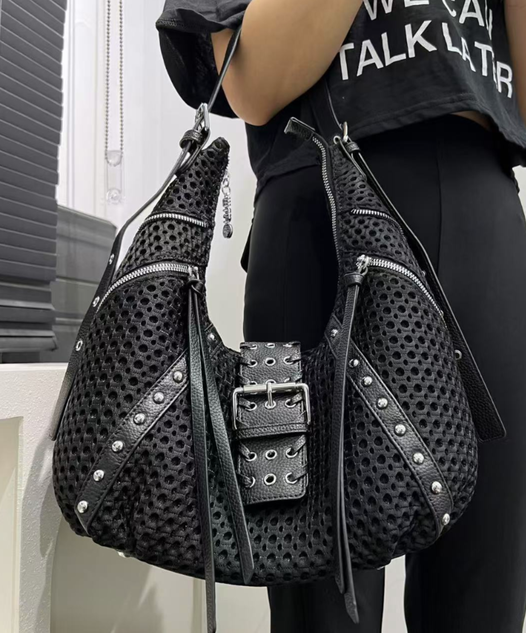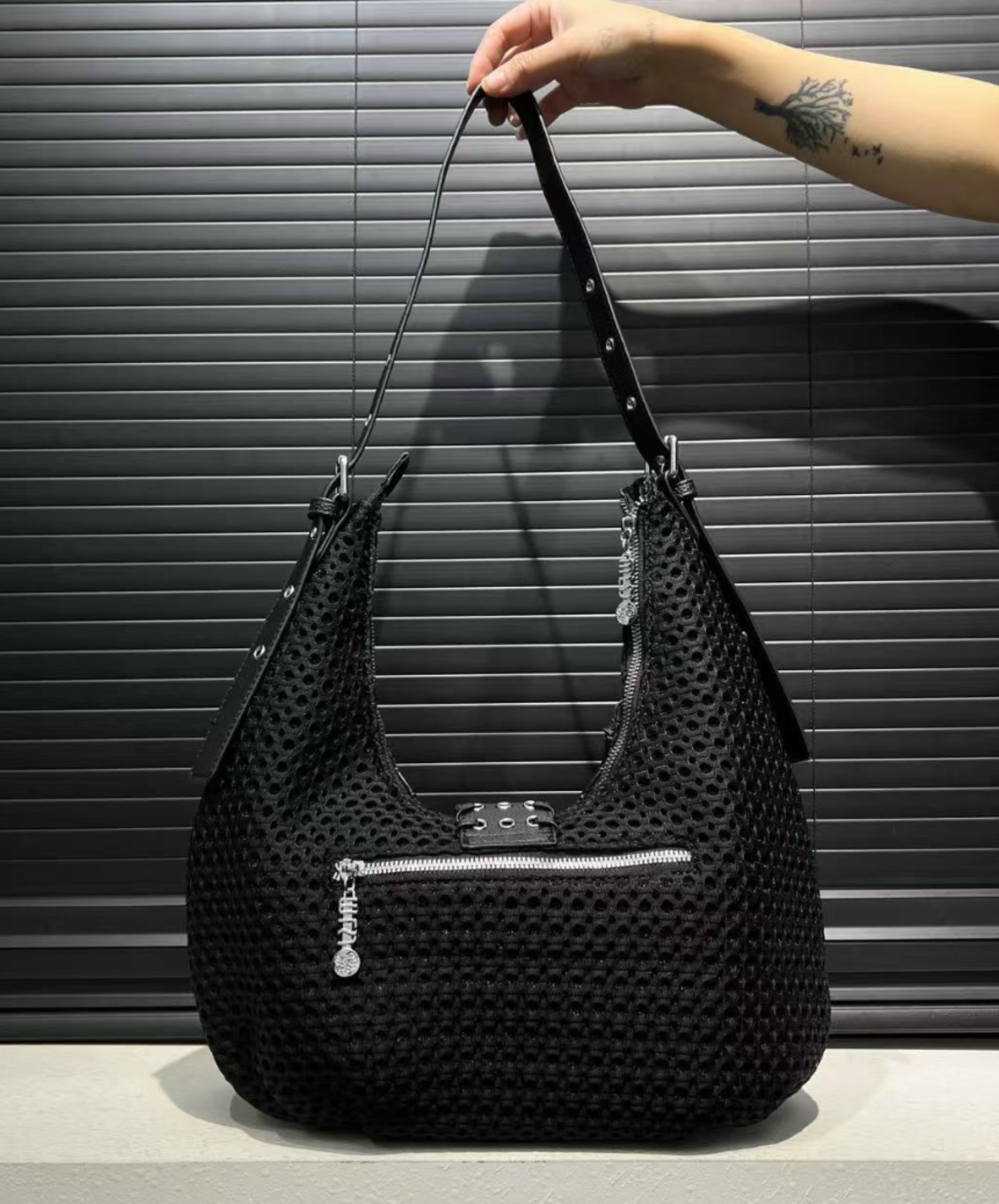 ・メッシュ素材をメインに作成された珍しいデザインのショルダーバッグ。