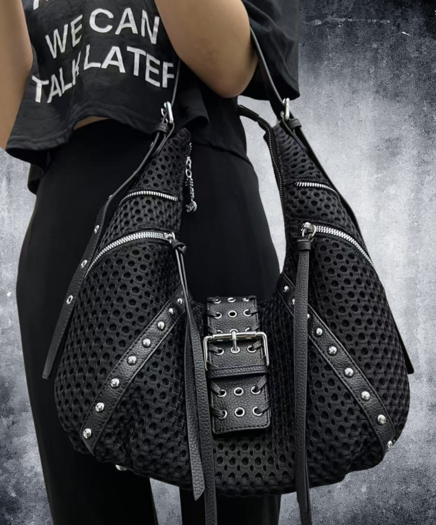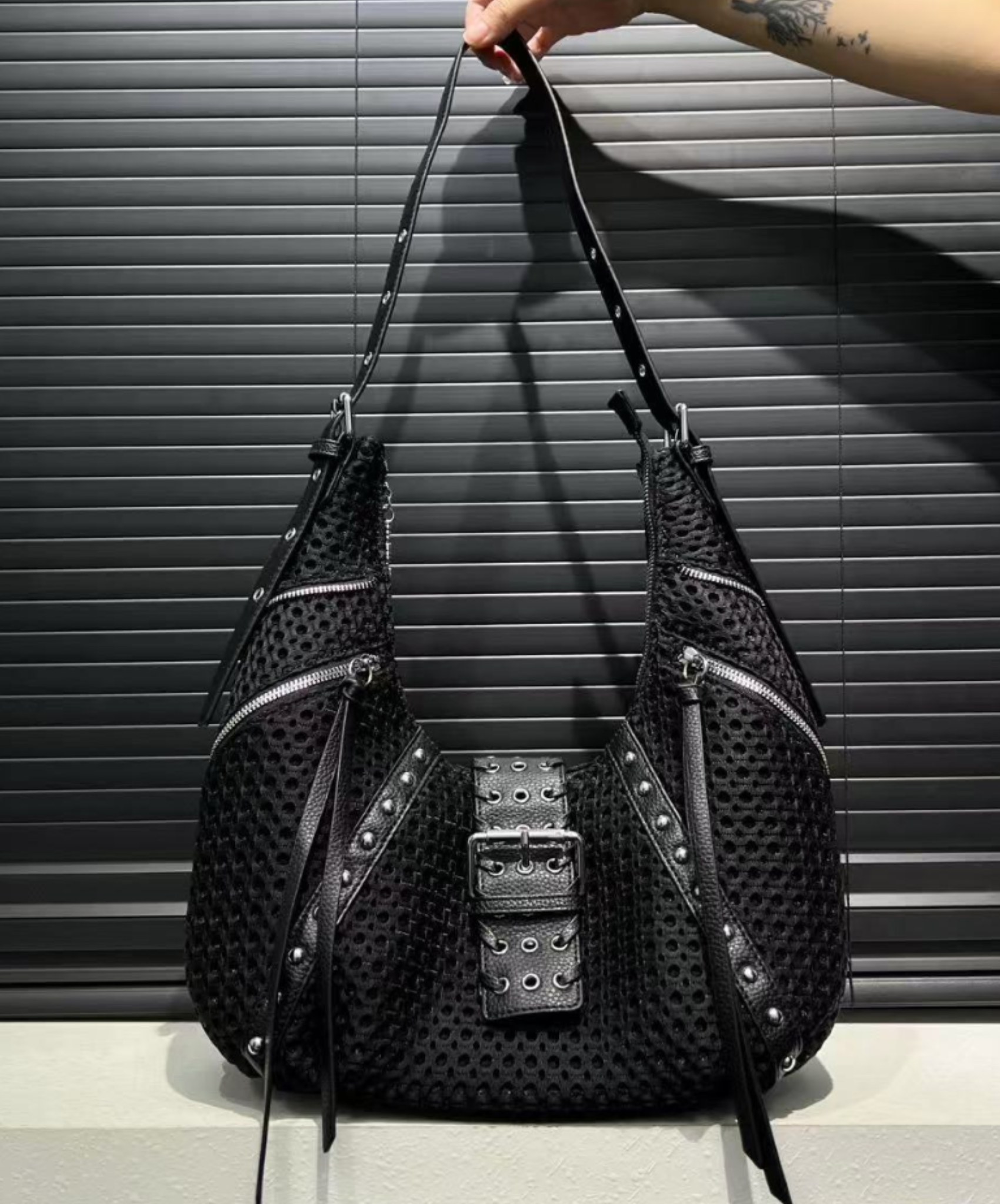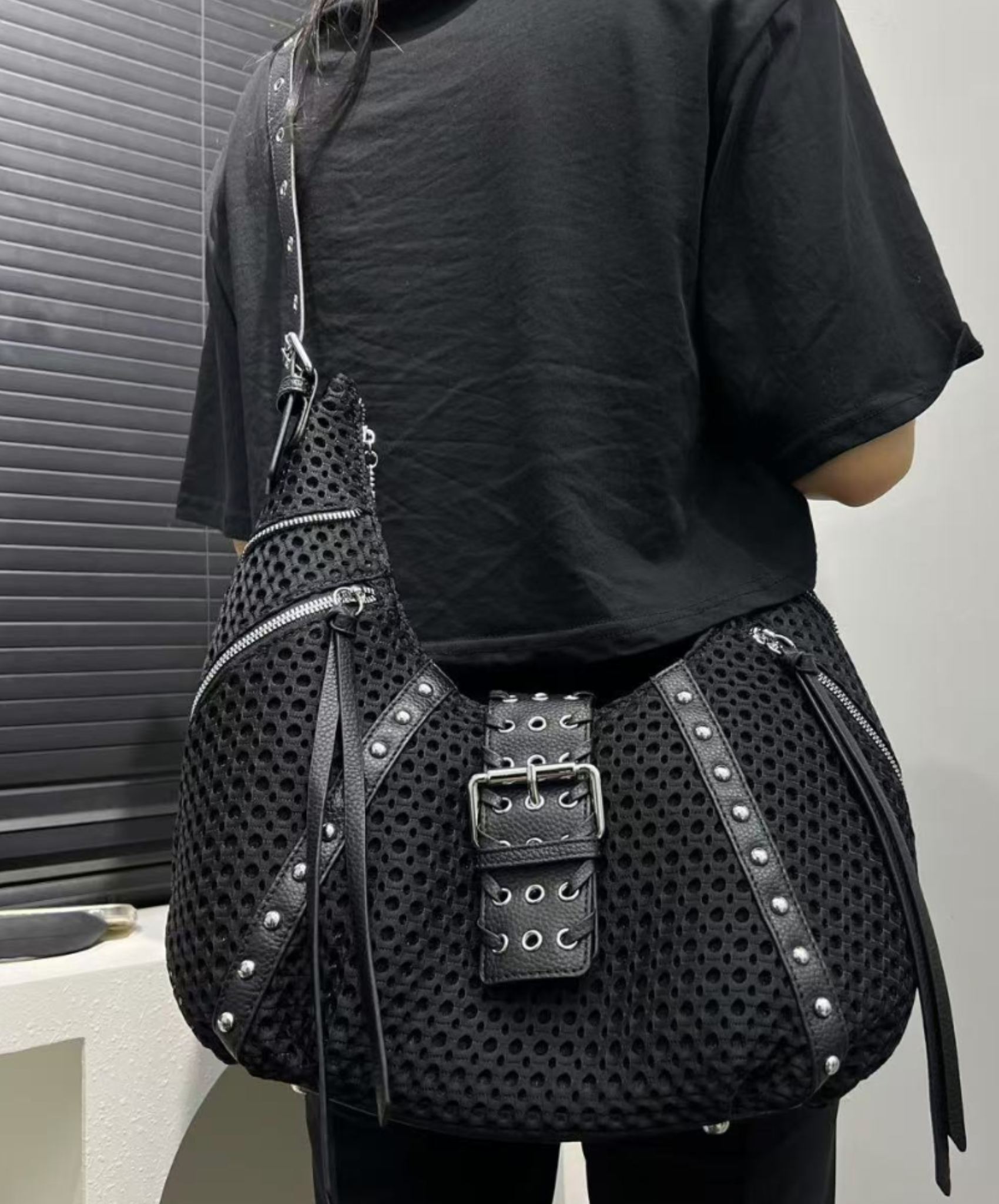 ・メッシュ素材をメインに作成された珍しいデザインのショルダーバッグ。