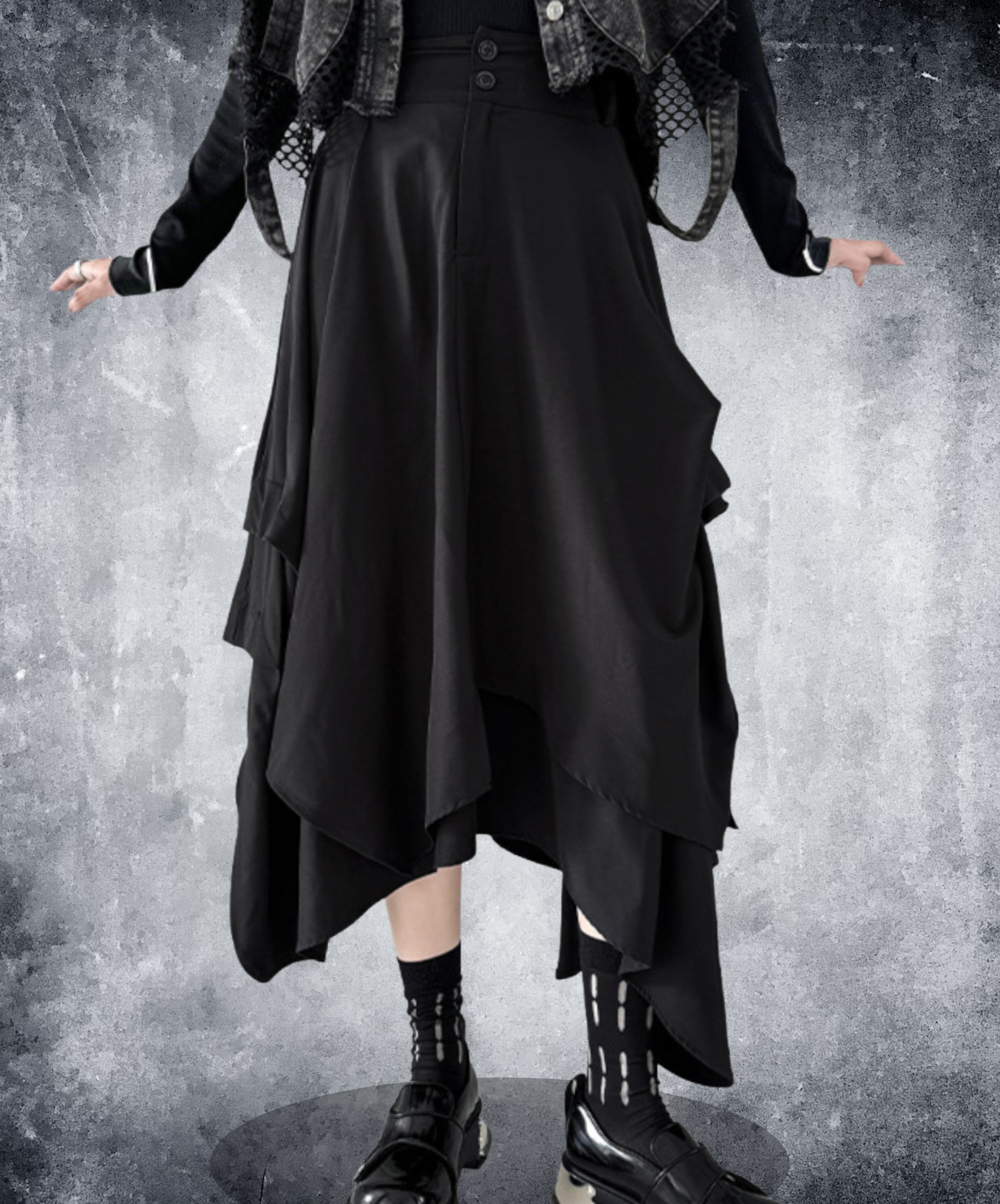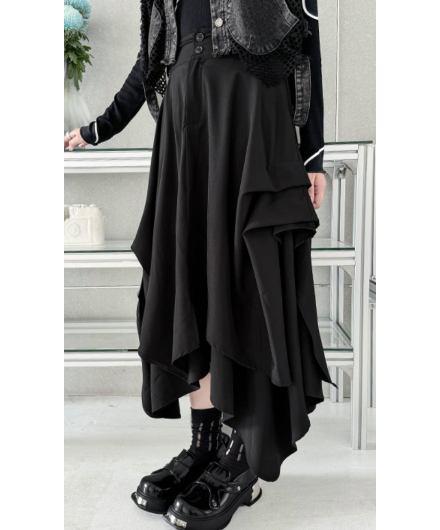 dark asymmetric drape buttons skirt EN2330