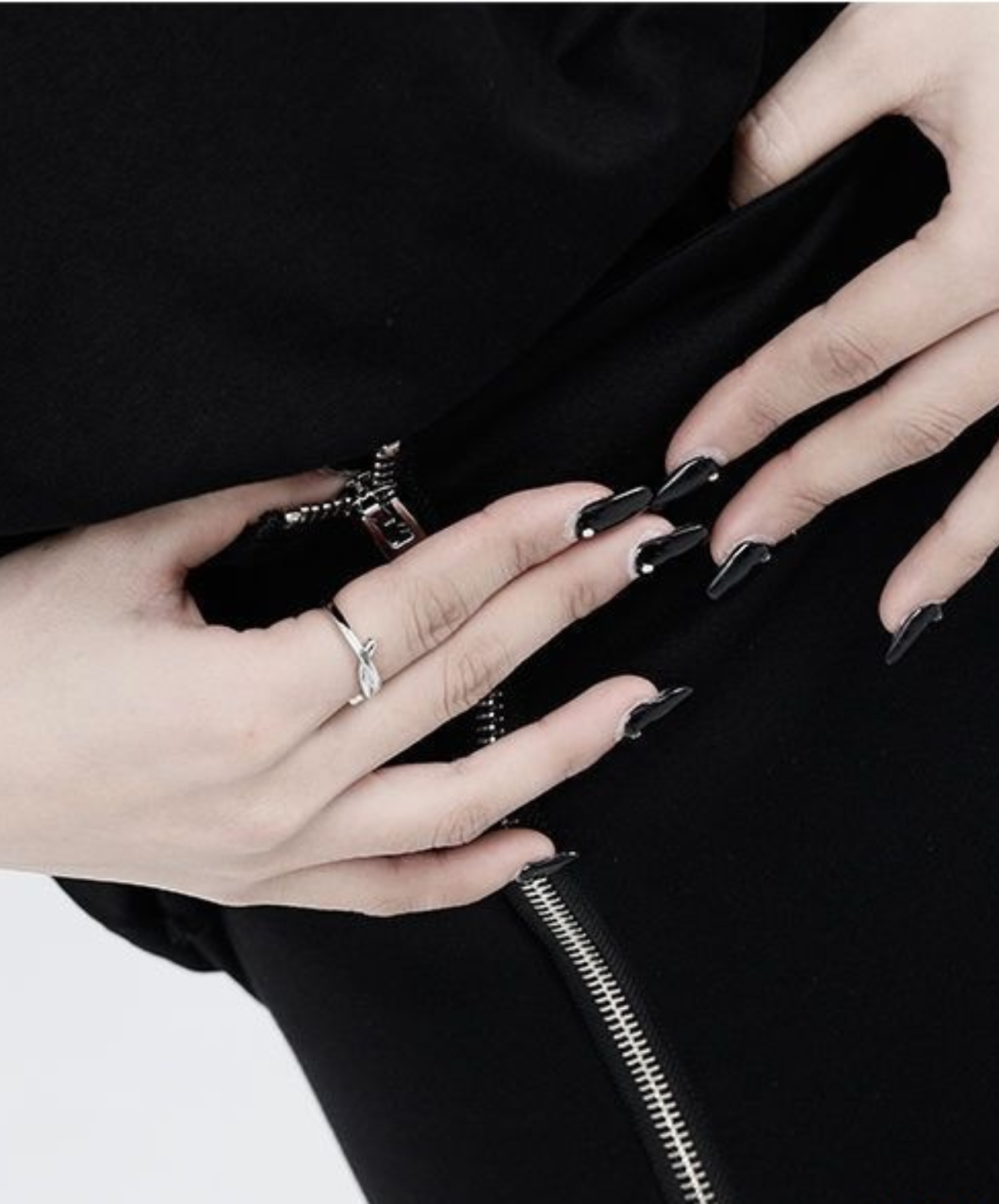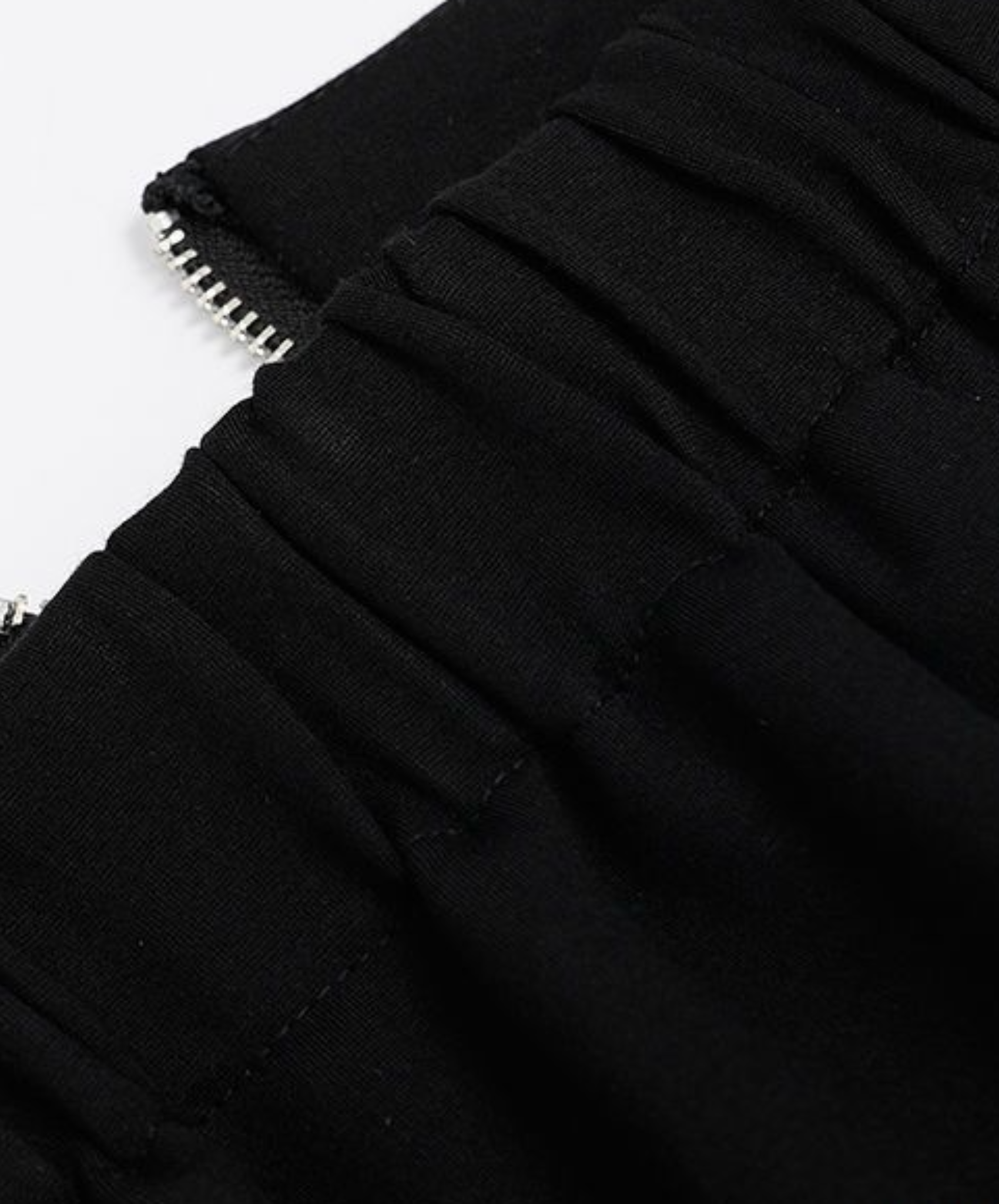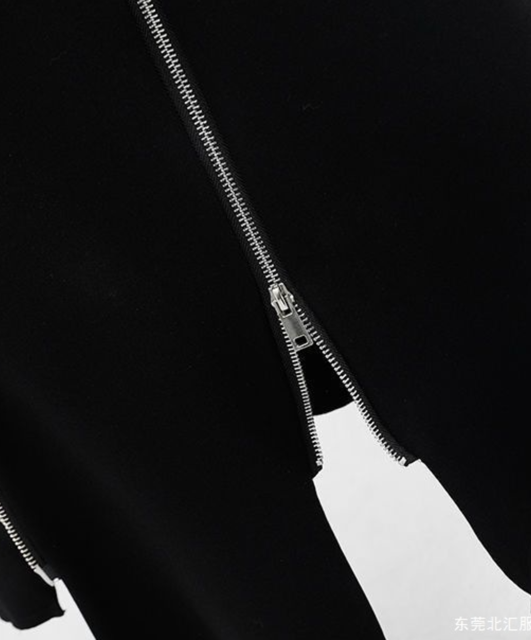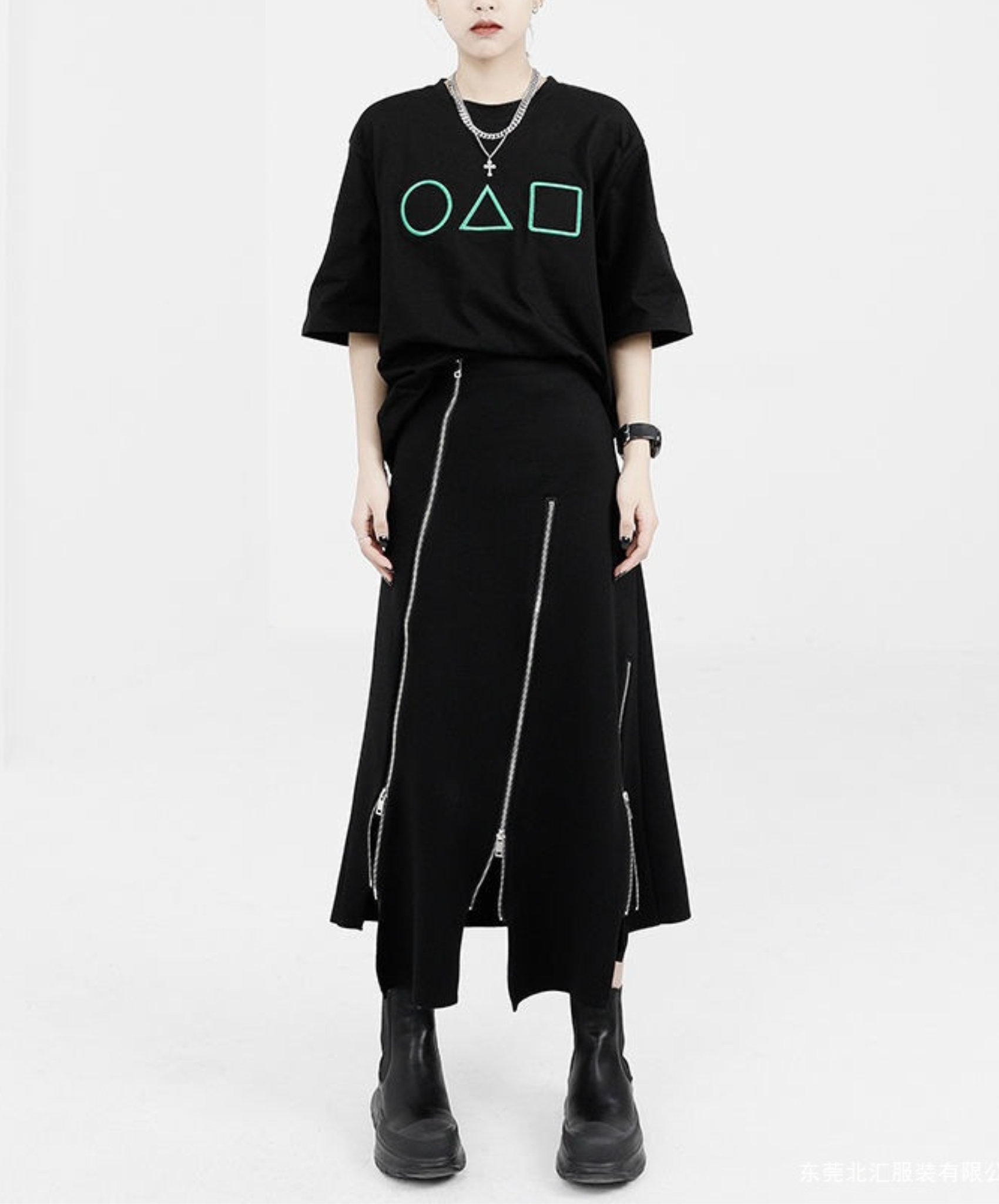 ・イレギュラーなカッティングとファスナー装飾が個性的なロングスカート。