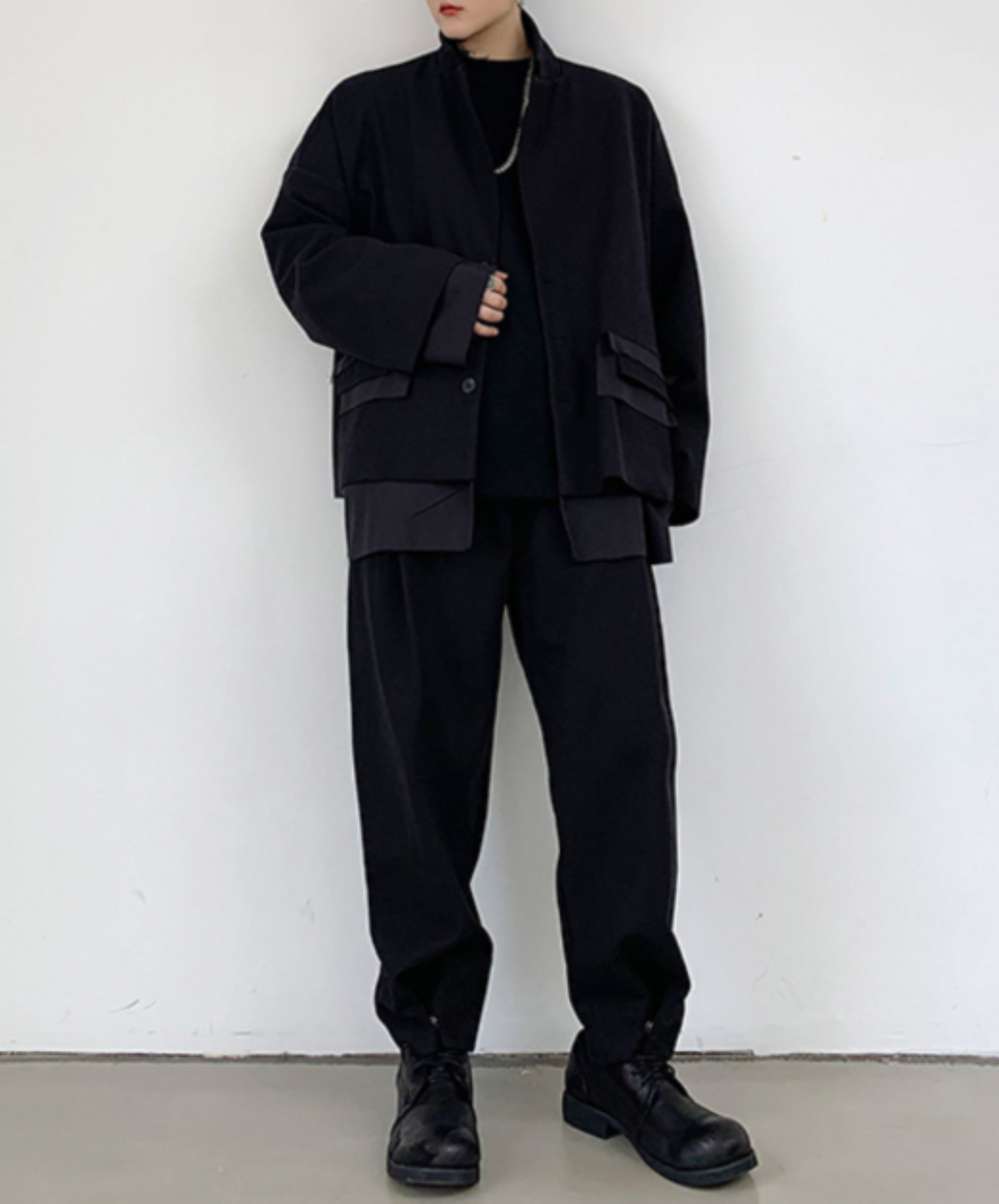 【style60】dark mode outfit set EN1863(jacket + shirt + pants set)