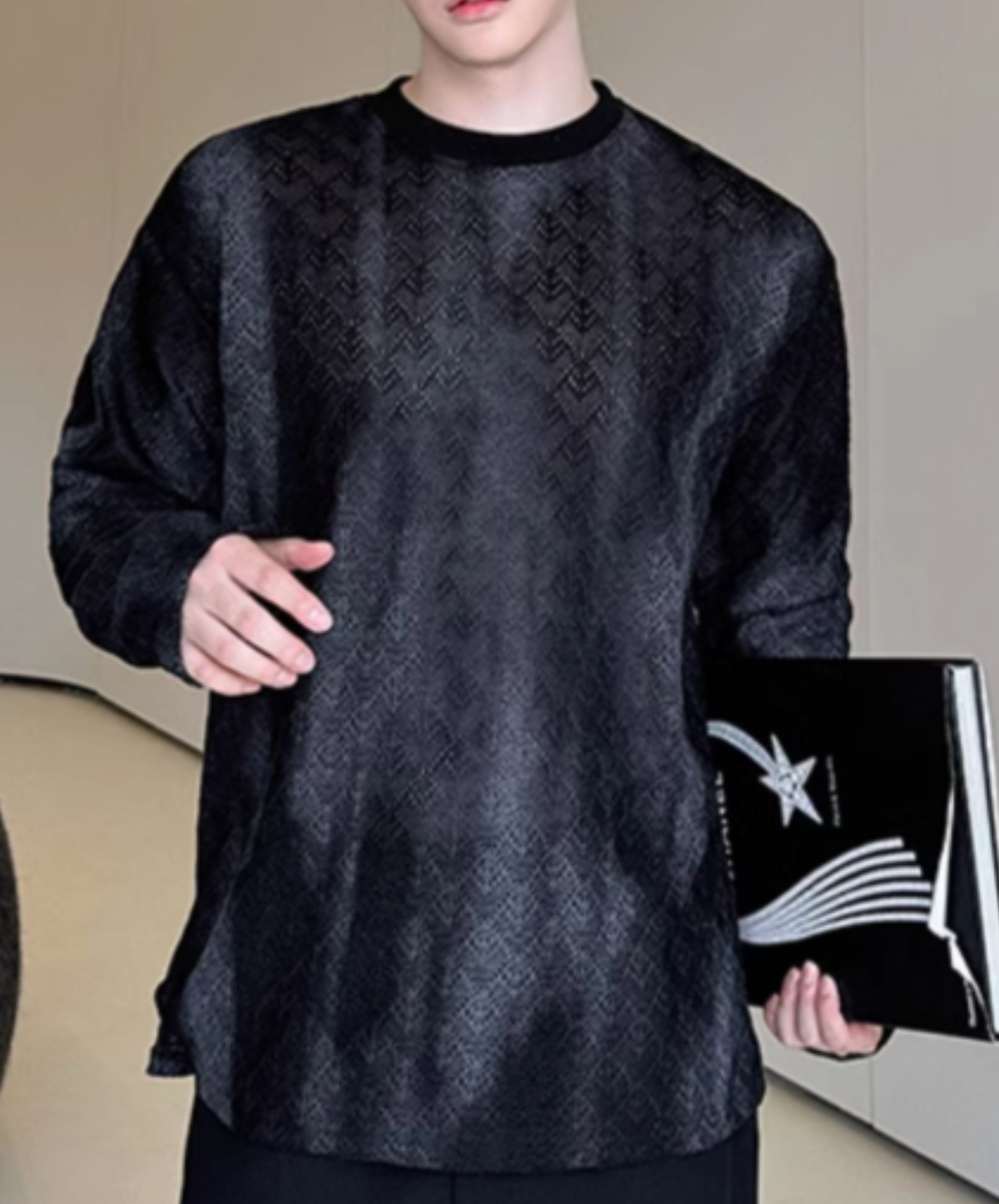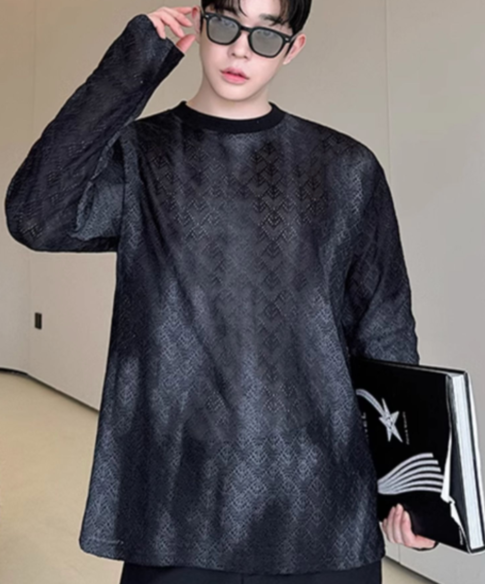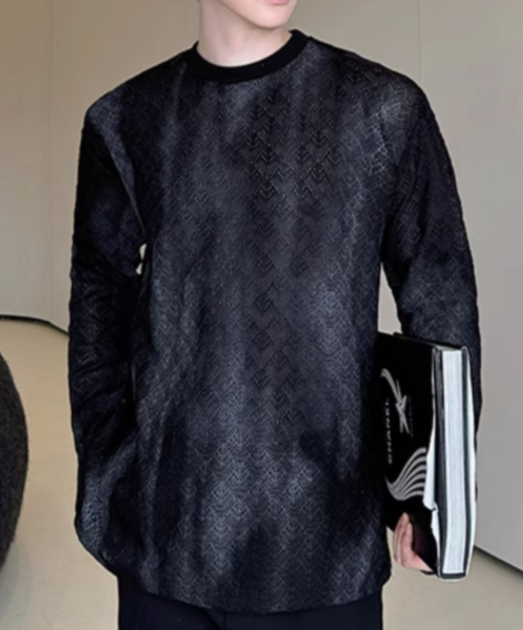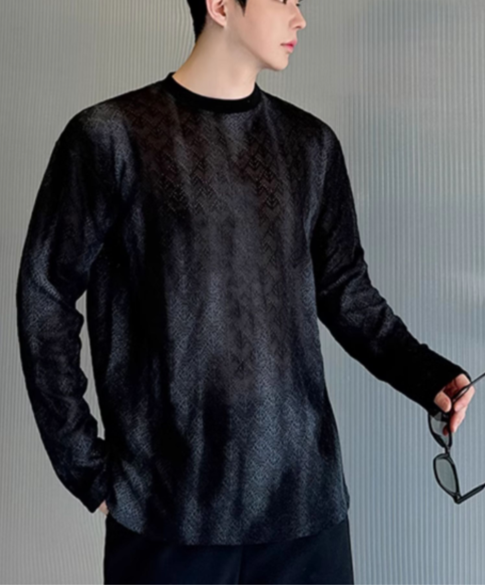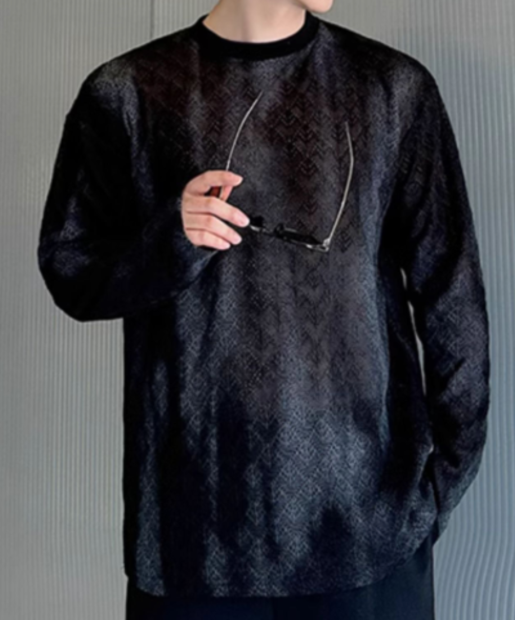 ・妖艶さを感じさせる透け感が魅力的なロングTシャツ。