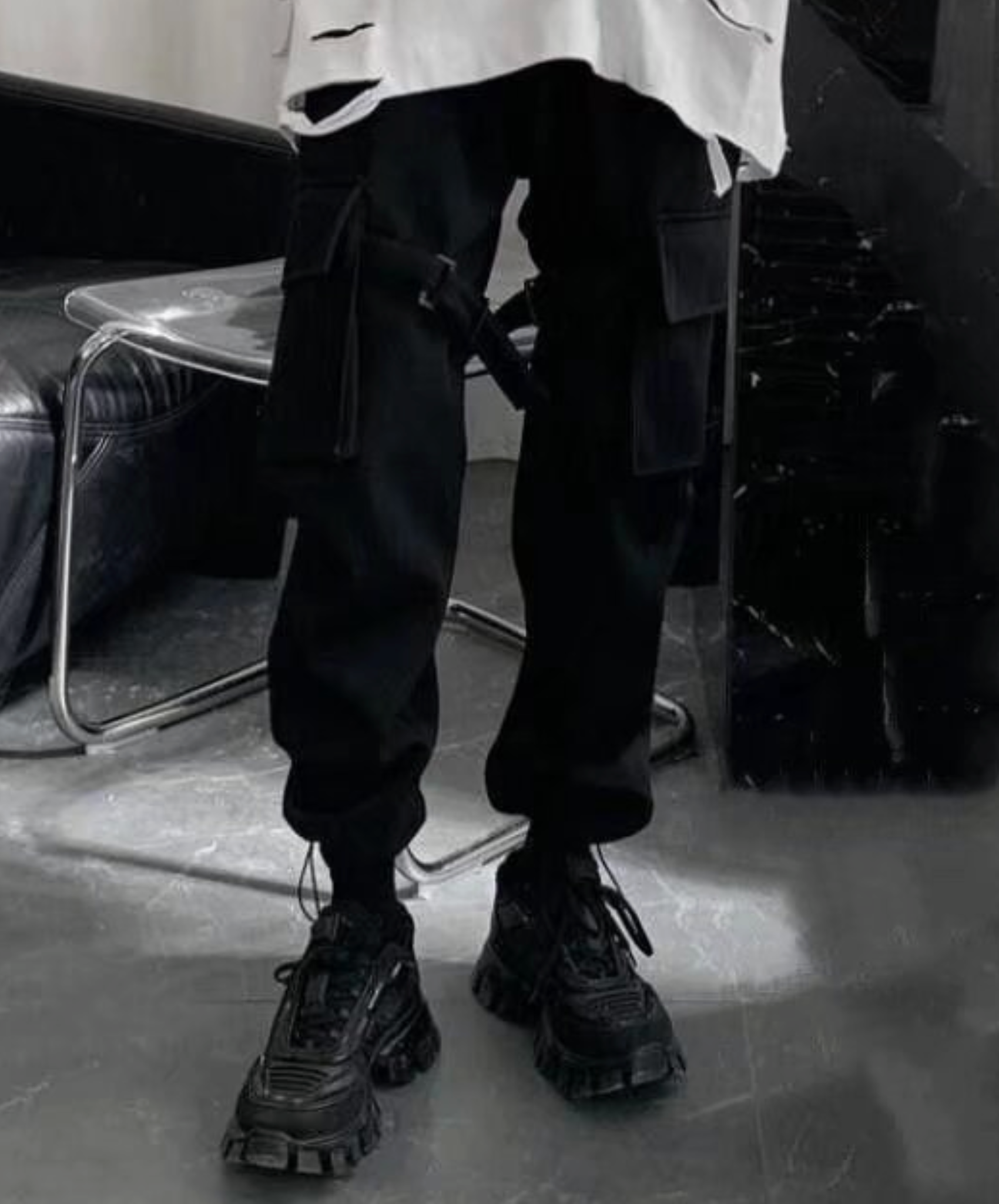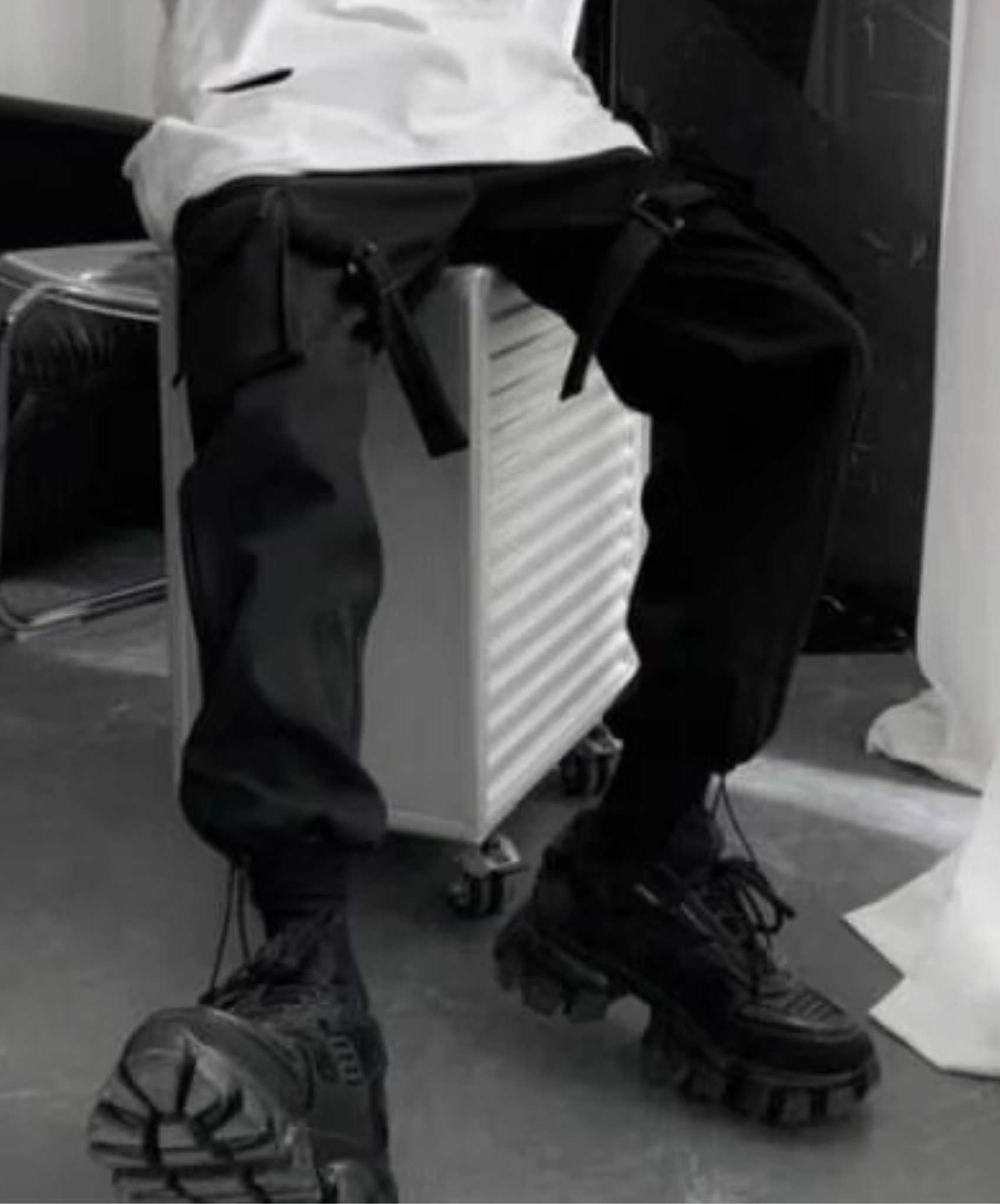 ・ドローストリングで裾が絞れるカーゴパンツ。