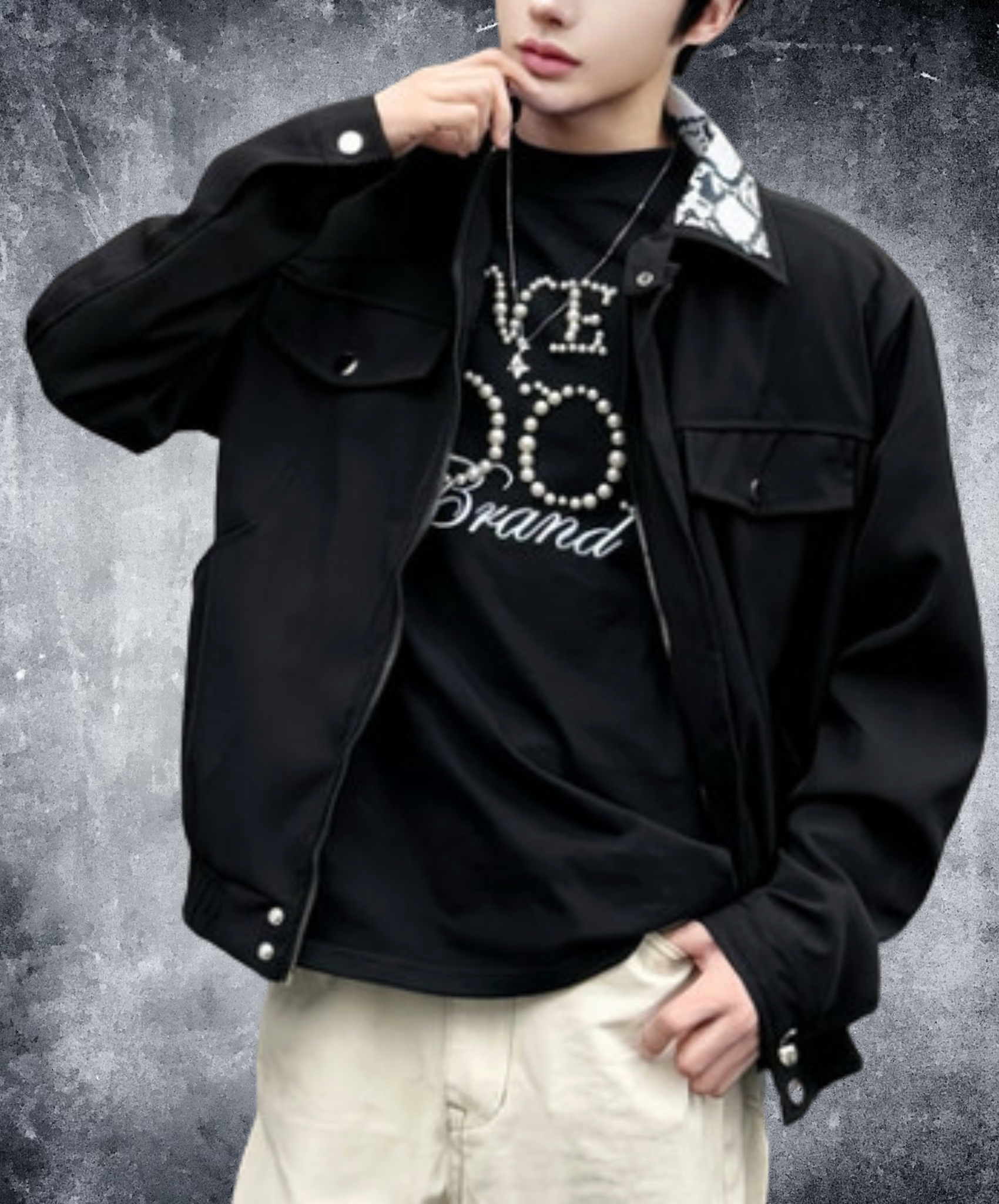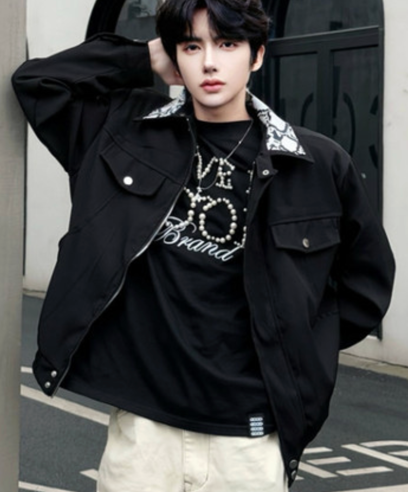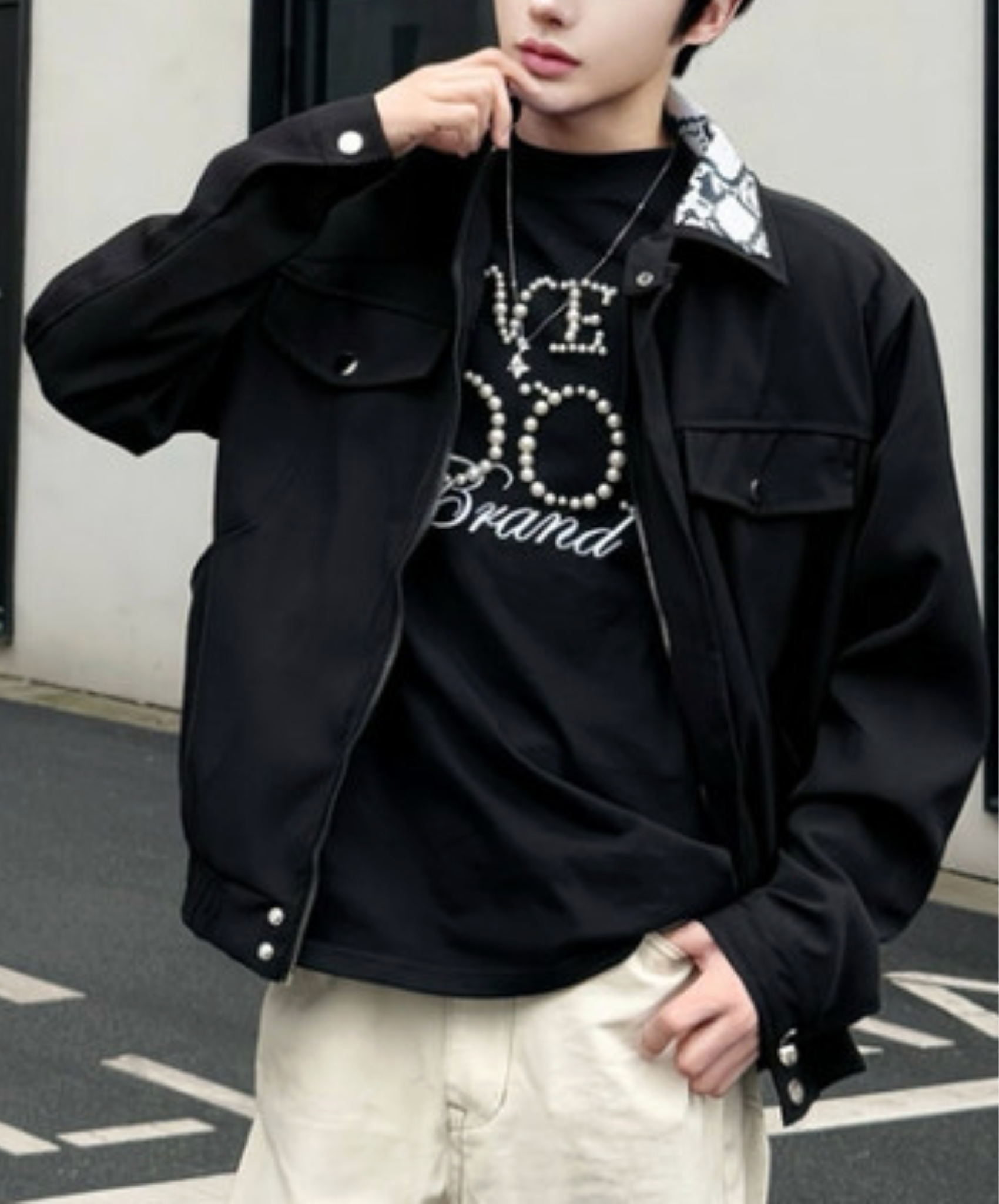 ・ポピュラーな蛇柄を取り入れたショート丈ジャケット。