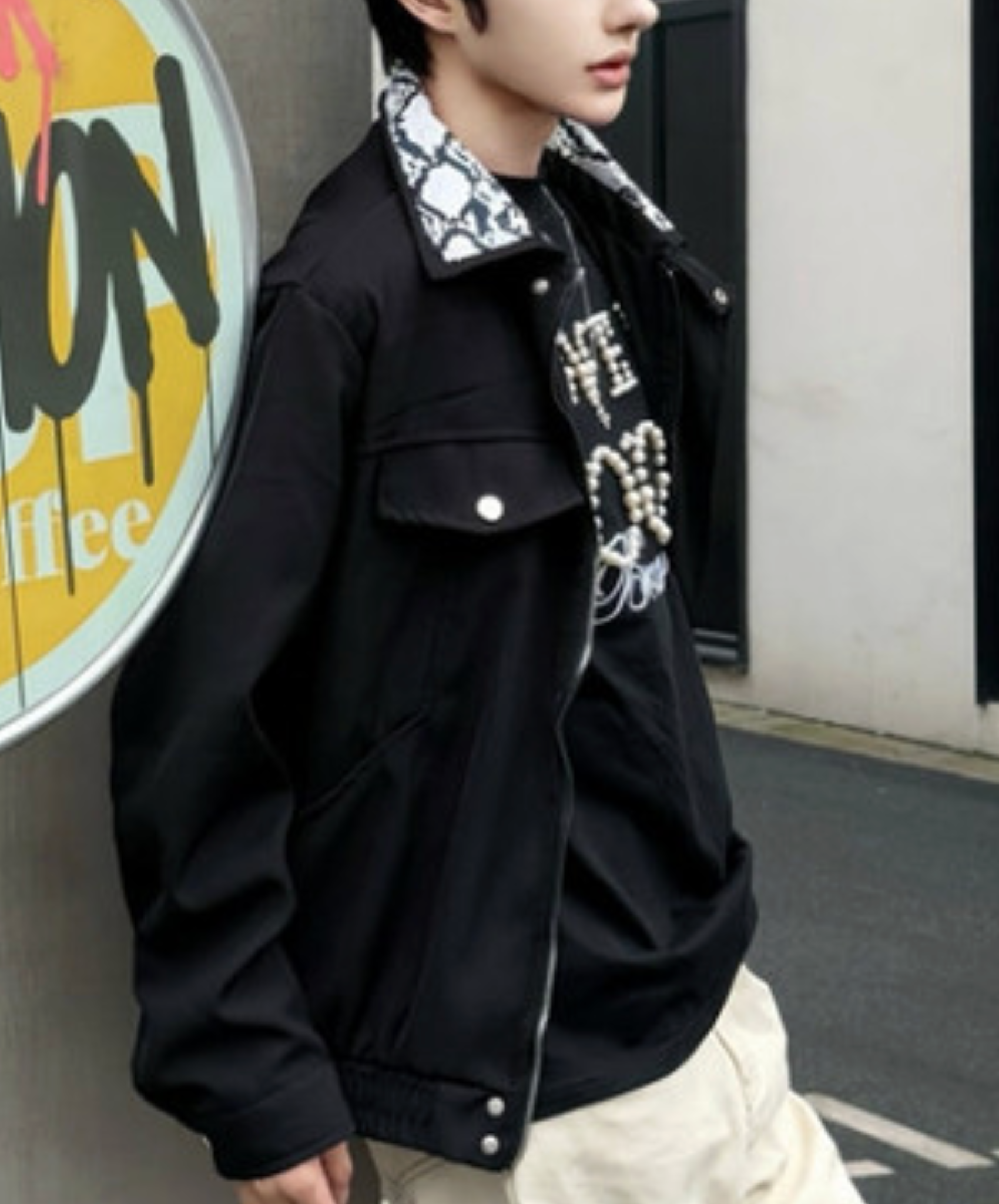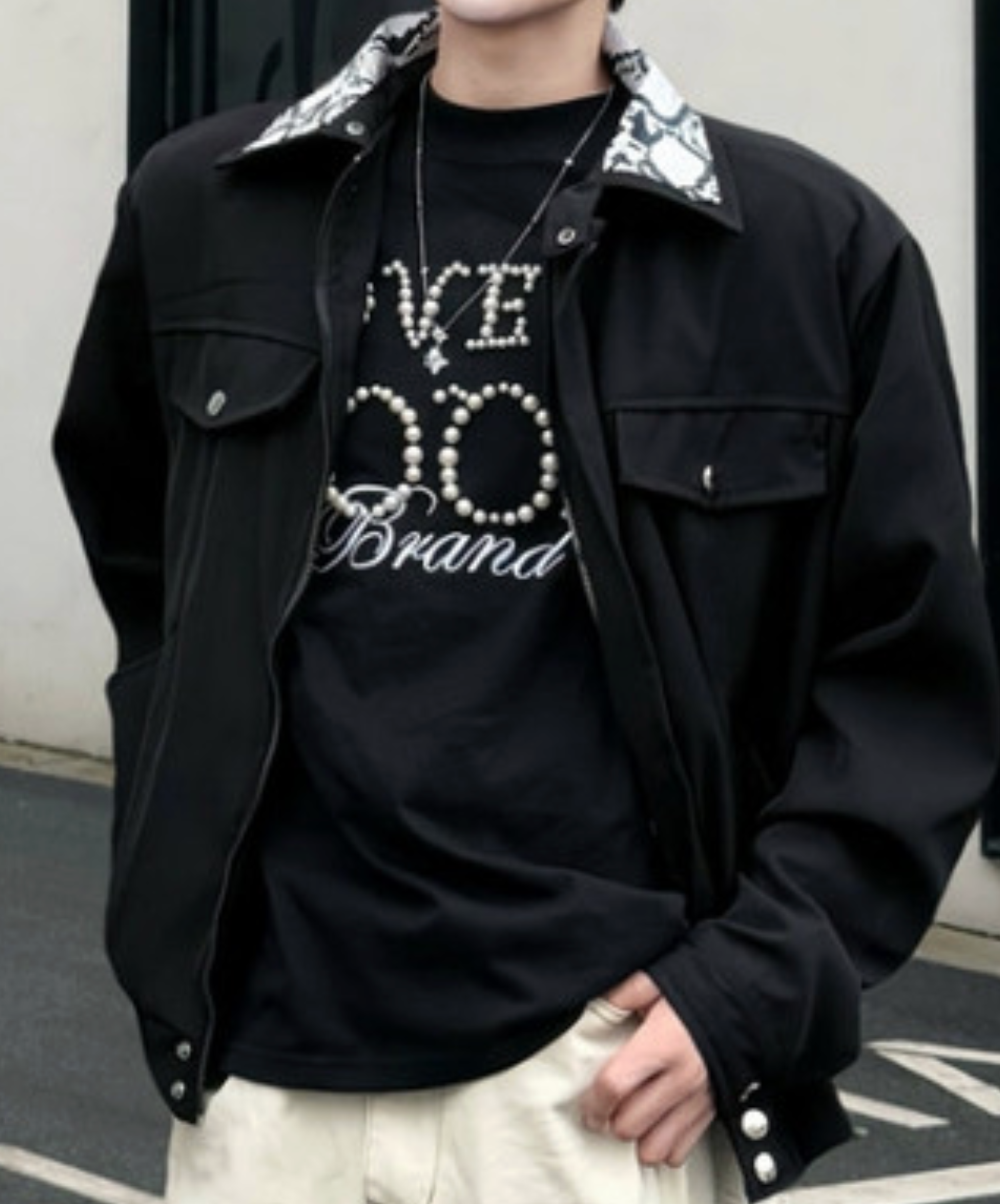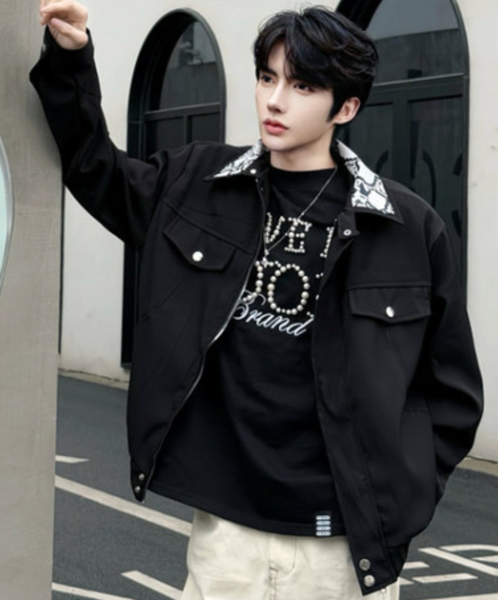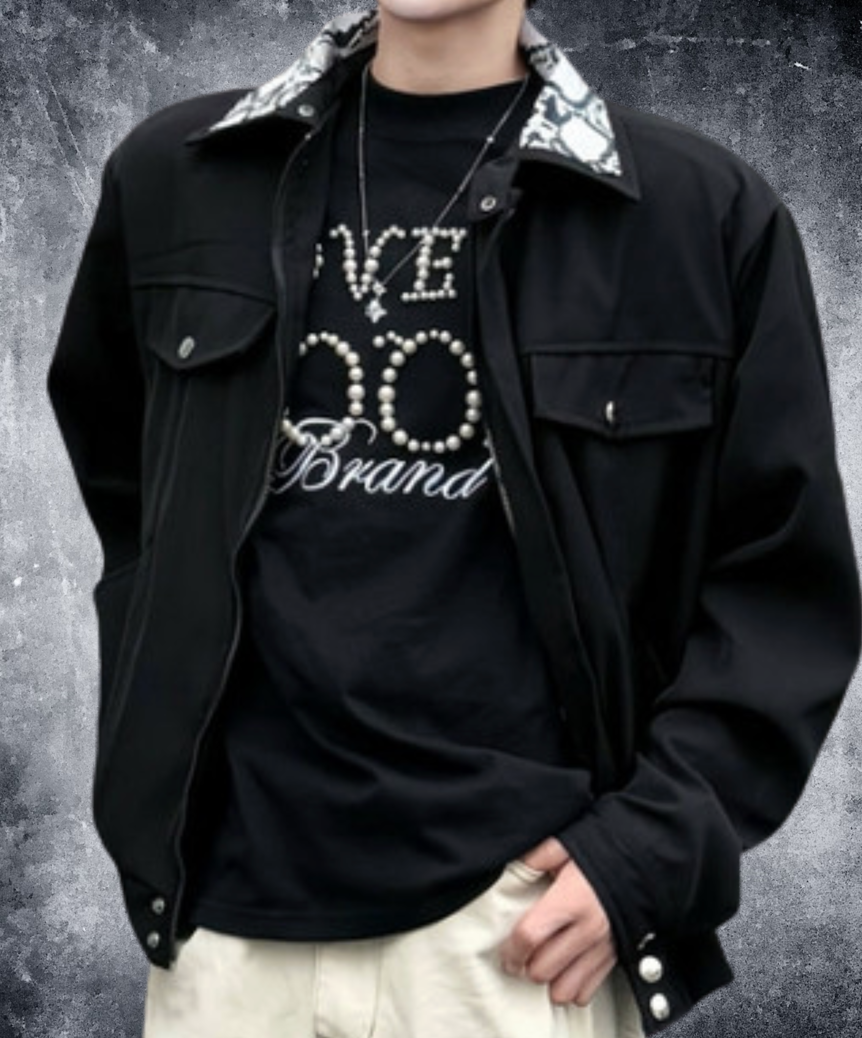 ・ポピュラーな蛇柄を取り入れたショート丈ジャケット。