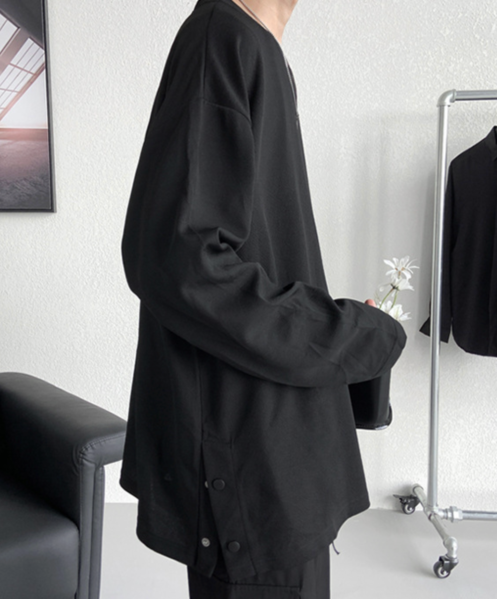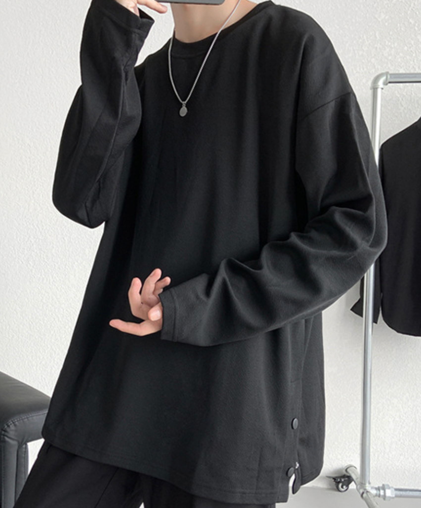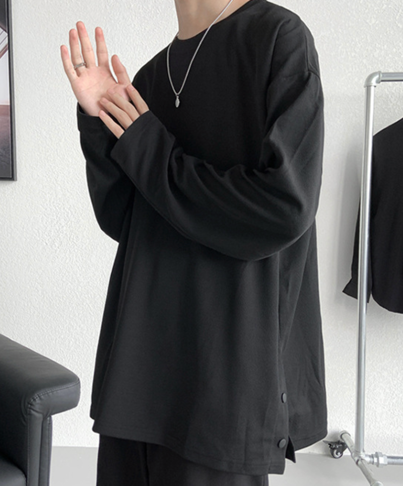 ・サイドが開閉式になっている長袖Tシャツ。