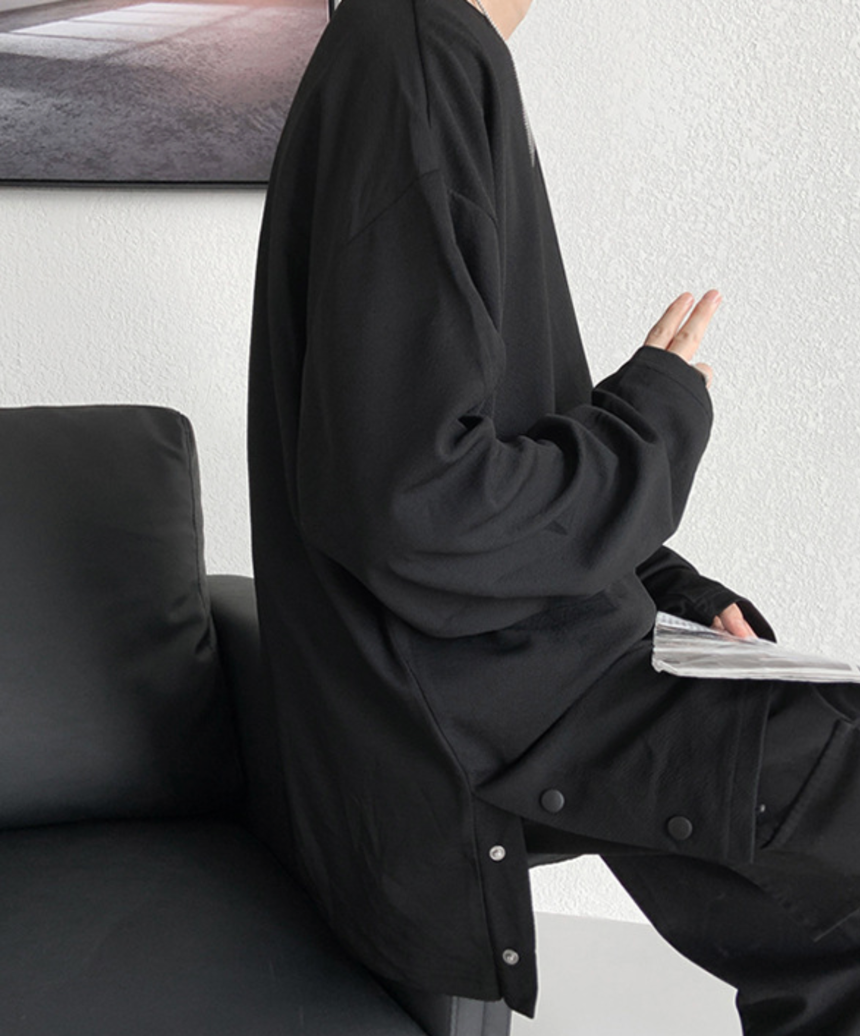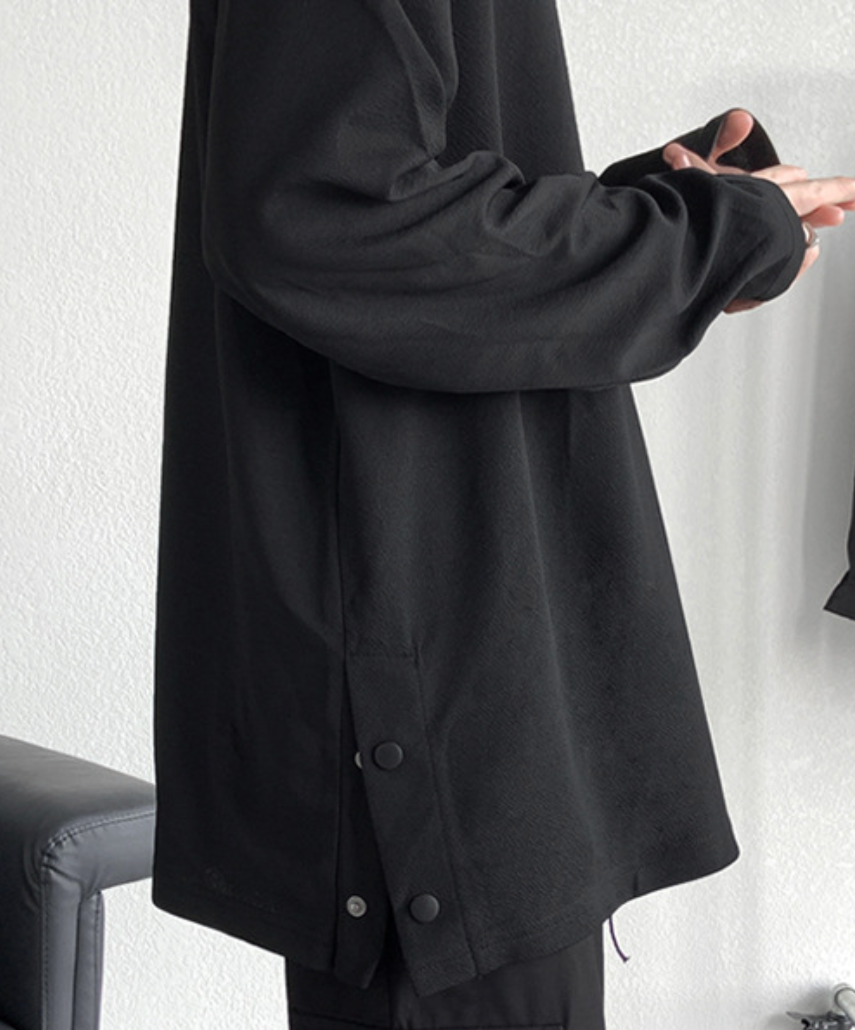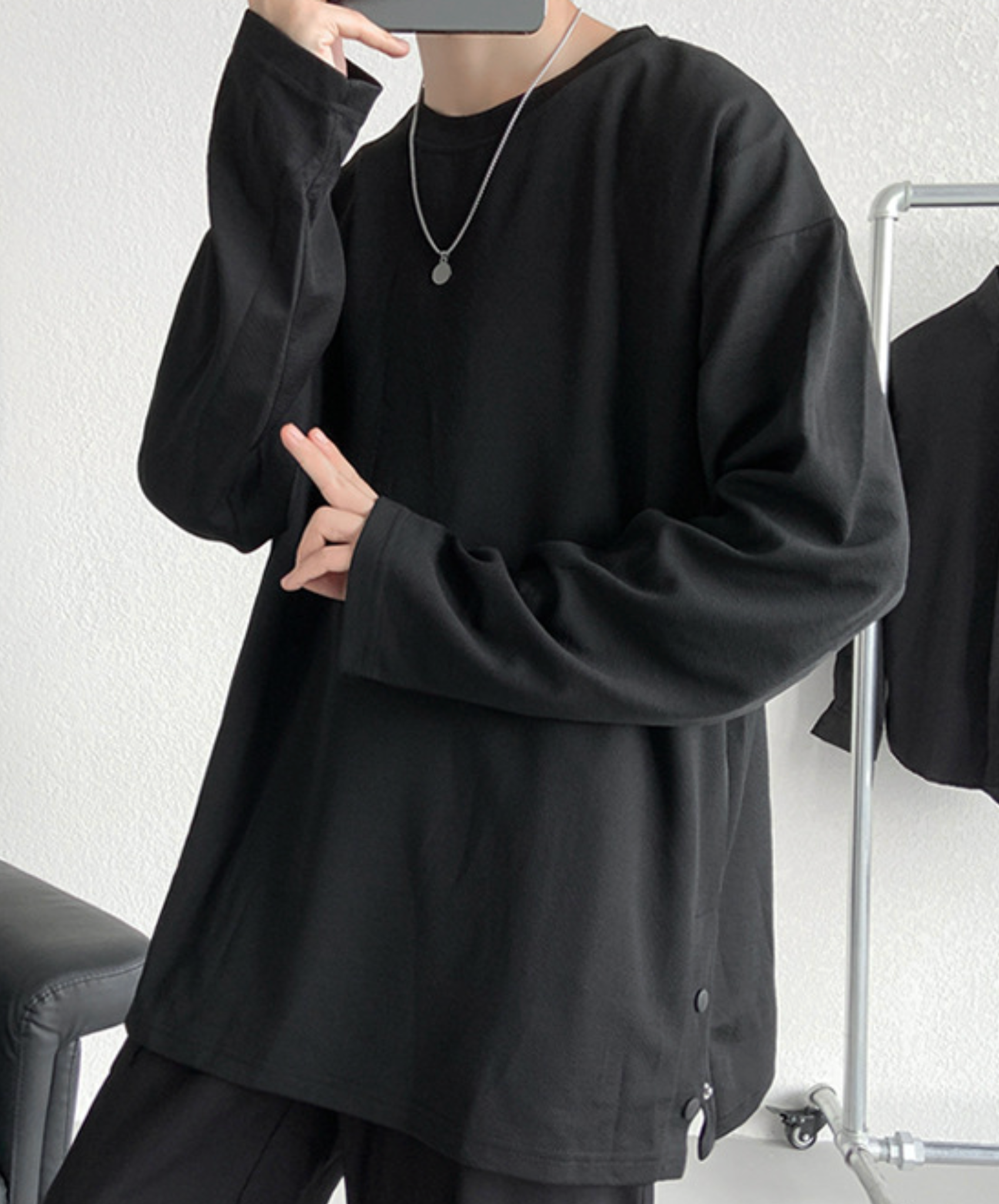 ・サイドが開閉式になっている長袖Tシャツ。