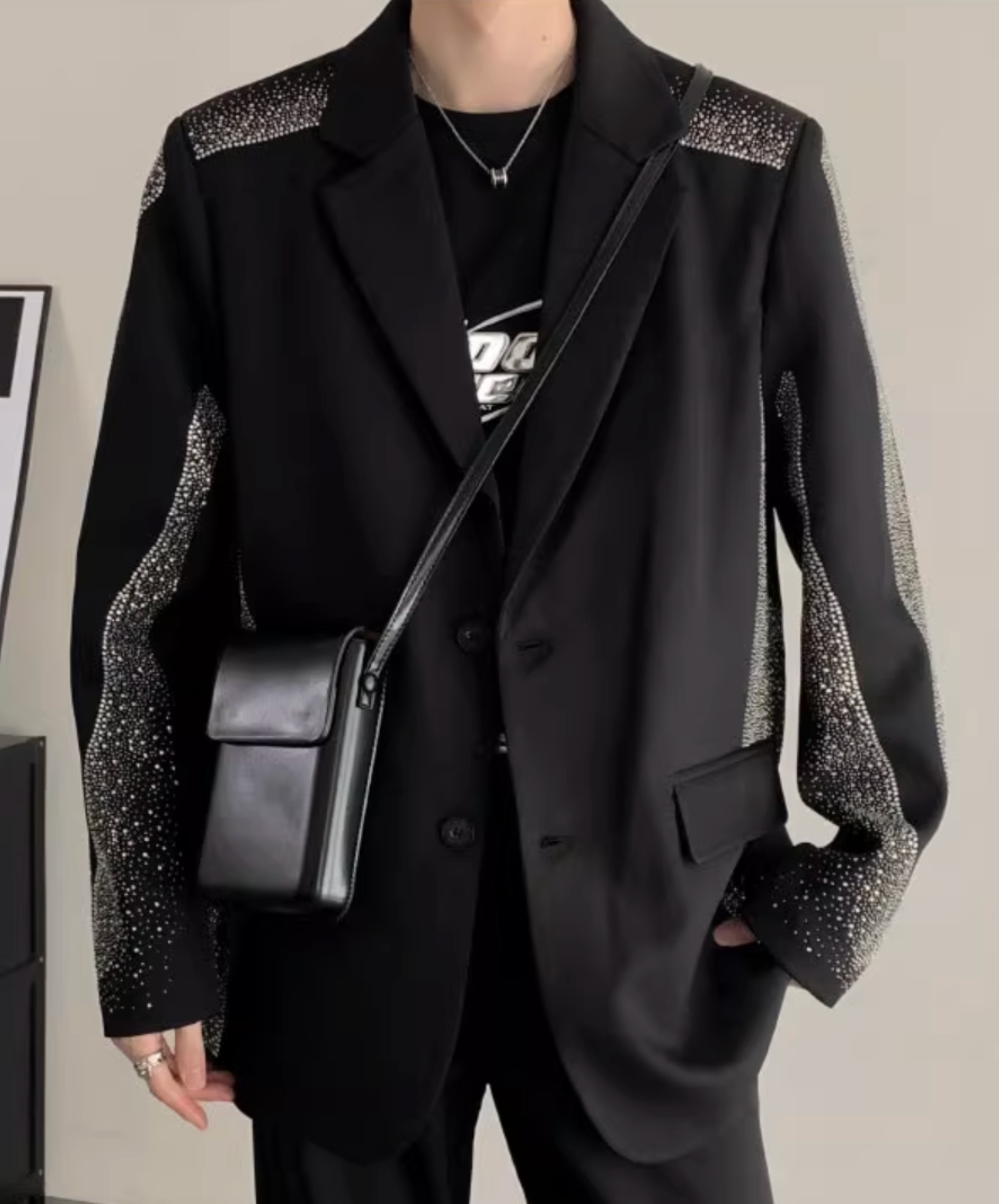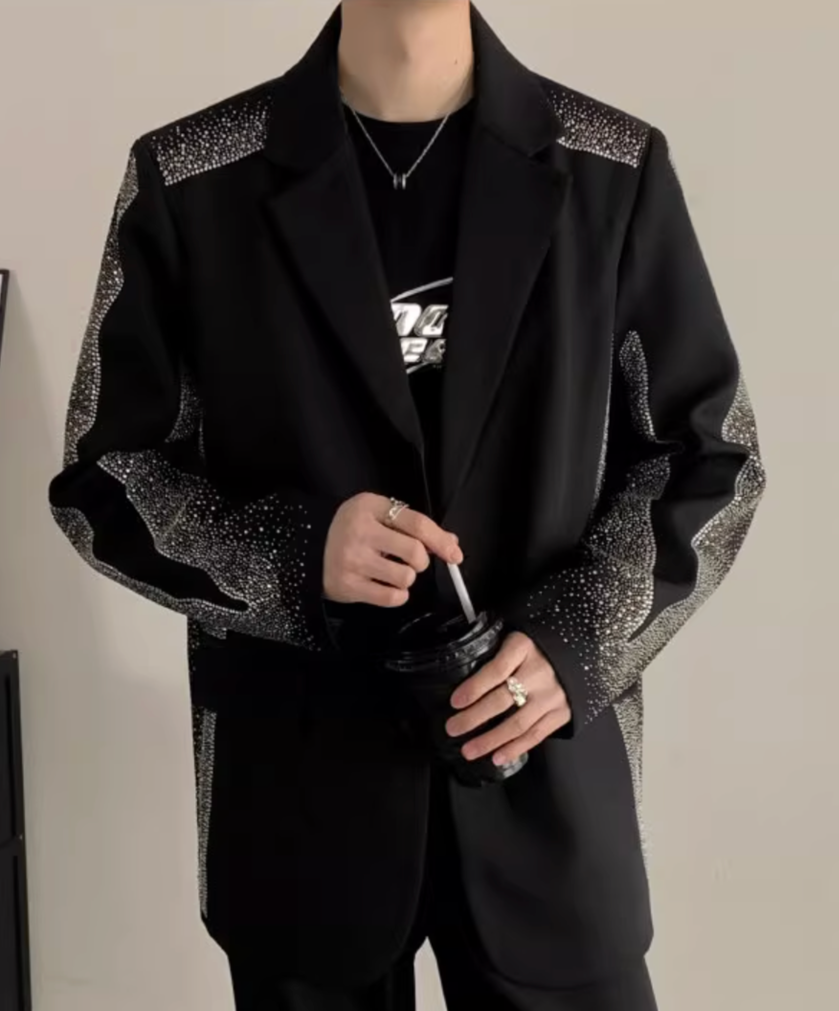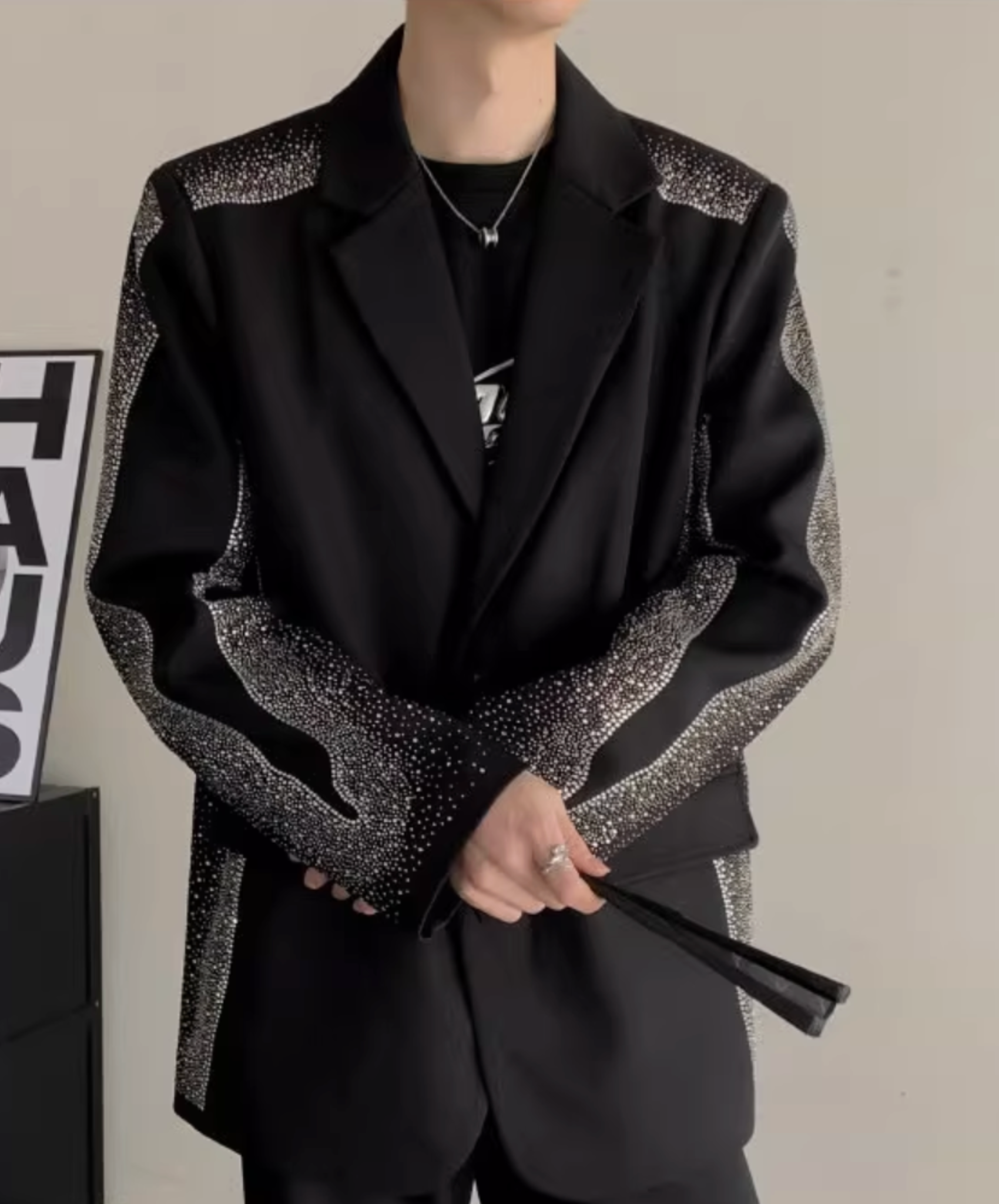 ・ダイヤモンドを散りばめたようなデザインがゴージャスなテーラードジャケット。