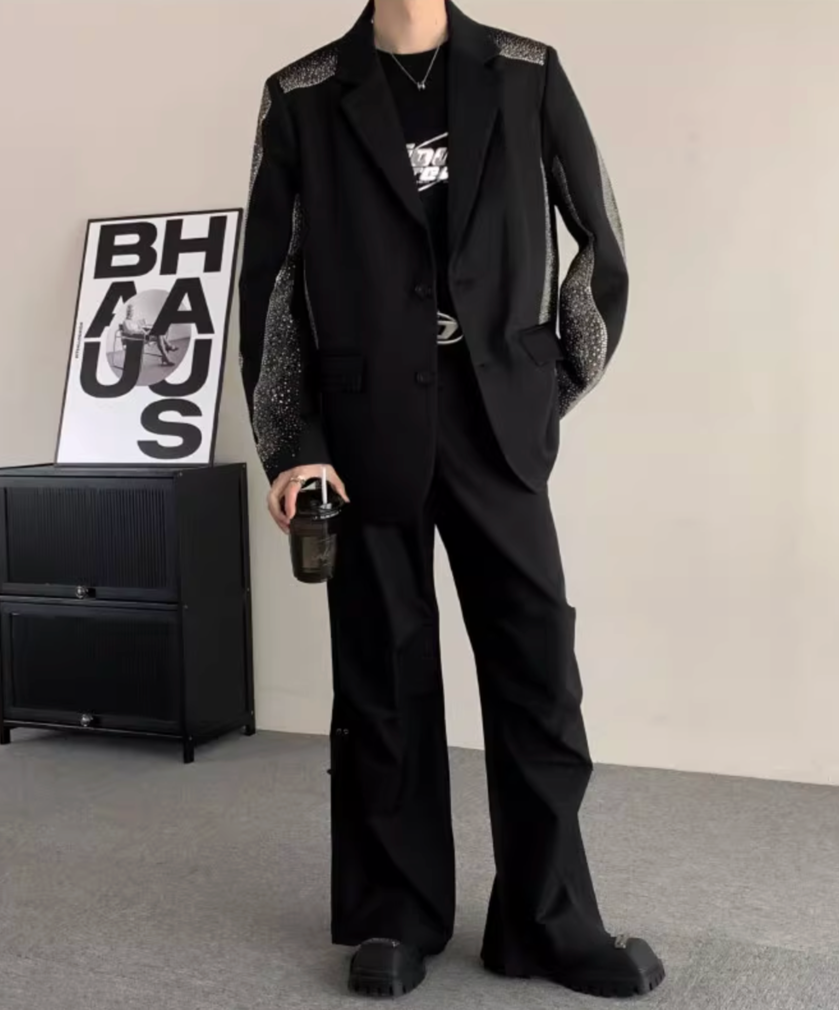 stand collar with metal decoration jacket EN2437