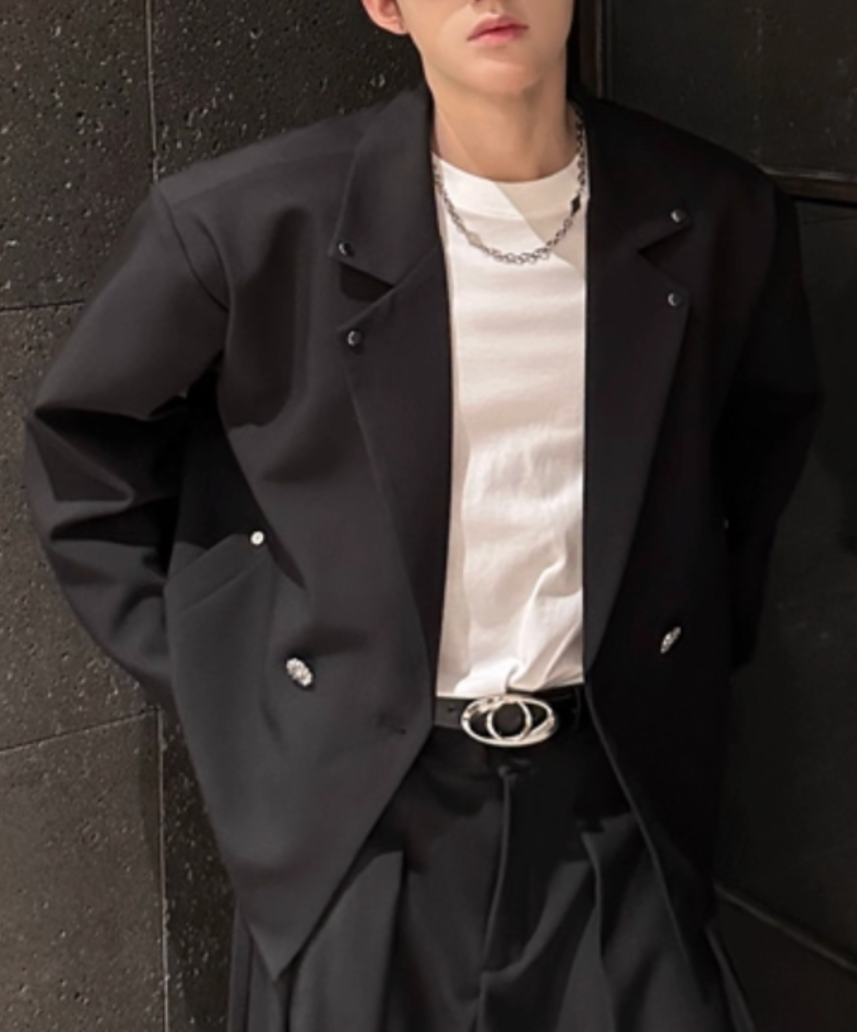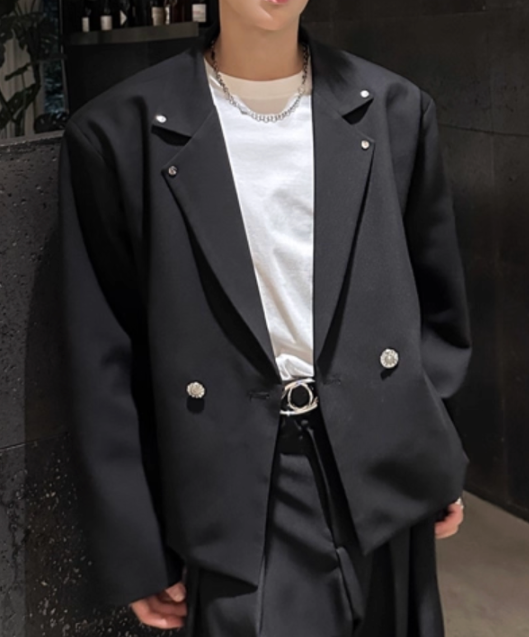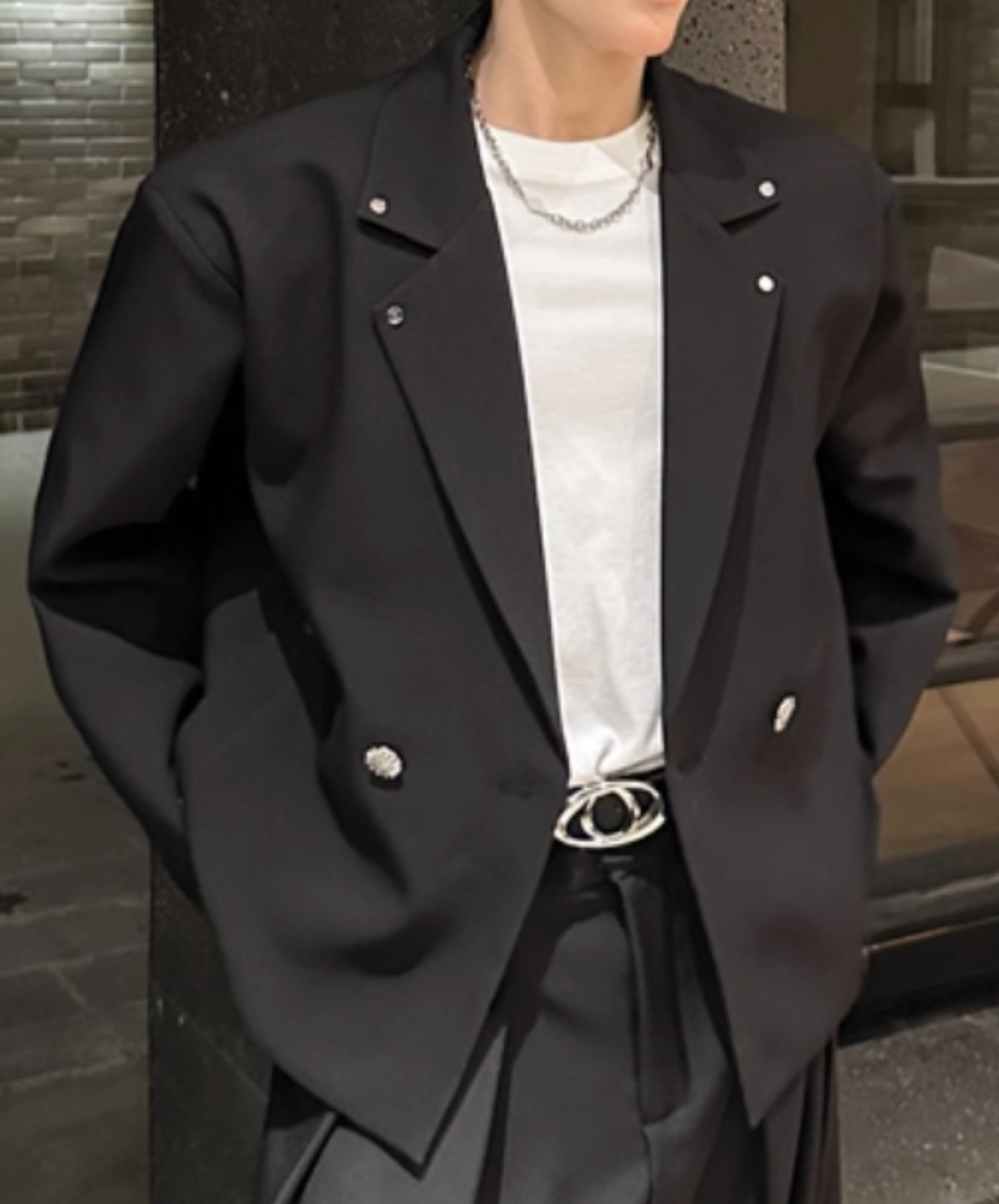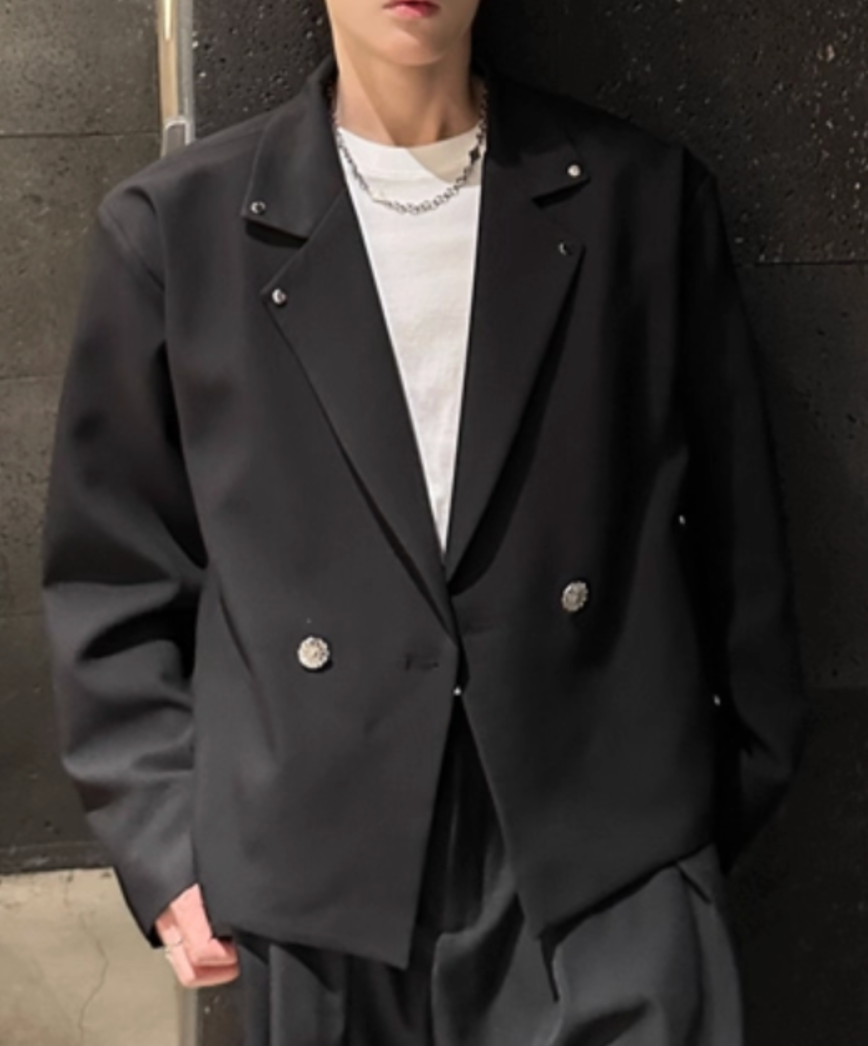 ・さり気ないリベット装飾がcoolな印象のテーラードジャケット。