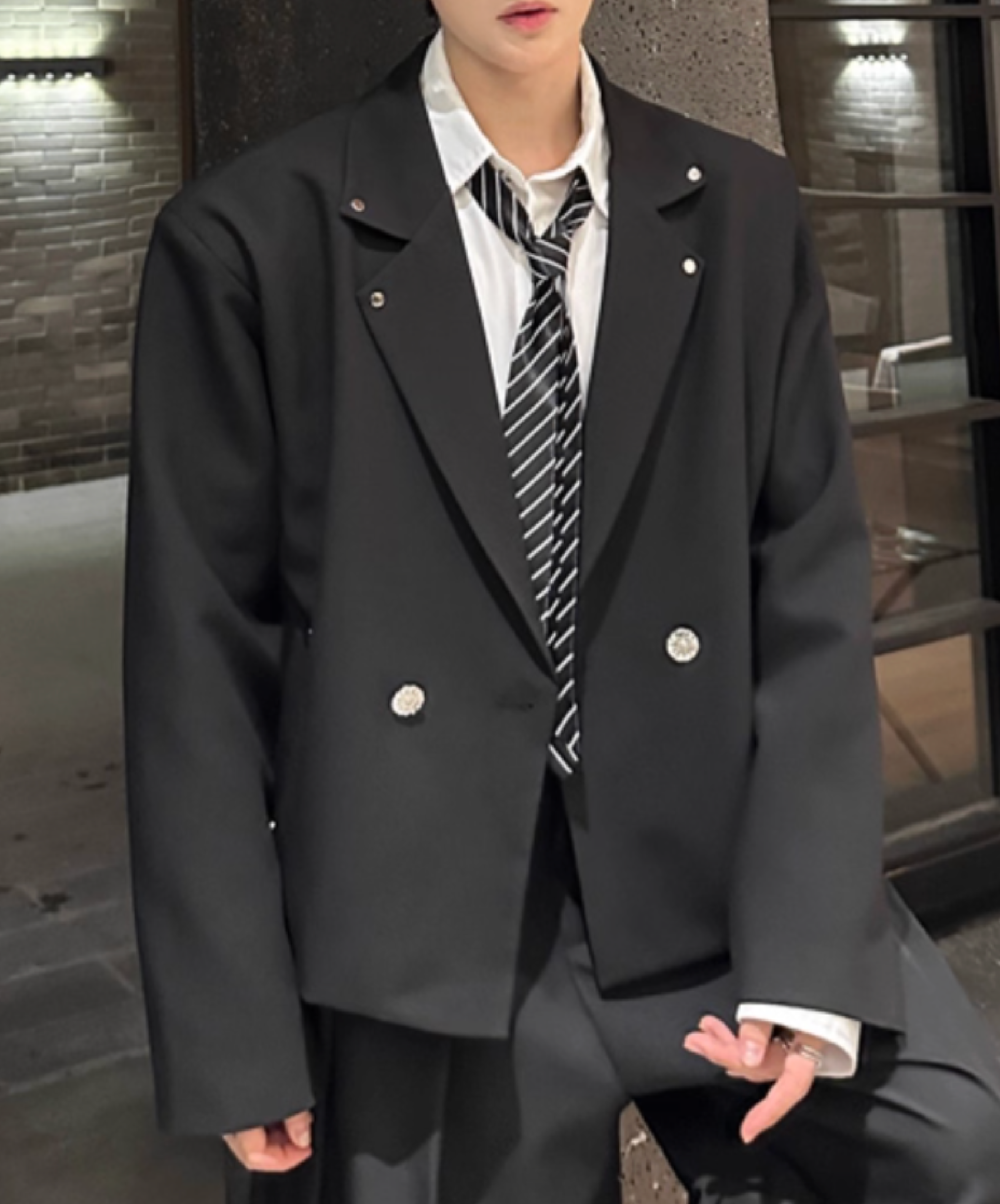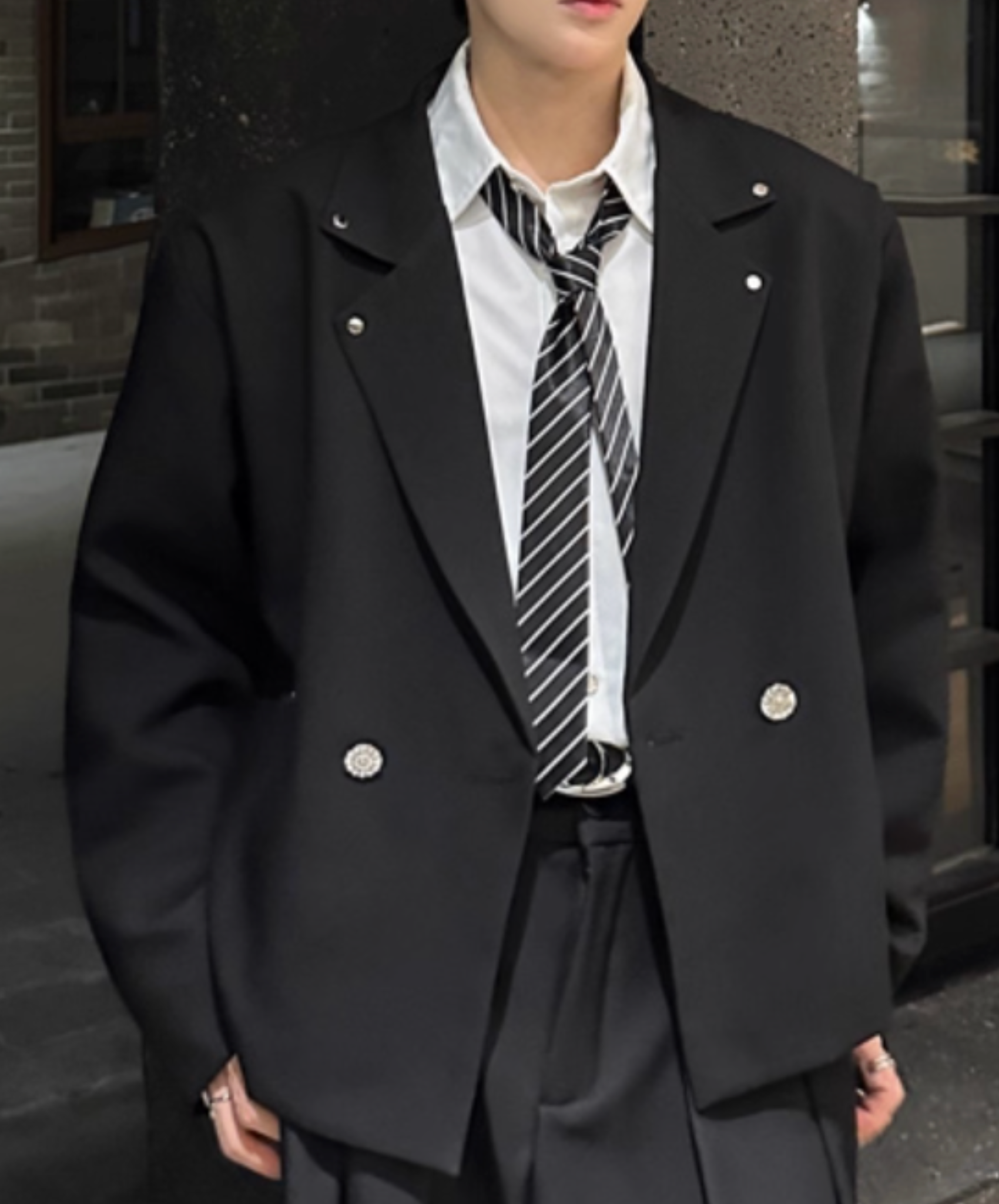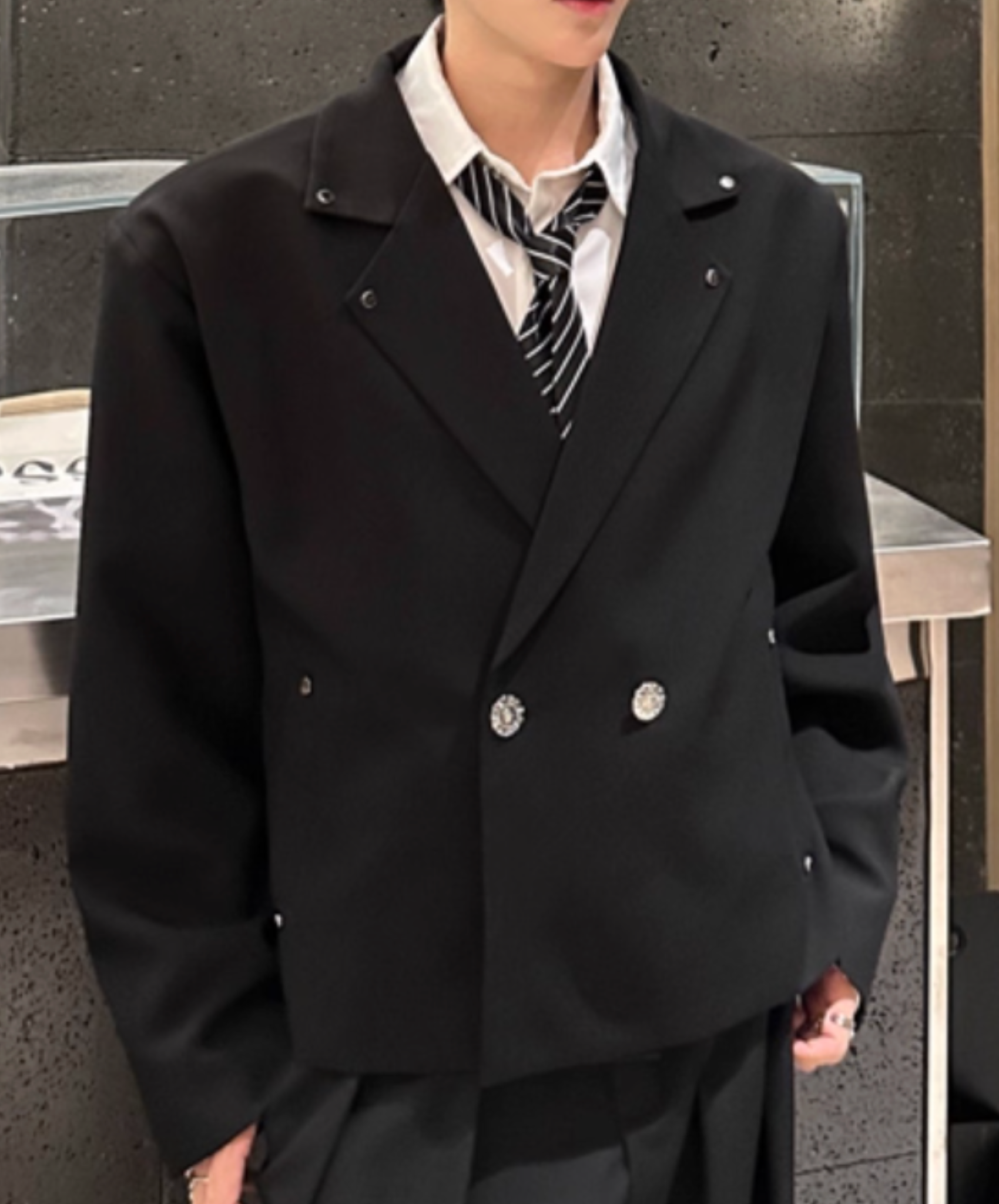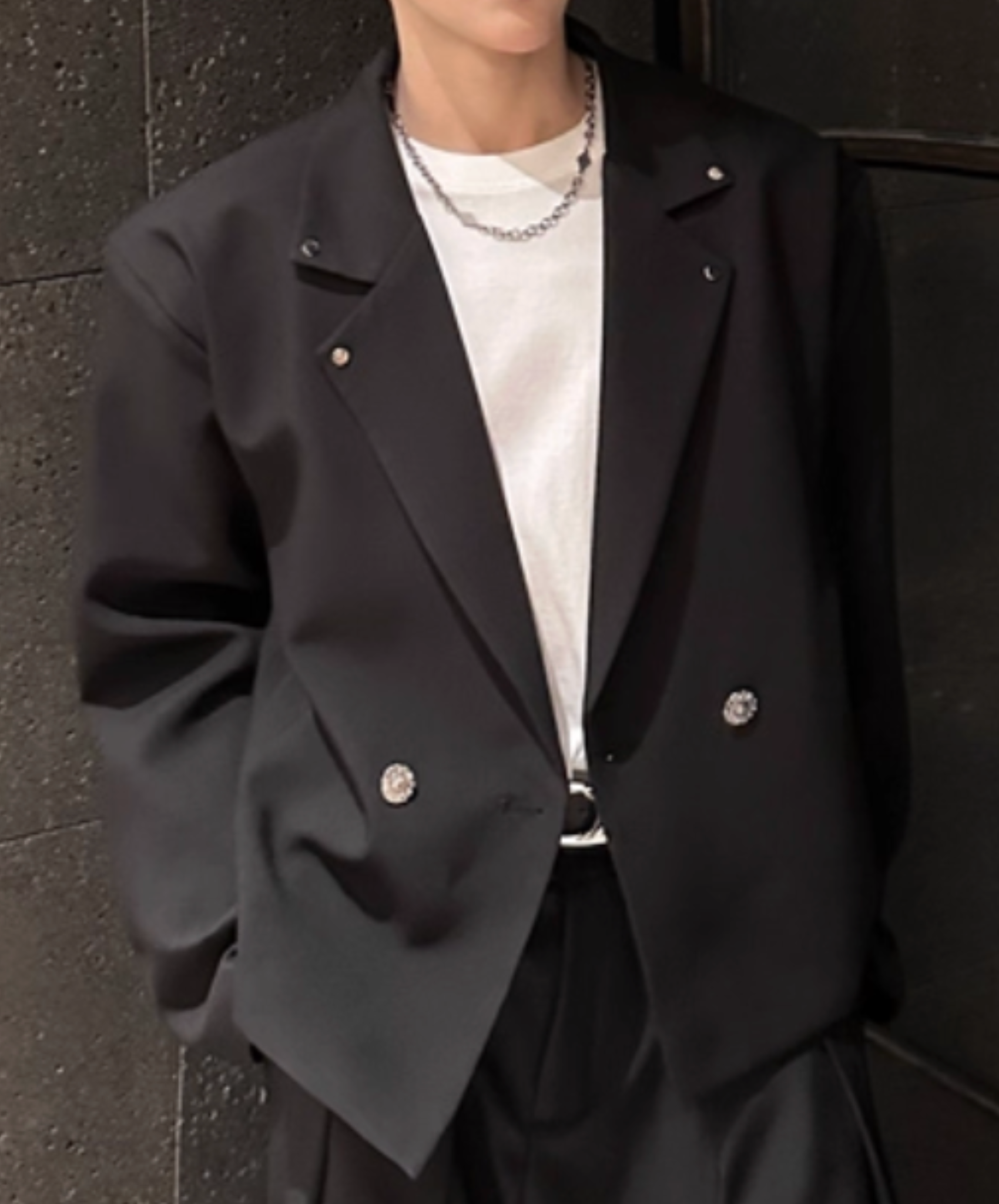 ・さり気ないリベット装飾がcoolな印象のテーラードジャケット。