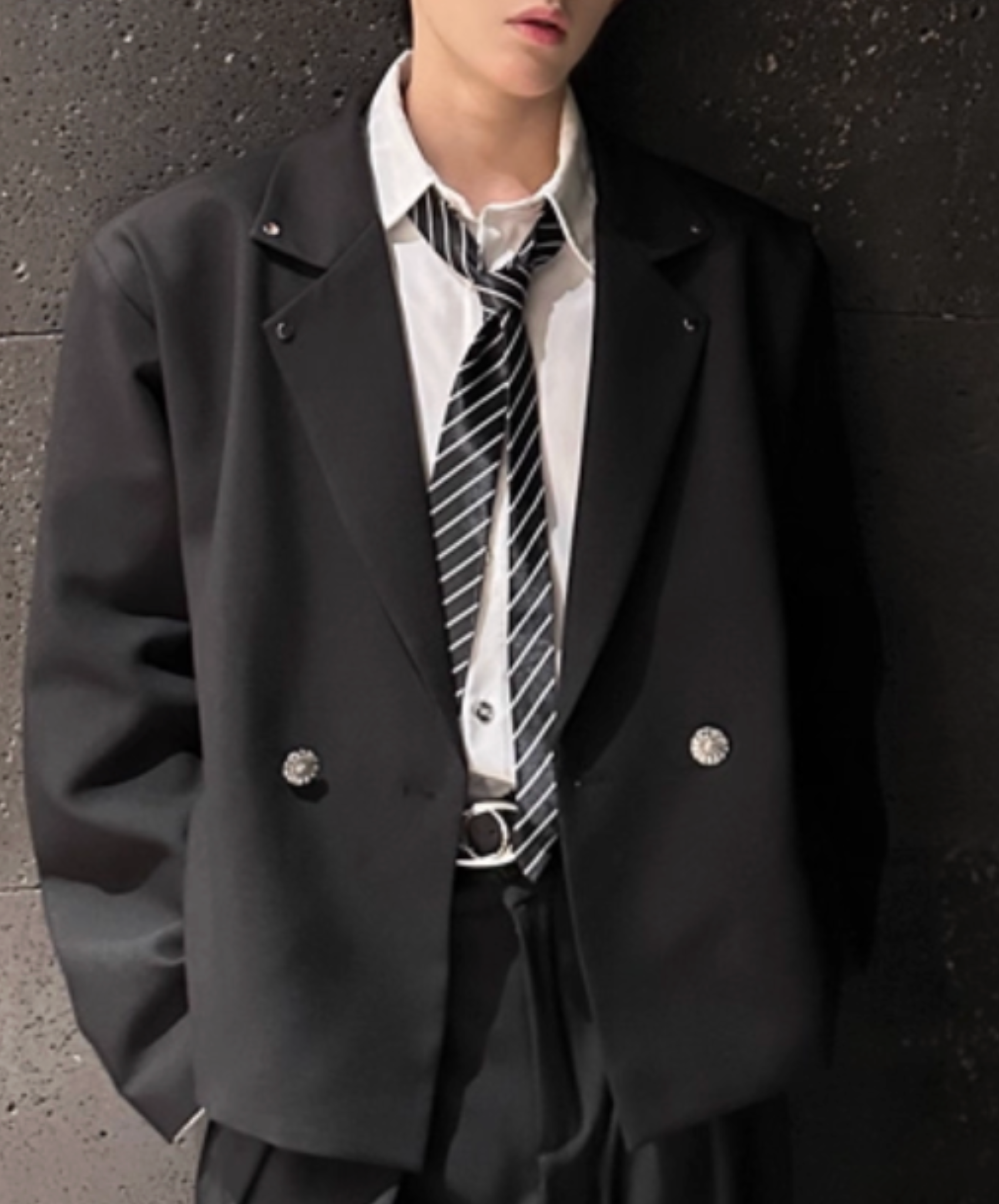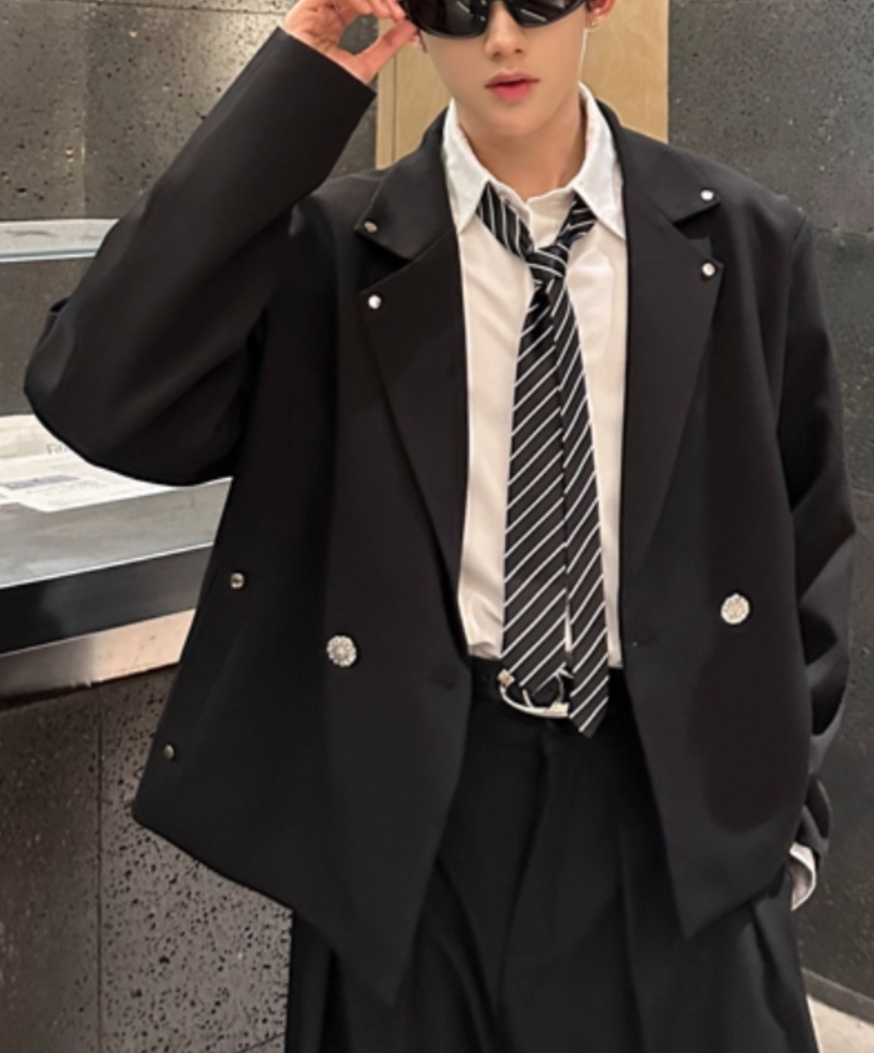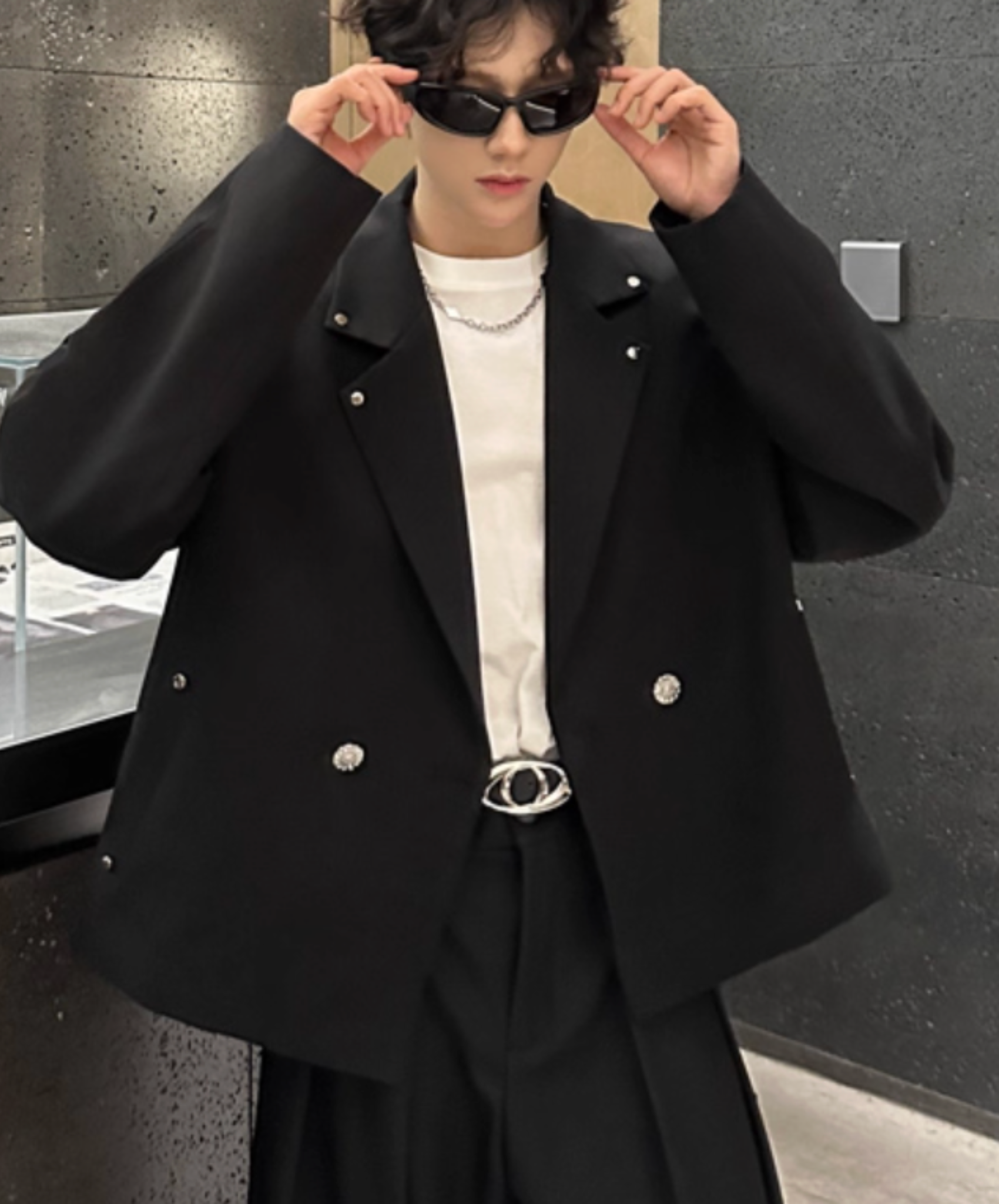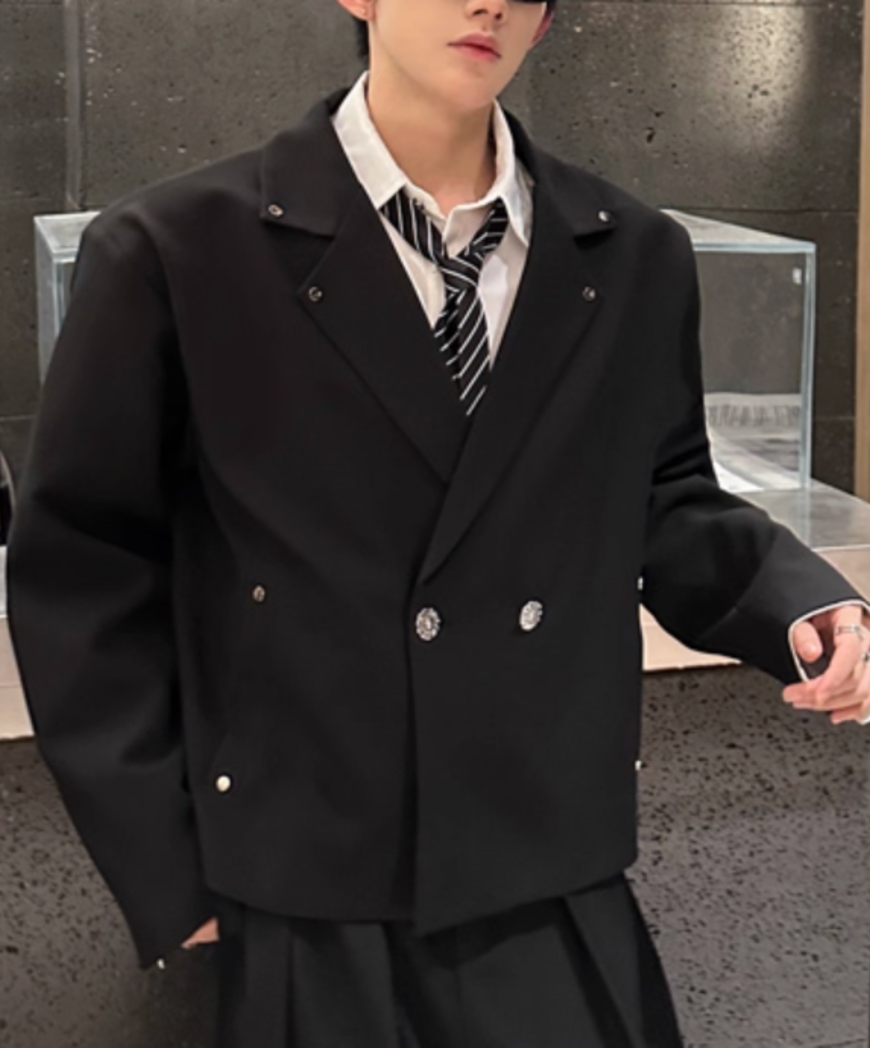 ・さり気ないリベット装飾がcoolな印象のテーラードジャケット。