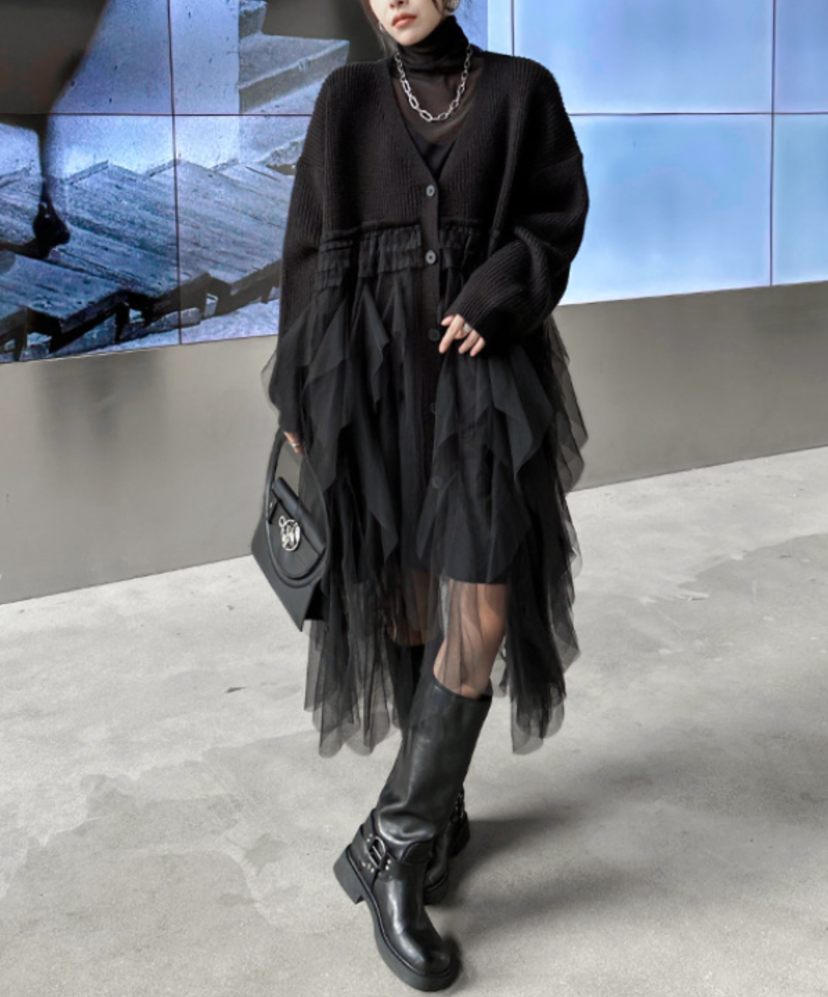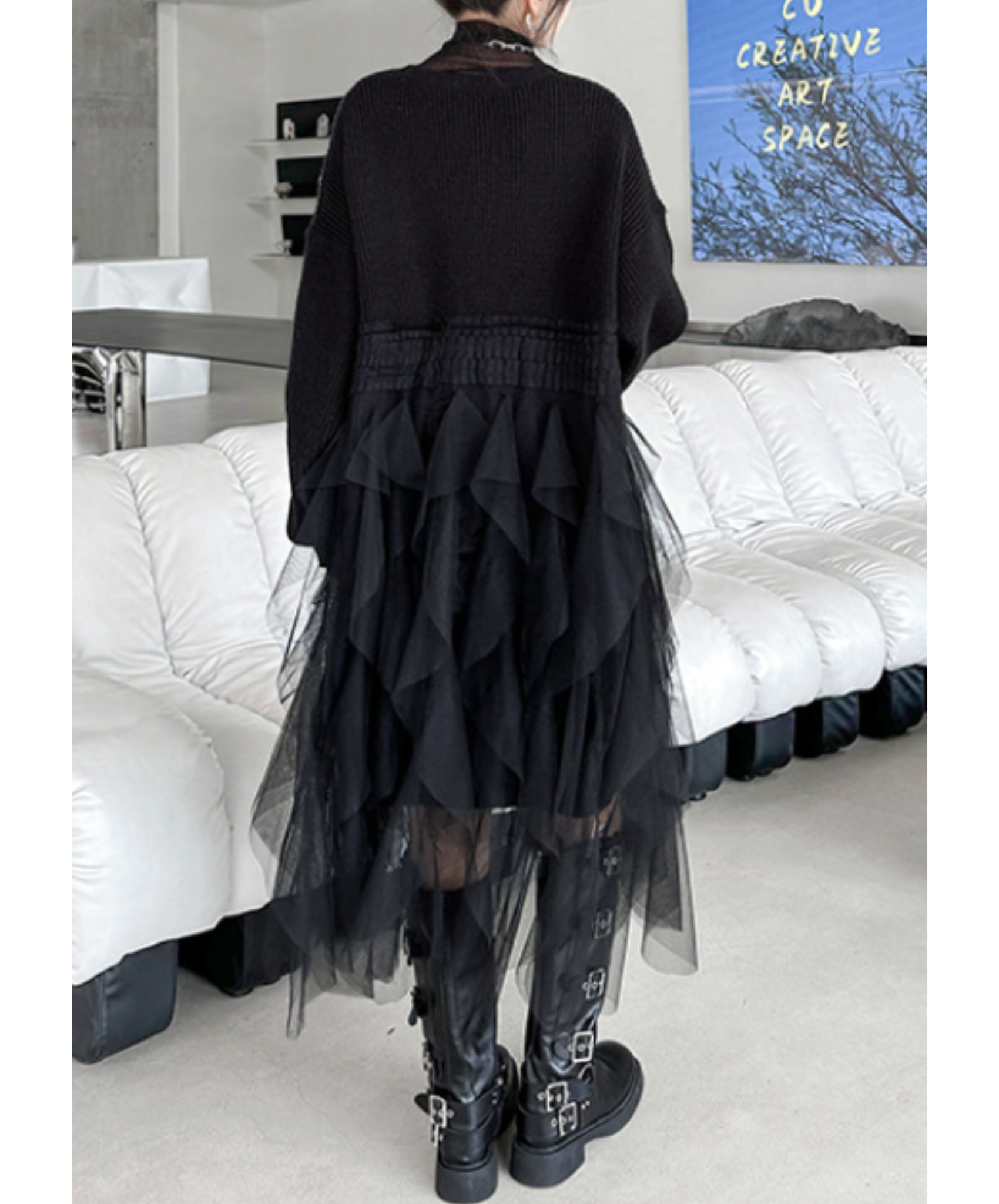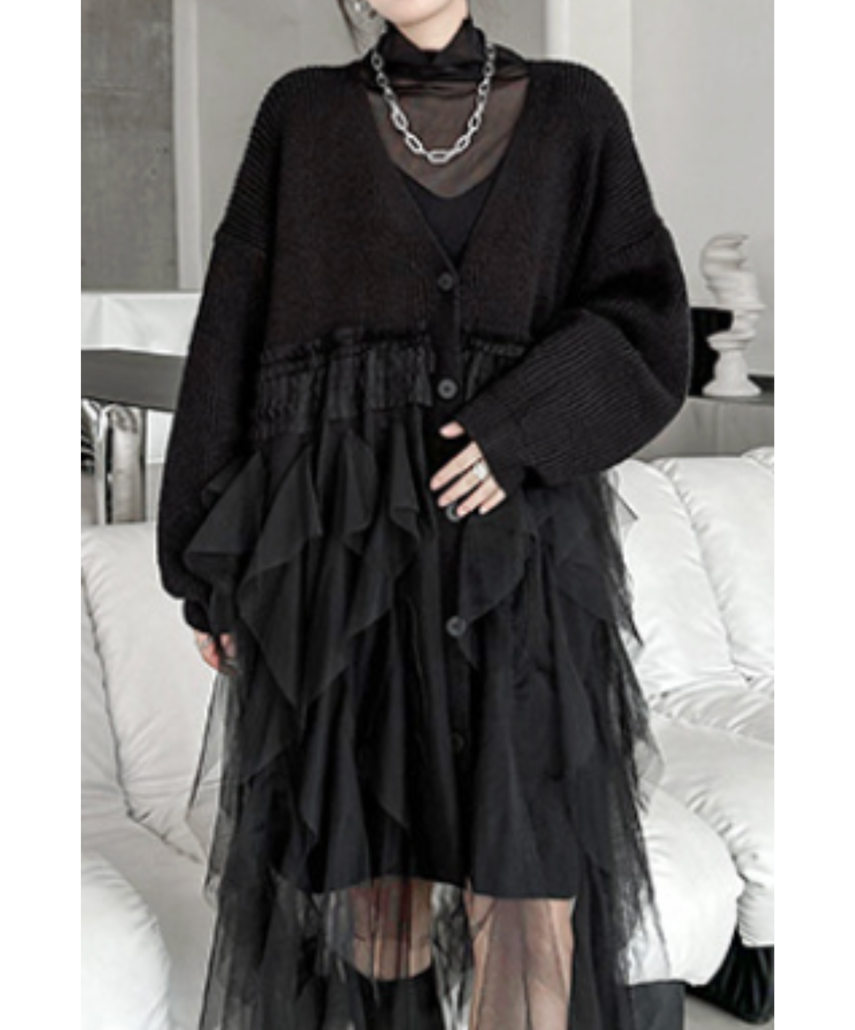 ・vネックで首元はスッキリ、チュールのボリュームが引き立ちます