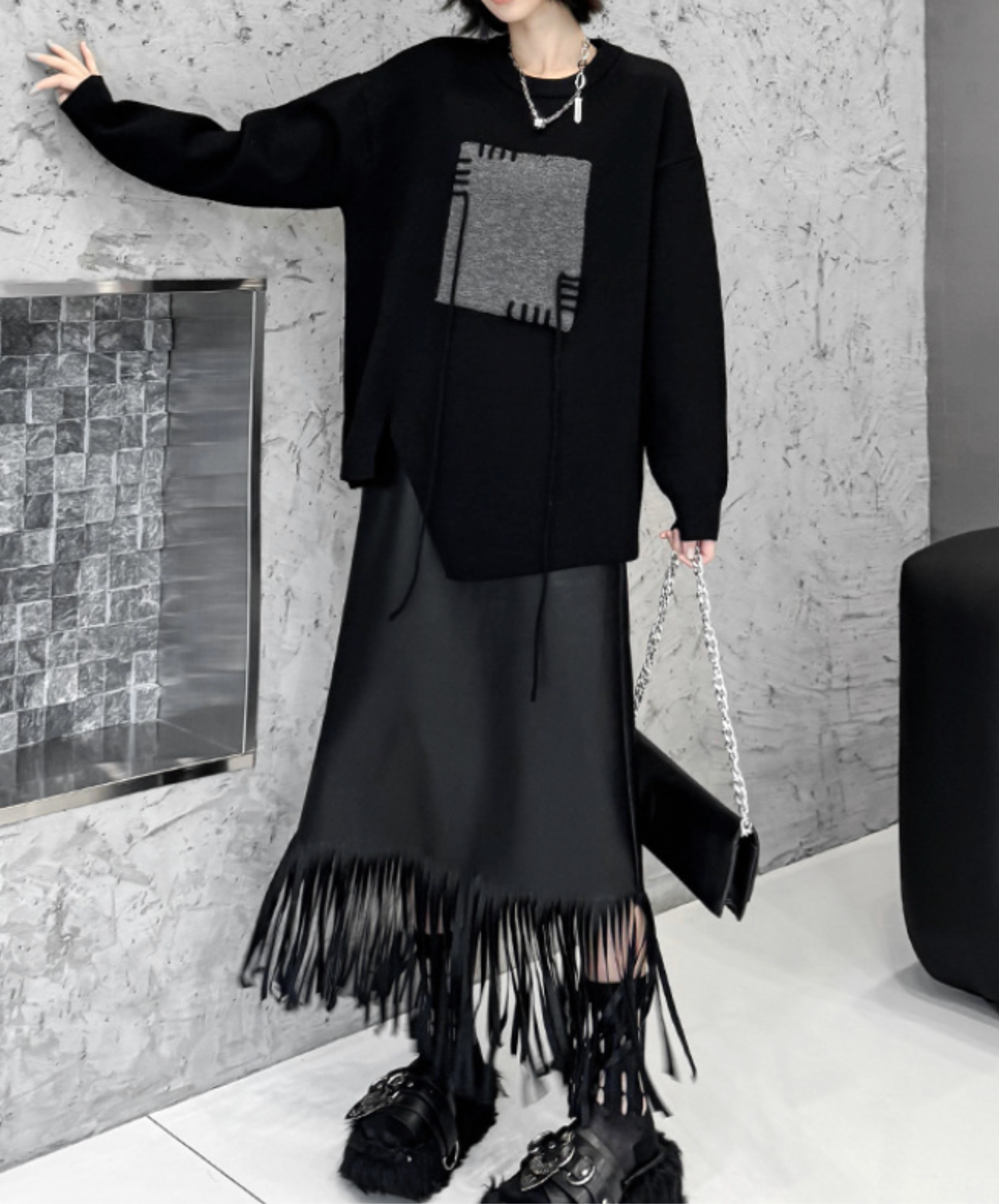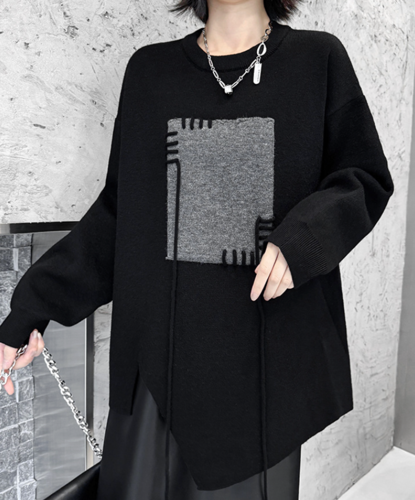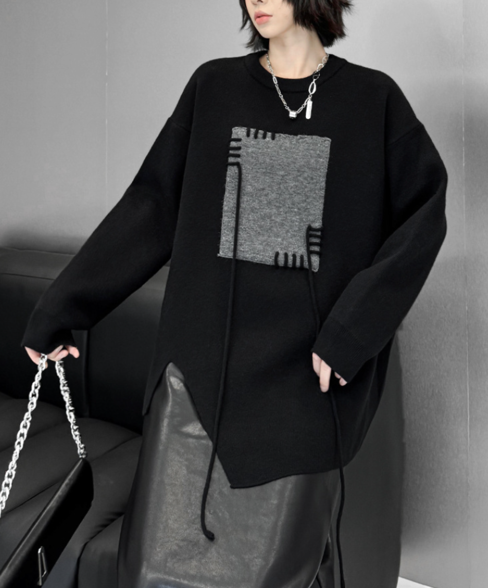 ・モチーフを縫い付けたような独創的なデザインのセーター。