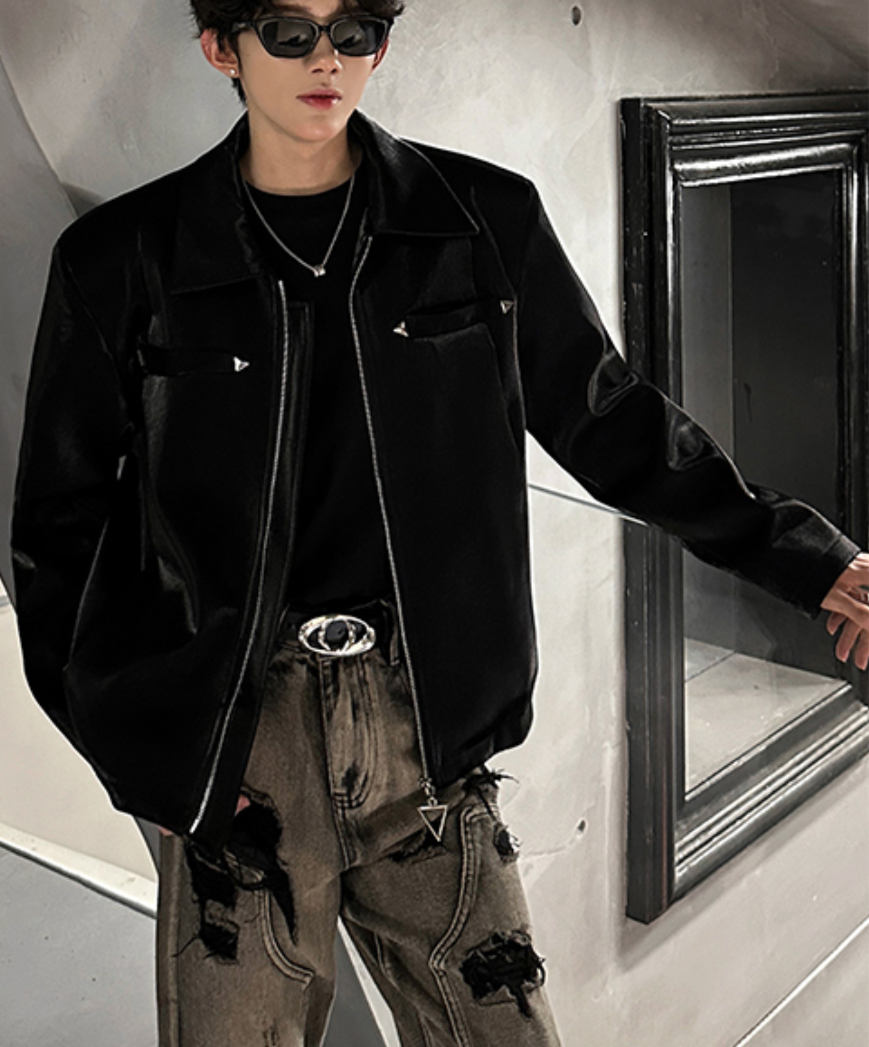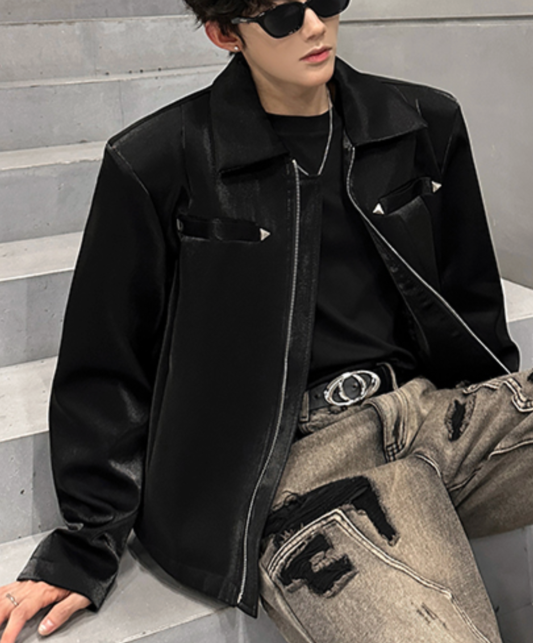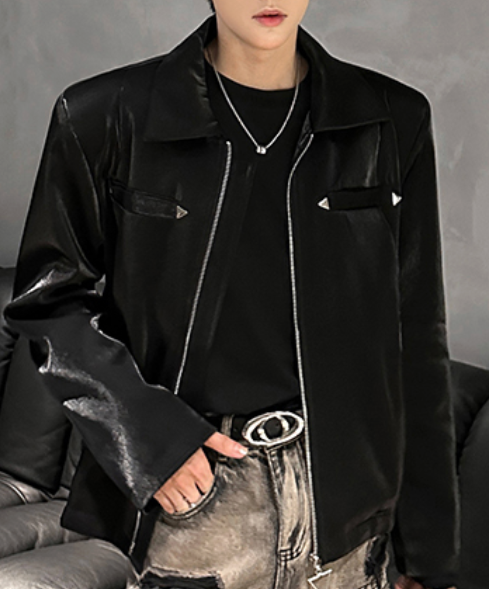 【style60】dark mode outfit set EN1863(jacket + shirt + pants set)