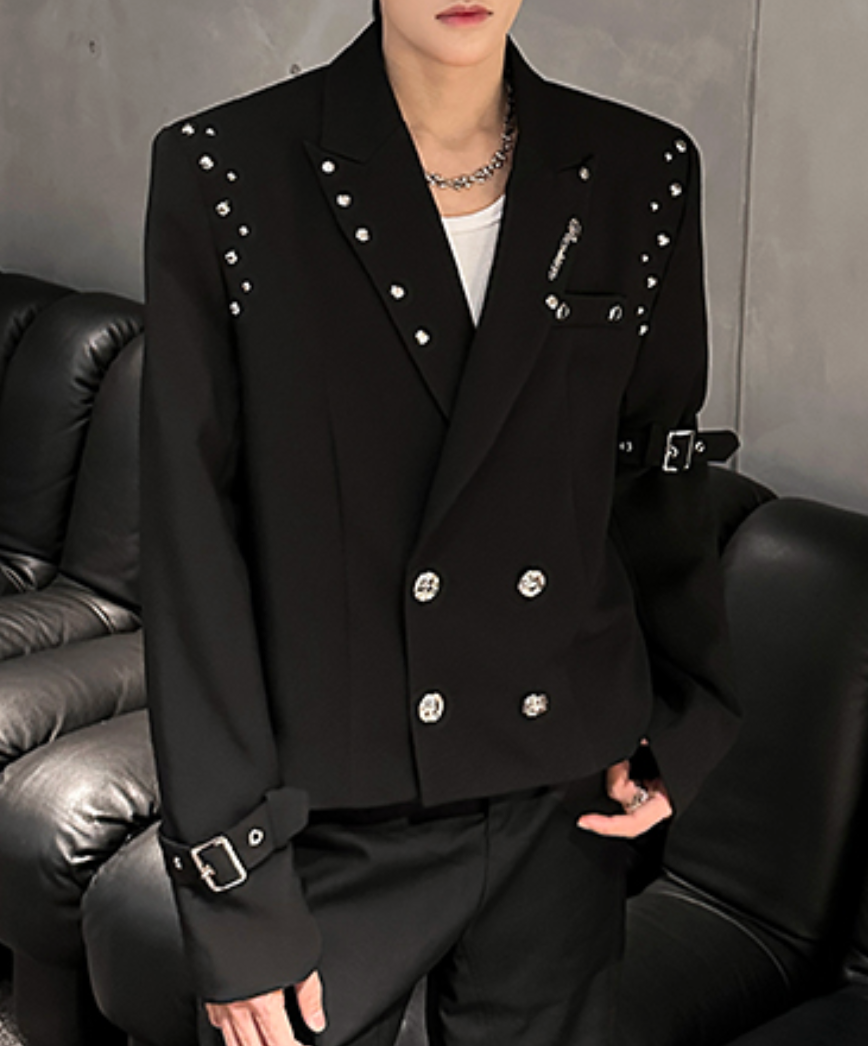 【style60】dark mode outfit set EN1863(jacket + shirt + pants set)