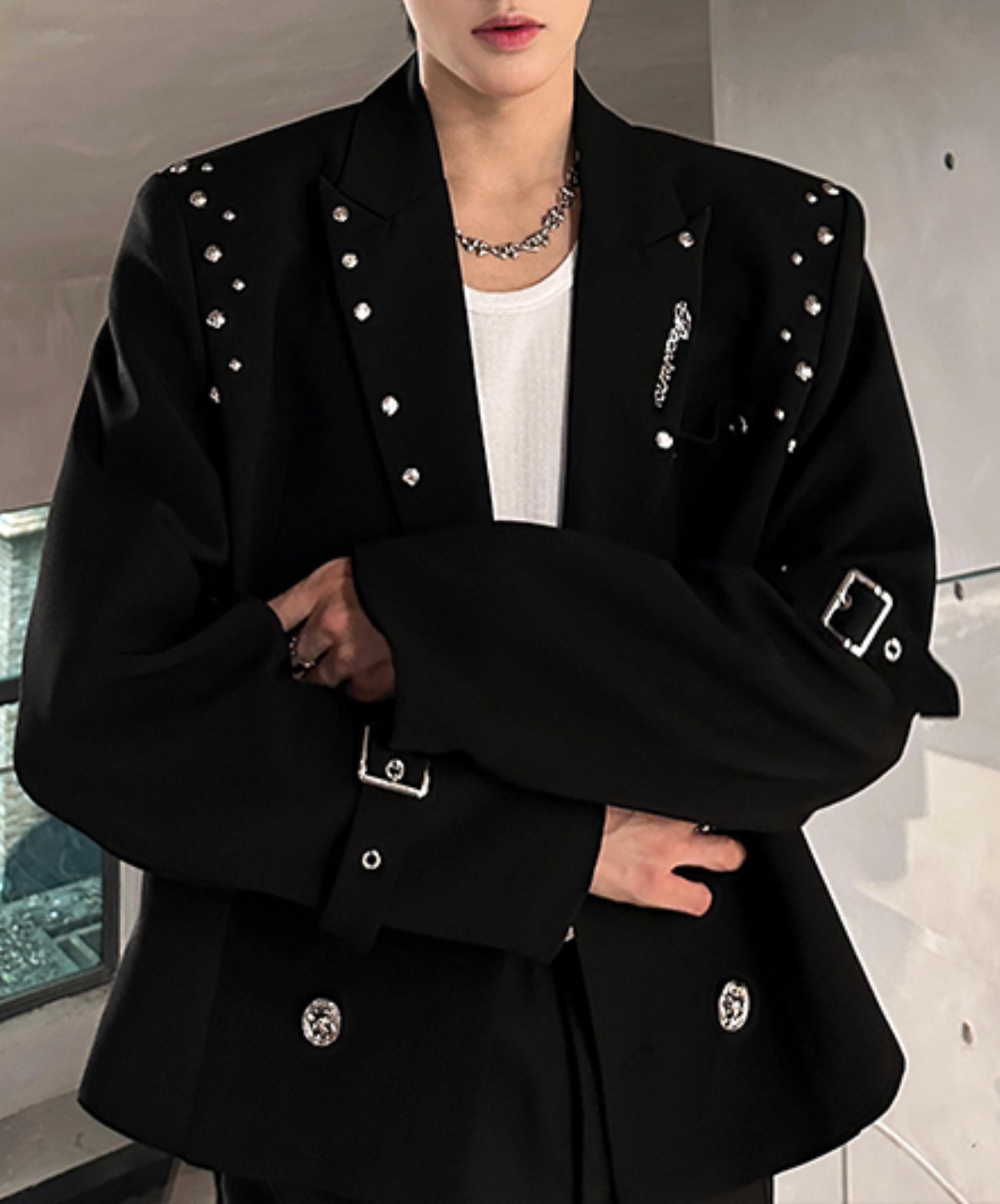 【style80】dark mode outfit set EN2536(jacket + shirt + pants set)