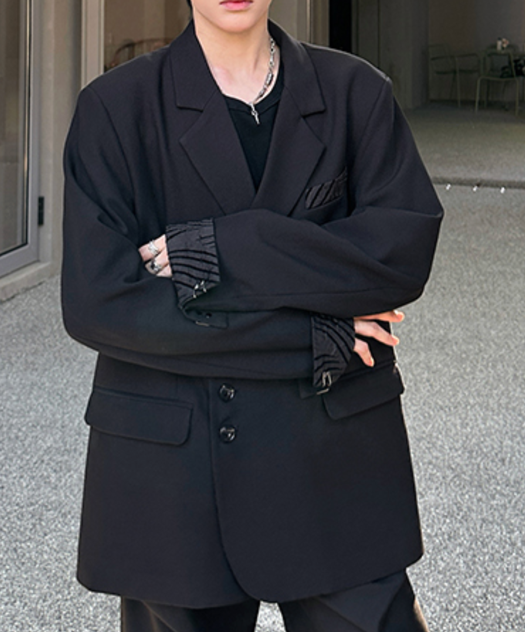 【style60】dark mode outfit set EN1863(jacket + shirt + pants set)