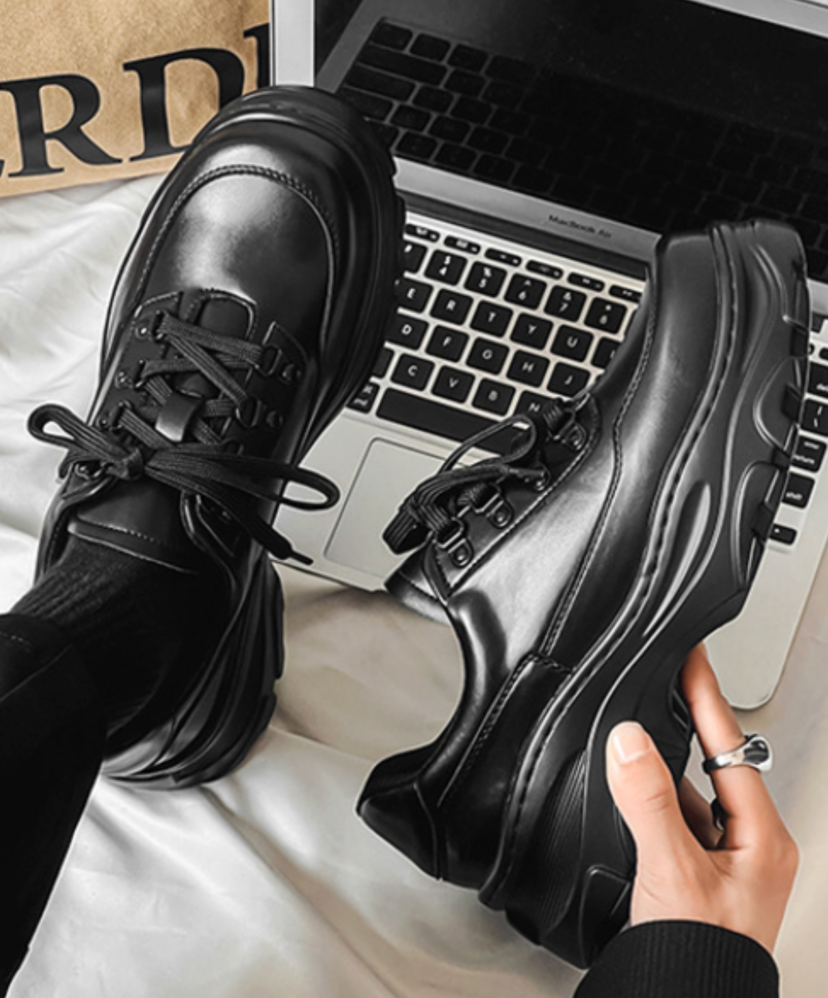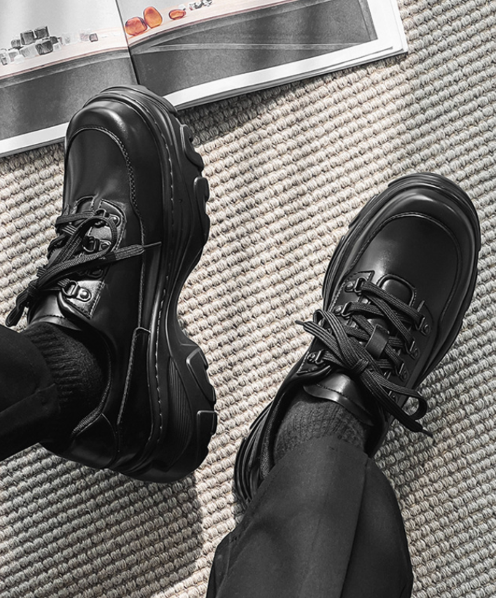 ・スクエアトゥのレースアップシューズ。