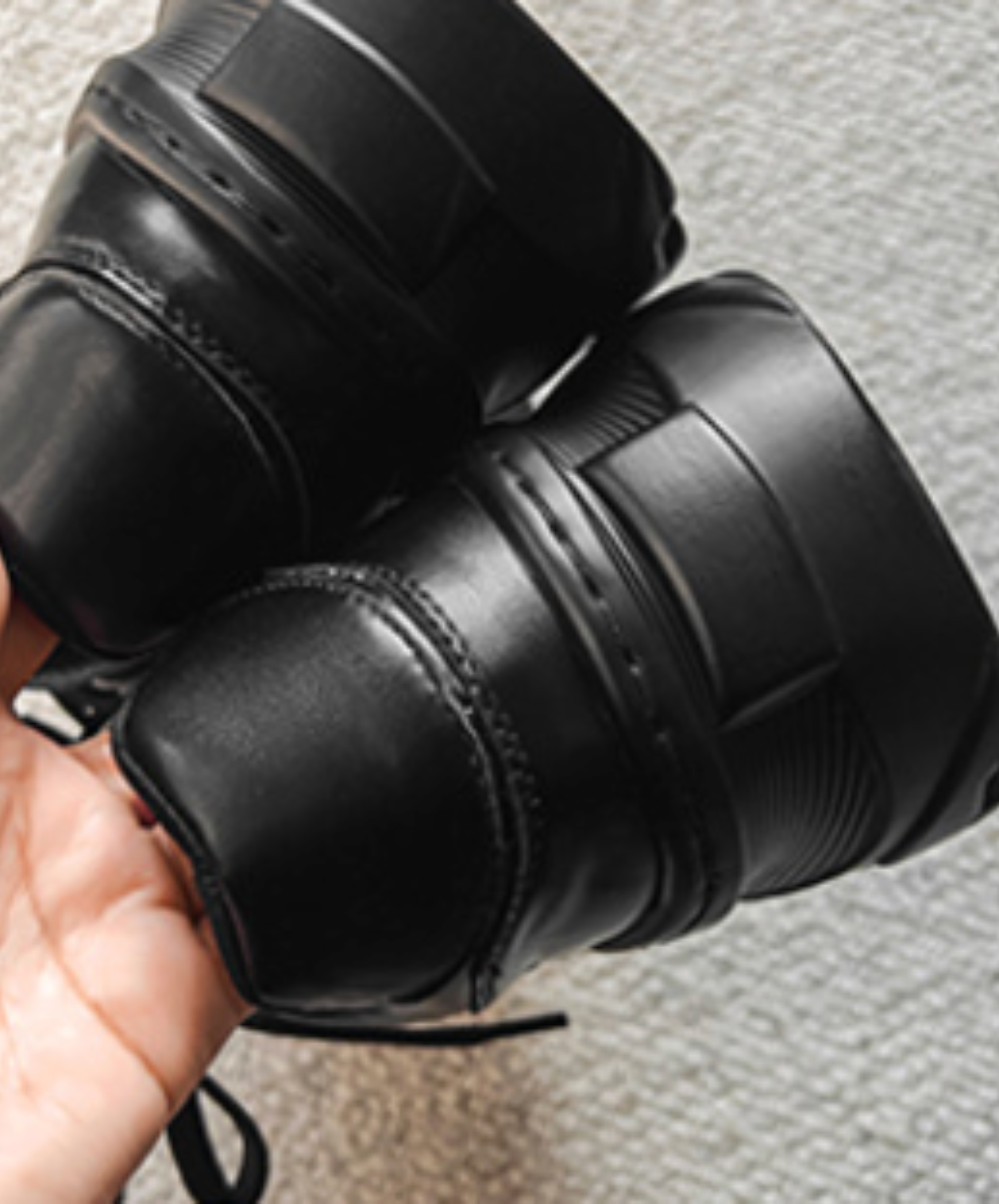・程よい光沢でカジュアルになりすぎない使いやすい一足。