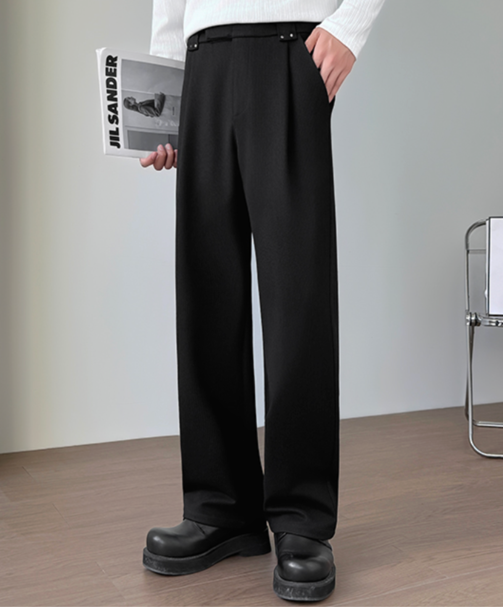 thick drape rivet wide pants EN2651