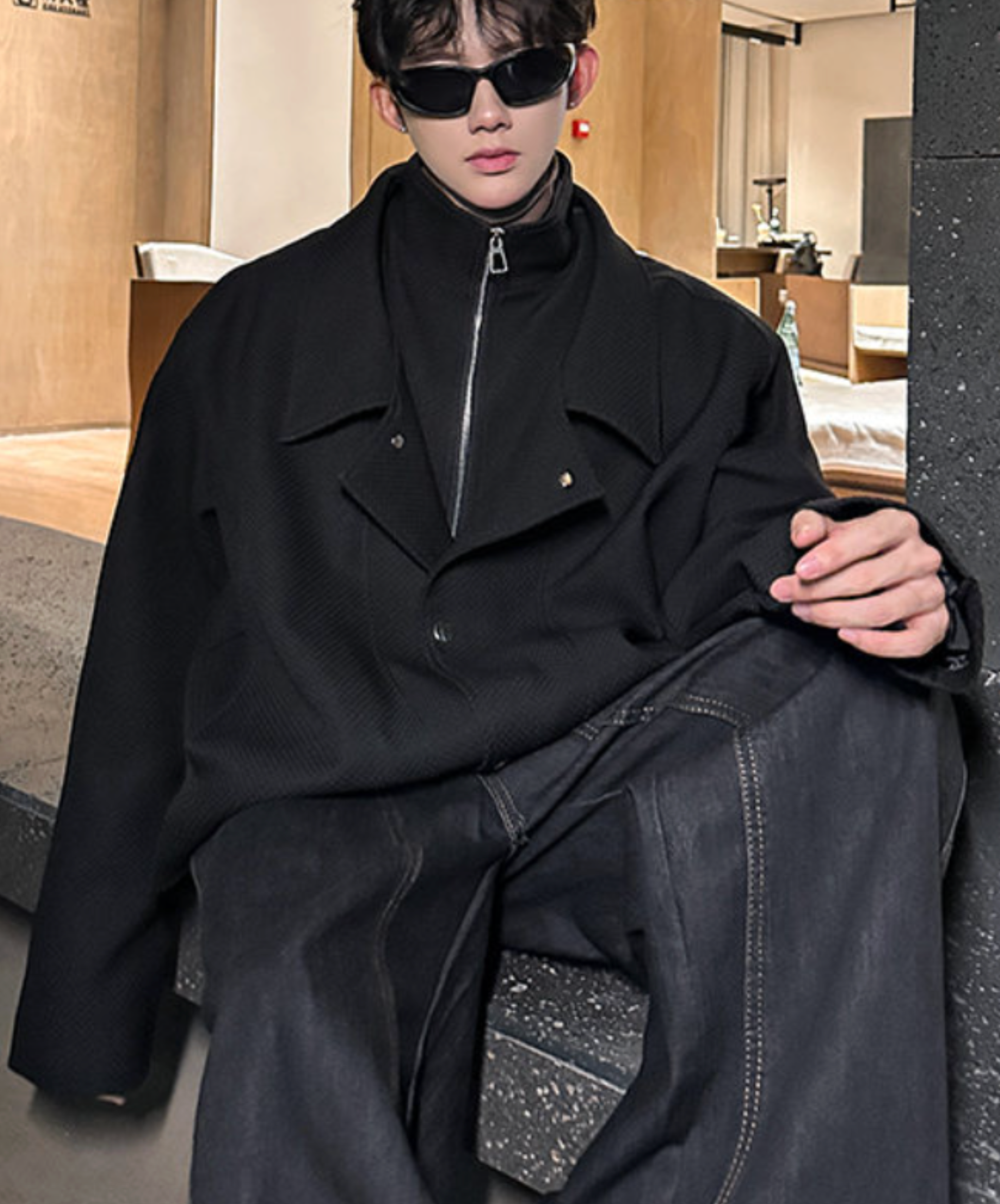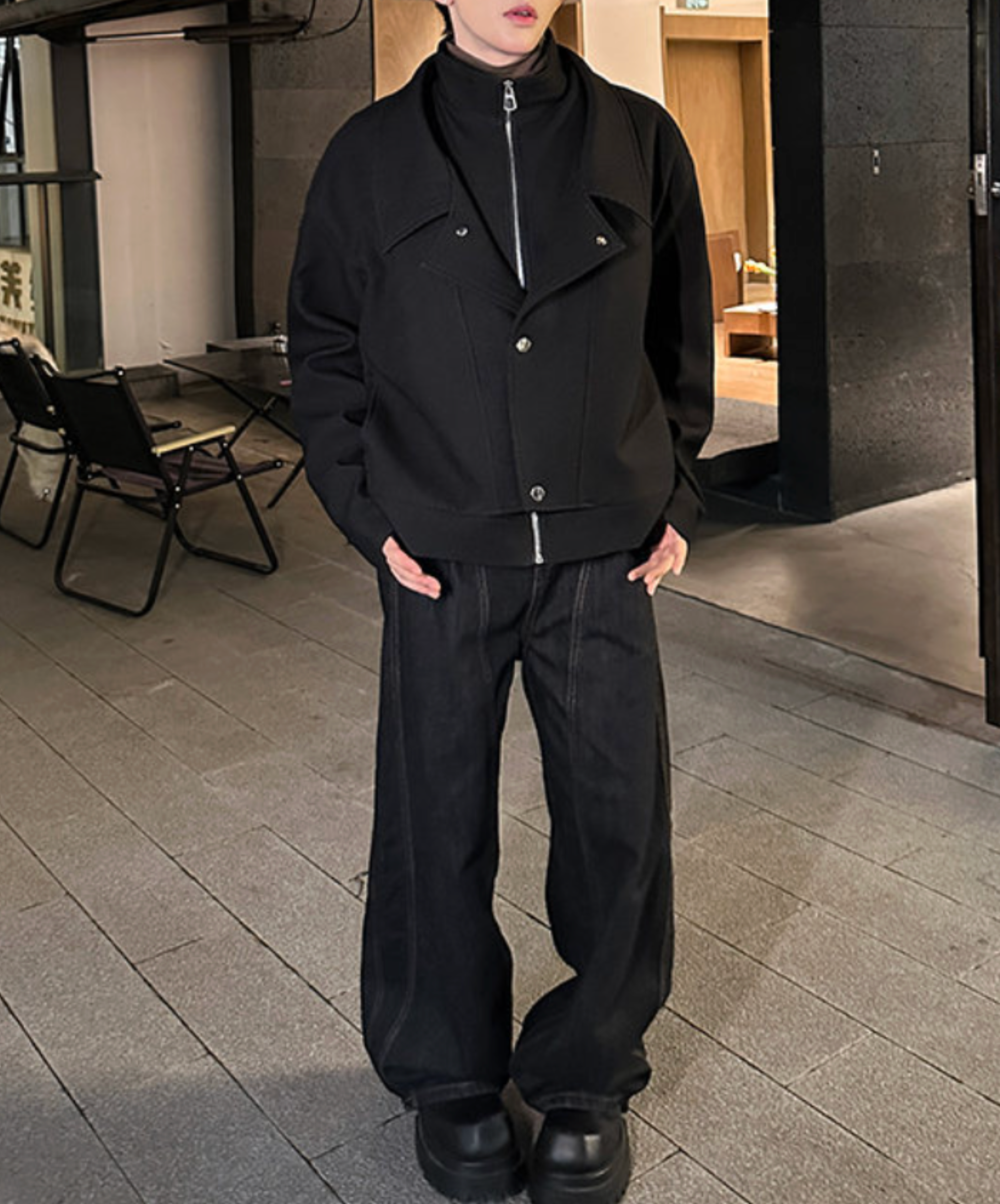 【style60】dark mode outfit set EN1863(jacket + shirt + pants set)