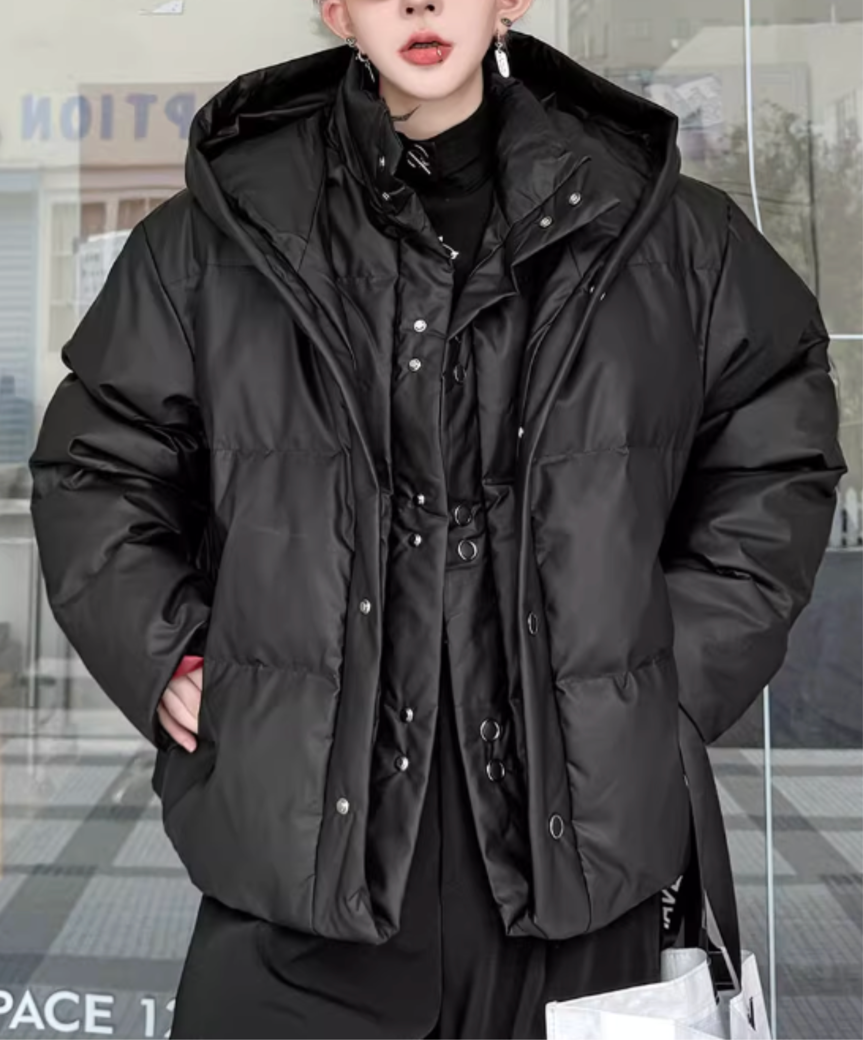 hooded fake two-piece down EN2595
