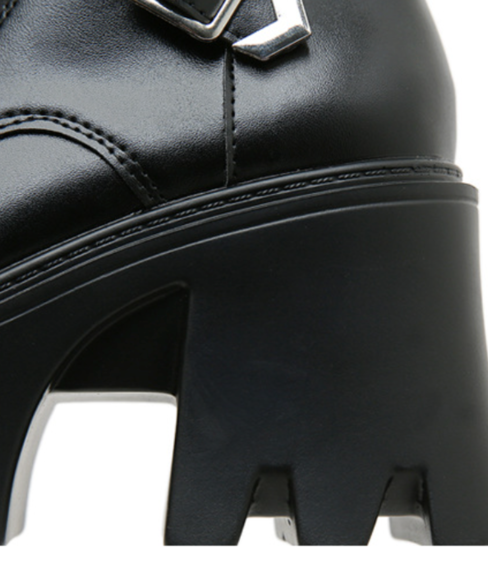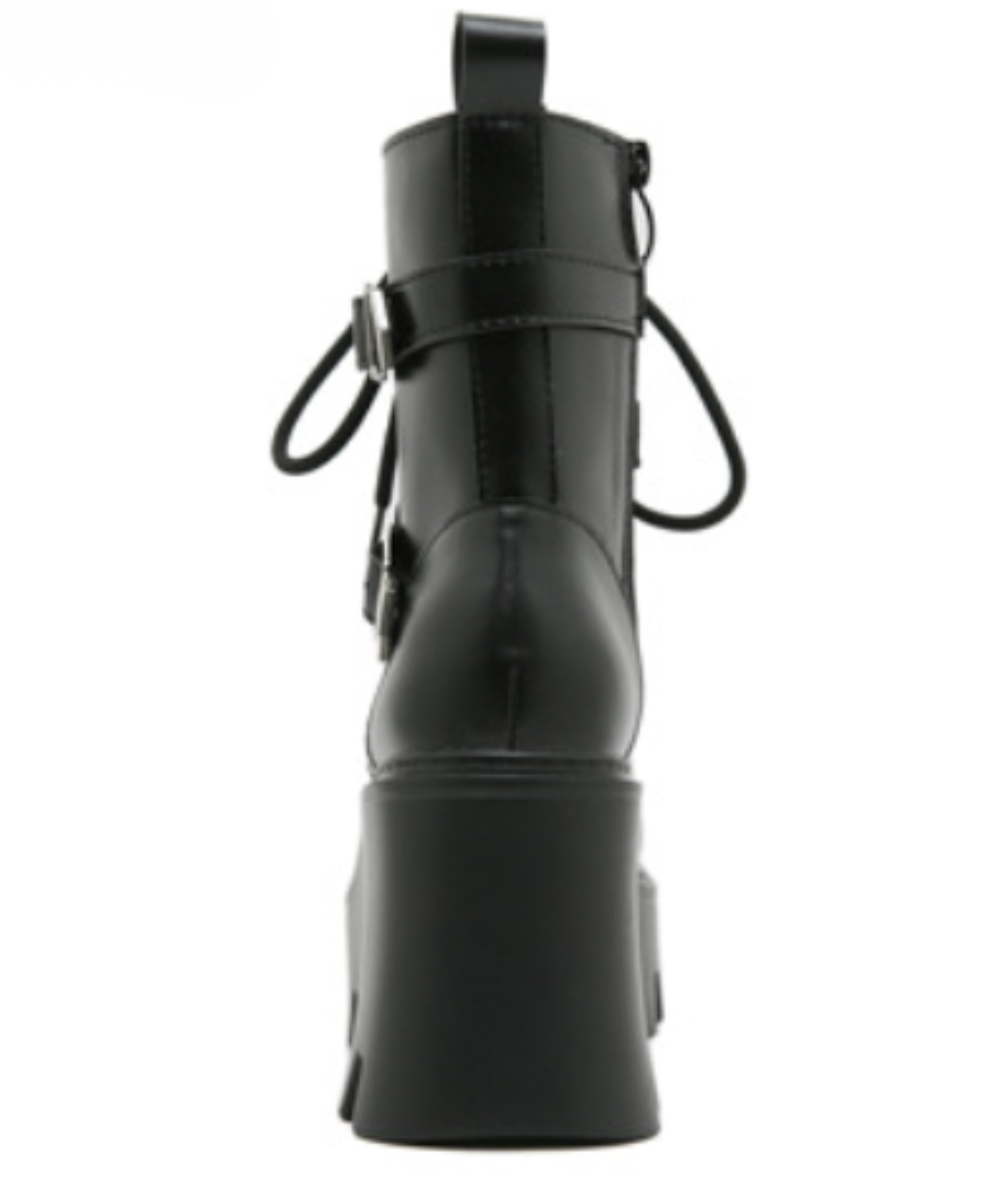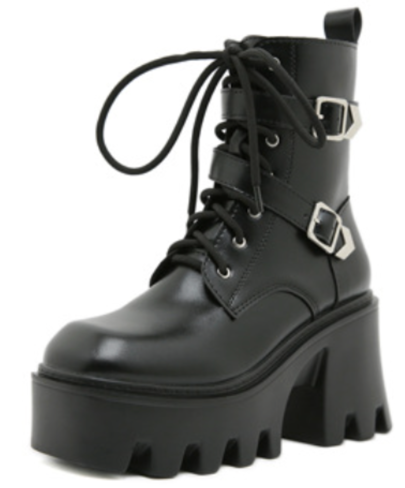 ・波型デザインのソールが特徴的な厚底ブーツ。
