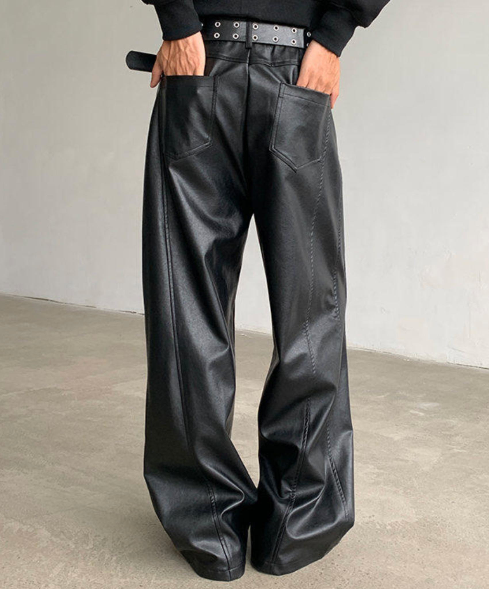 ・テーラードシルエットのPUレザーパンツ。