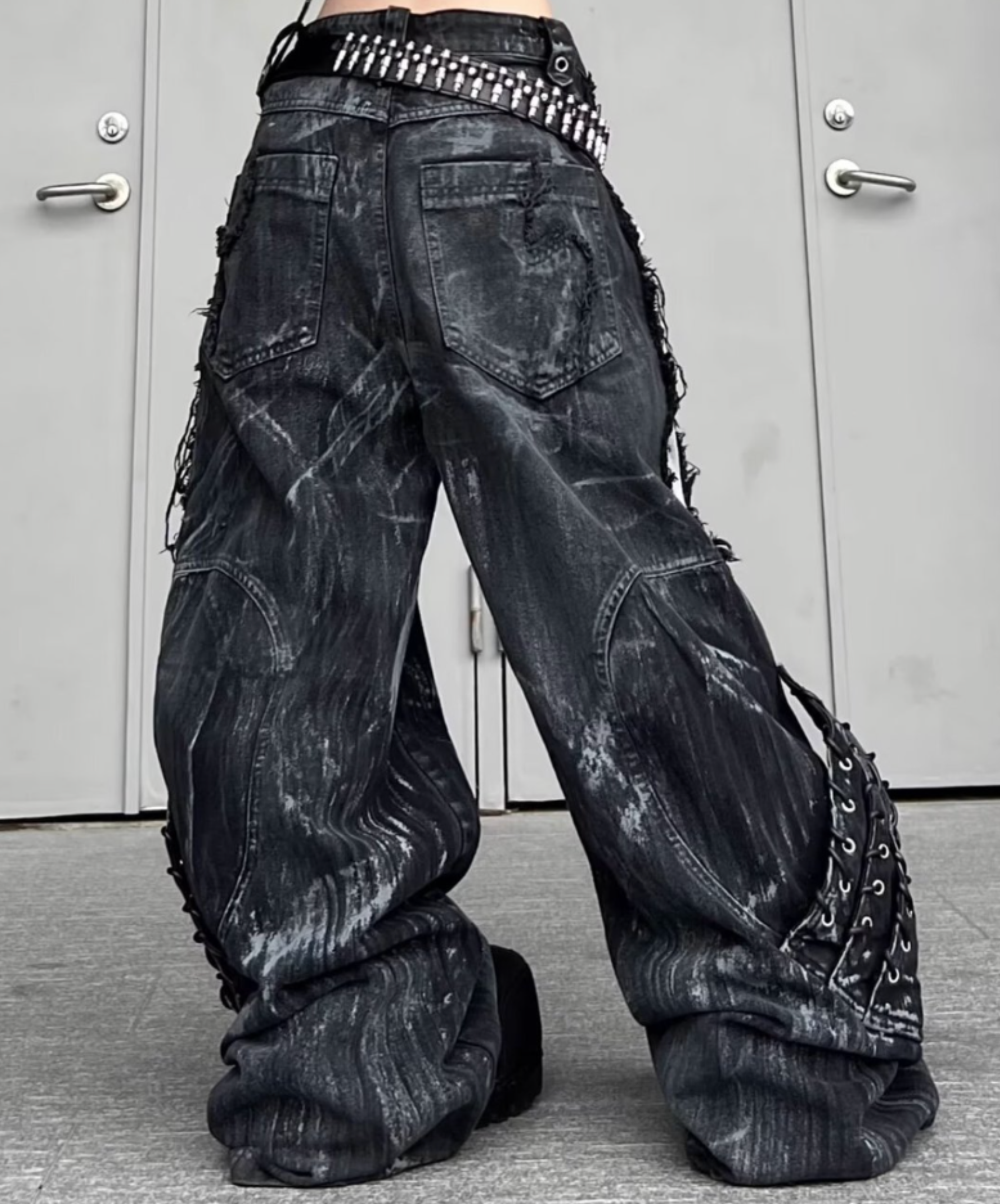 high damage lace up wide pants EN2628