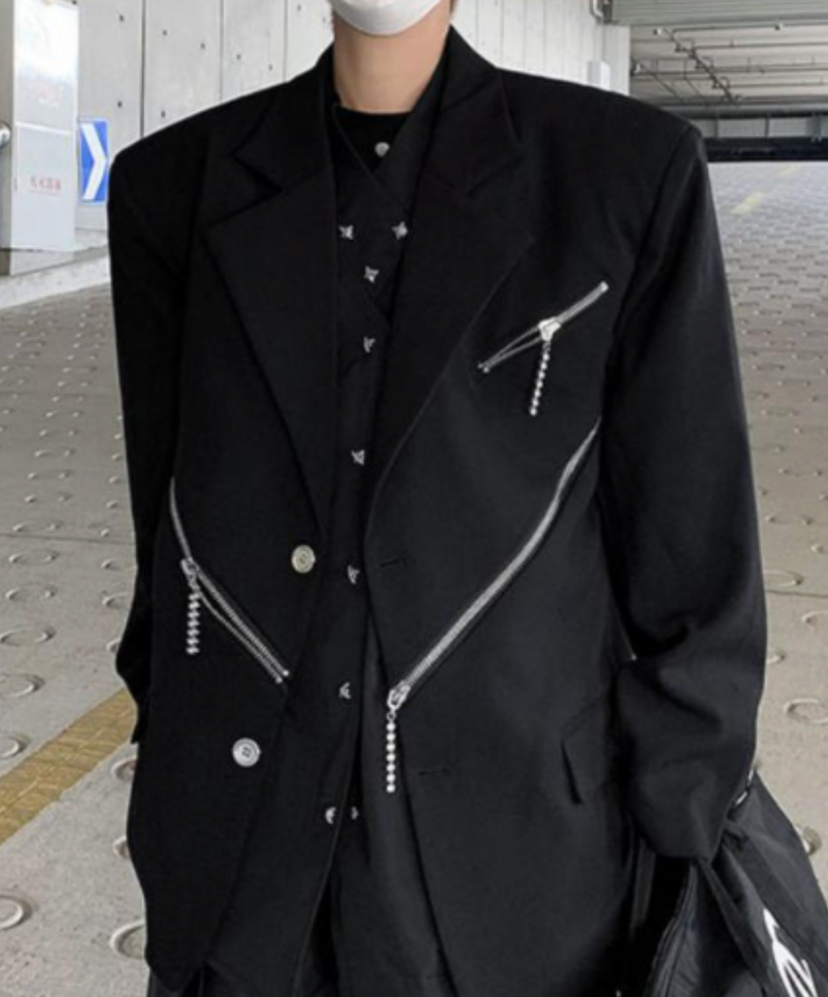 ・斜めに走るジップがエッジの効いたモード感を演出するジャケット