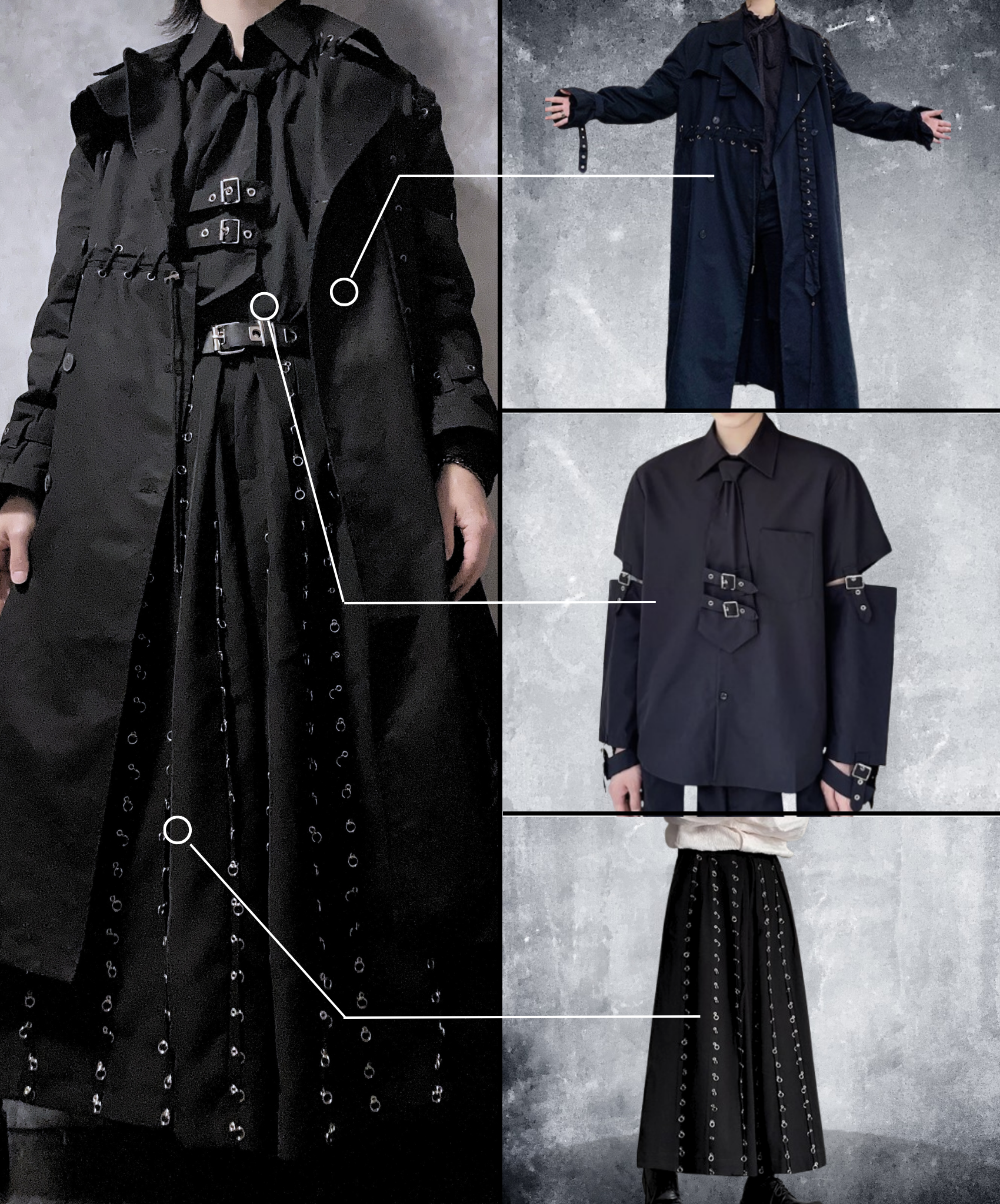 【style86】dark mode outfit set EN2632(coat + shirt + pants set)