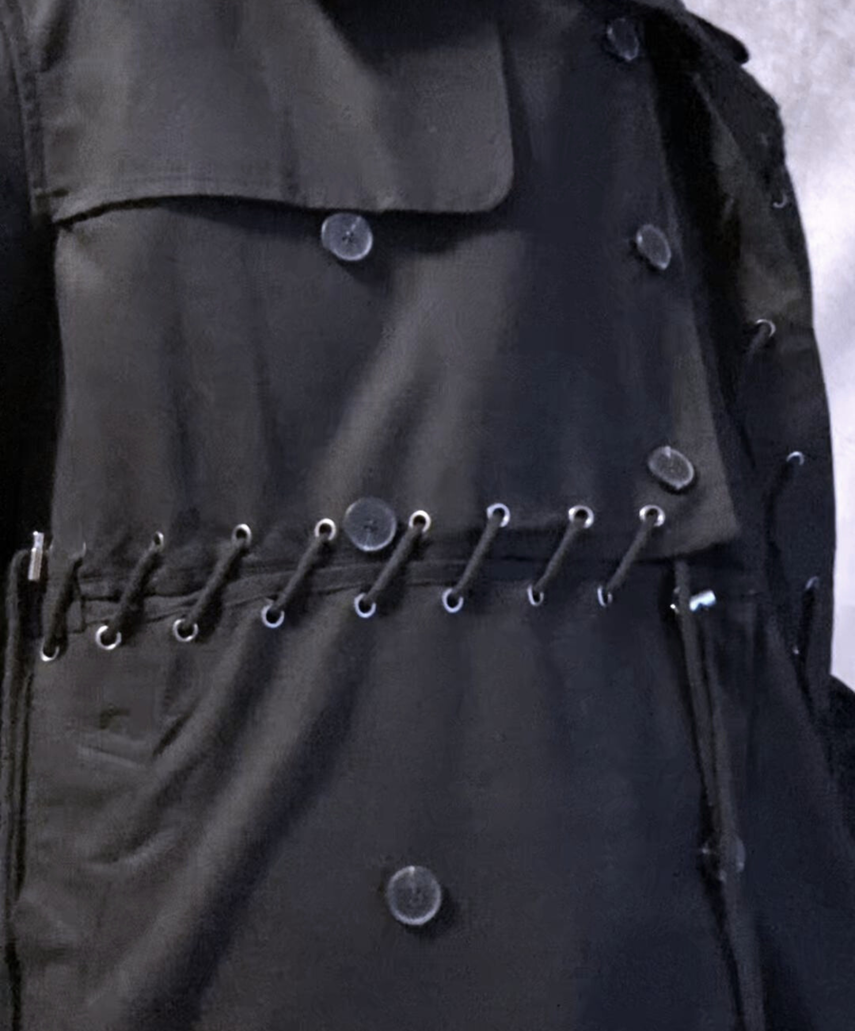 ・継ぎはぎデザインでエッジの効いたモード感溢れる印象を与えてくれるコート